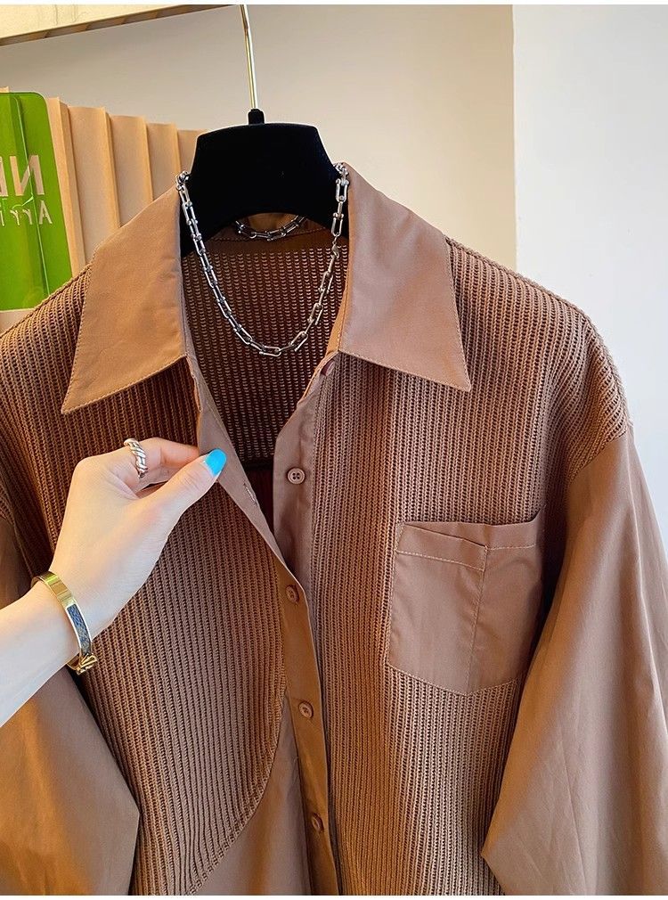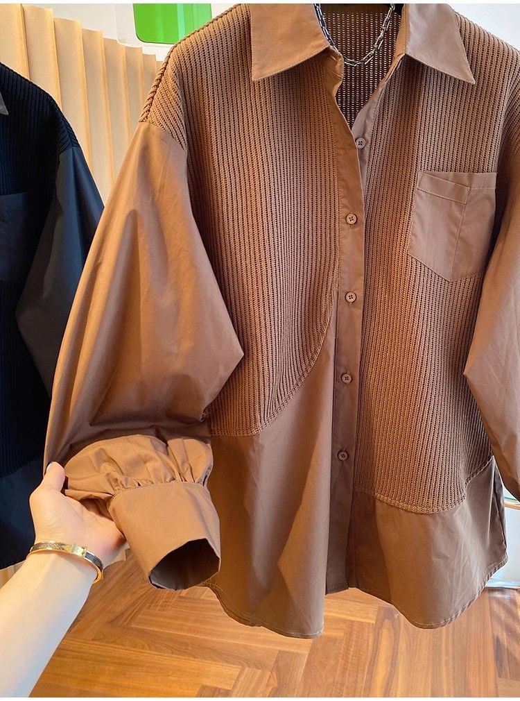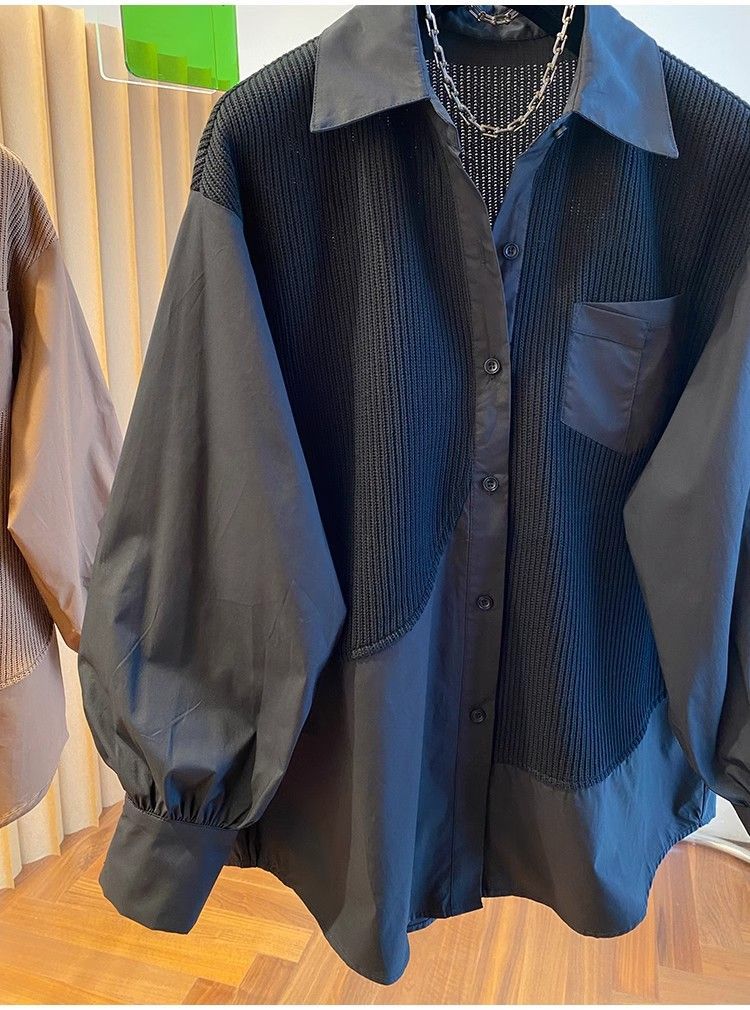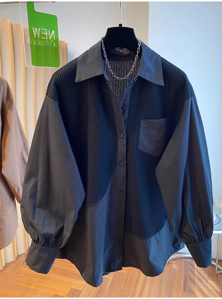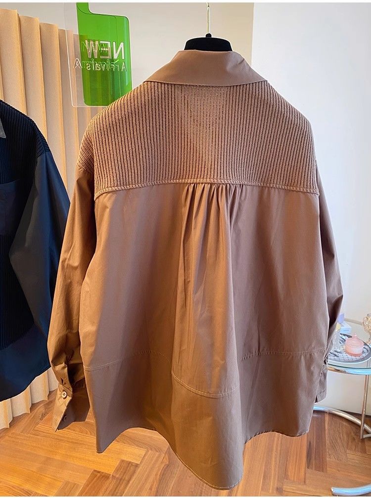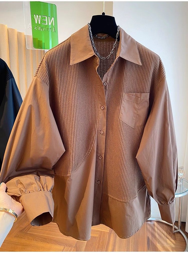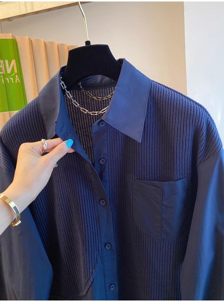 2025 봄과 가을 새로운 플러스 사이즈 뚱뚱한 자매 디자인 센스 패션 스티칭 조커 게으른 스타일 우아한 셔츠스토어 가기