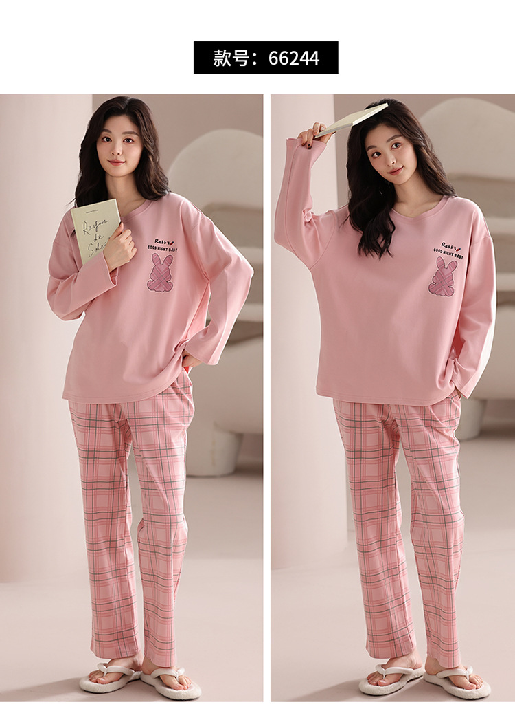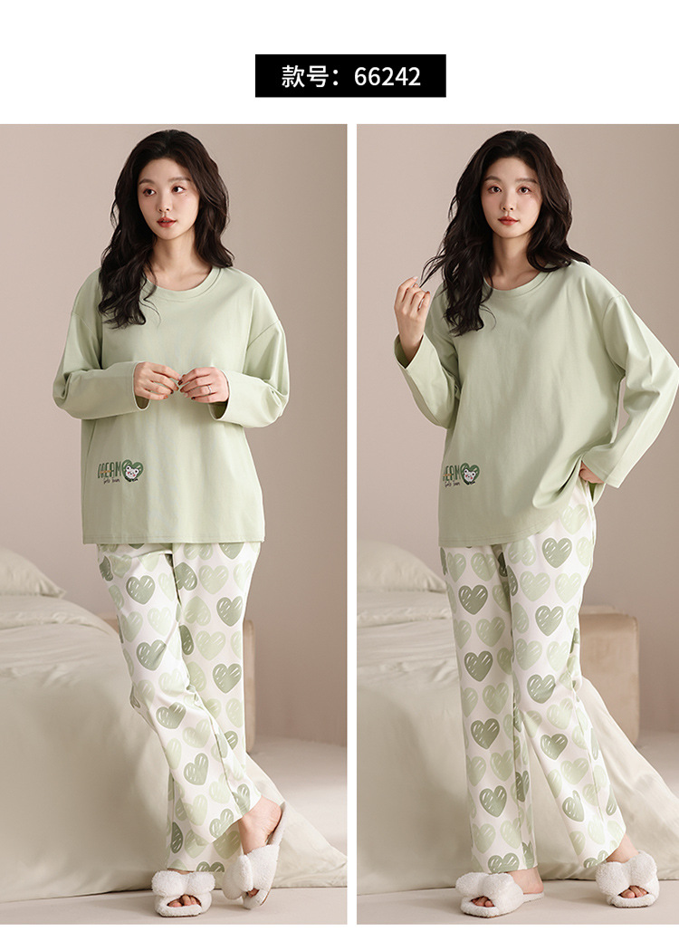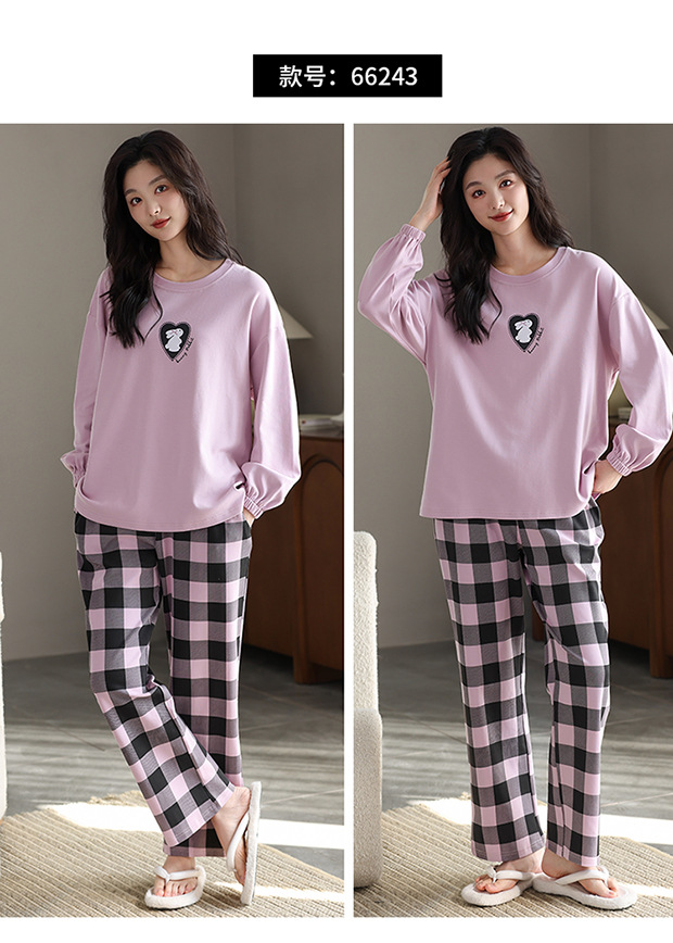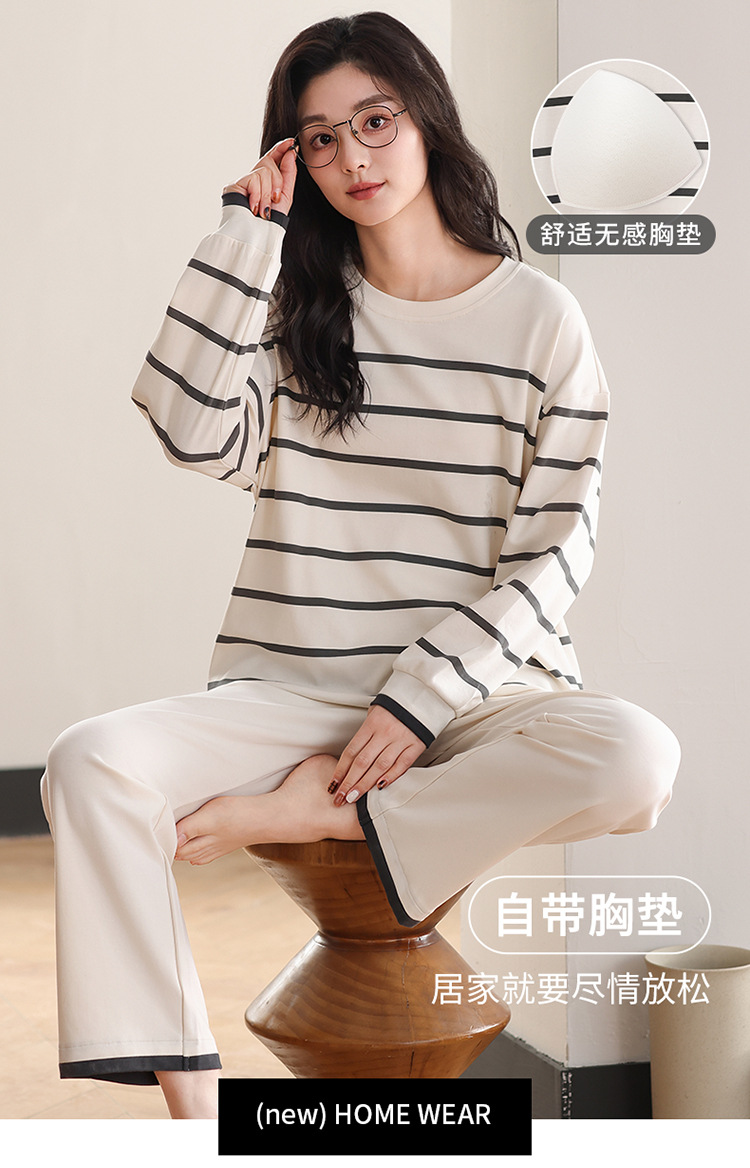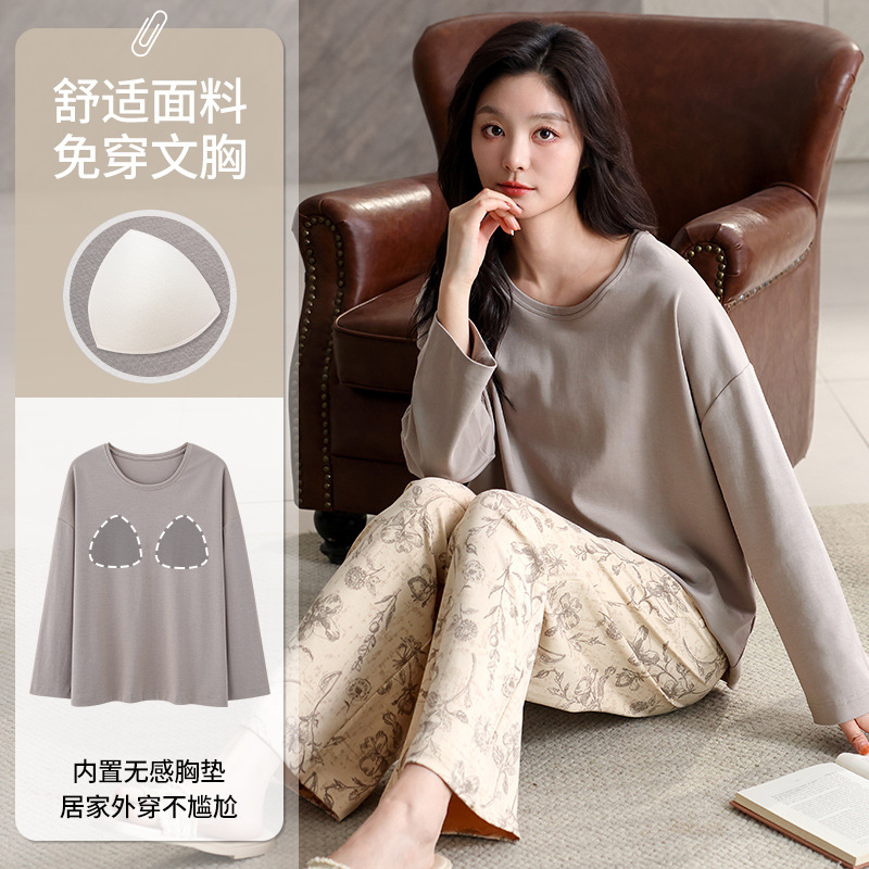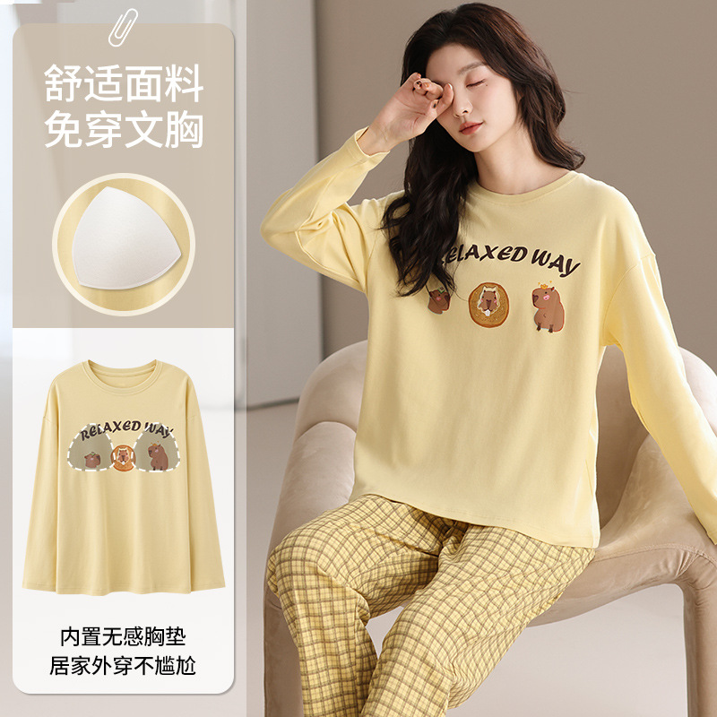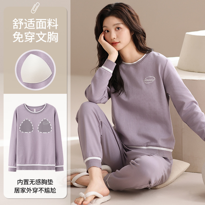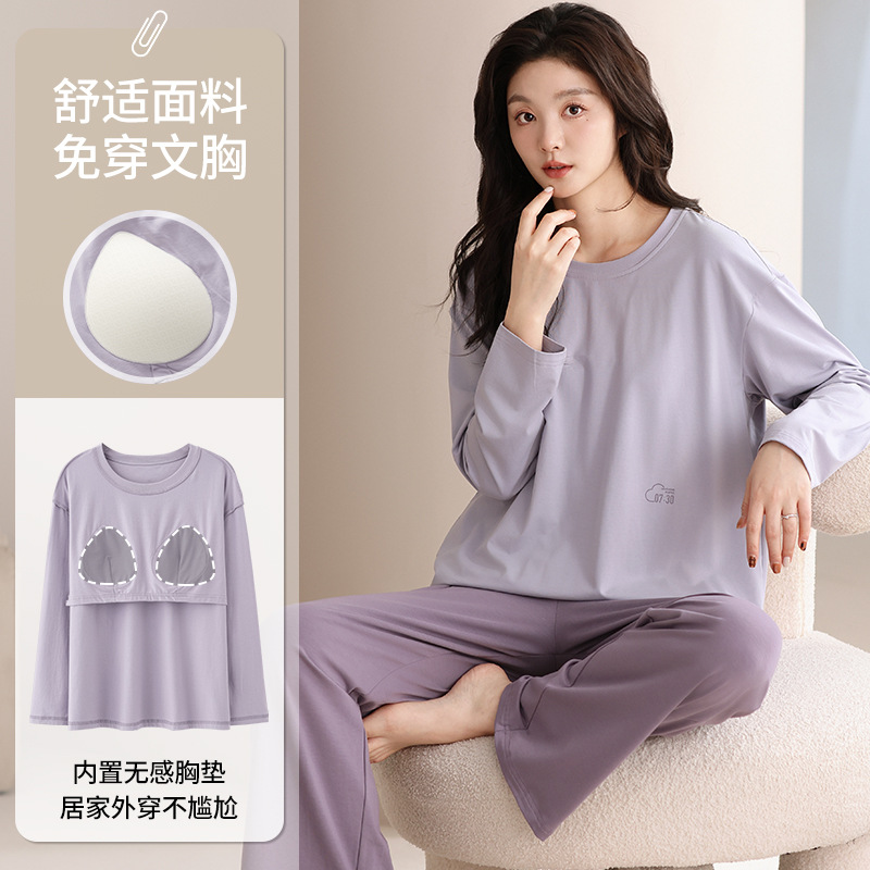 가슴 패드 긴 소매 봄과 가을 달콤한 만화 2025 새로운 플러스 사이즈 간단한 얇은 홈 옷을 입은 여성면 잠옷스토어 가기