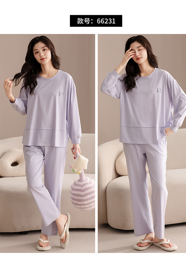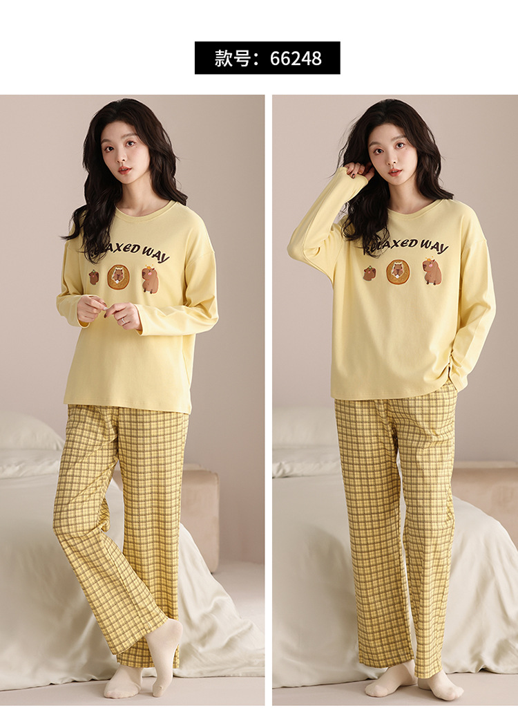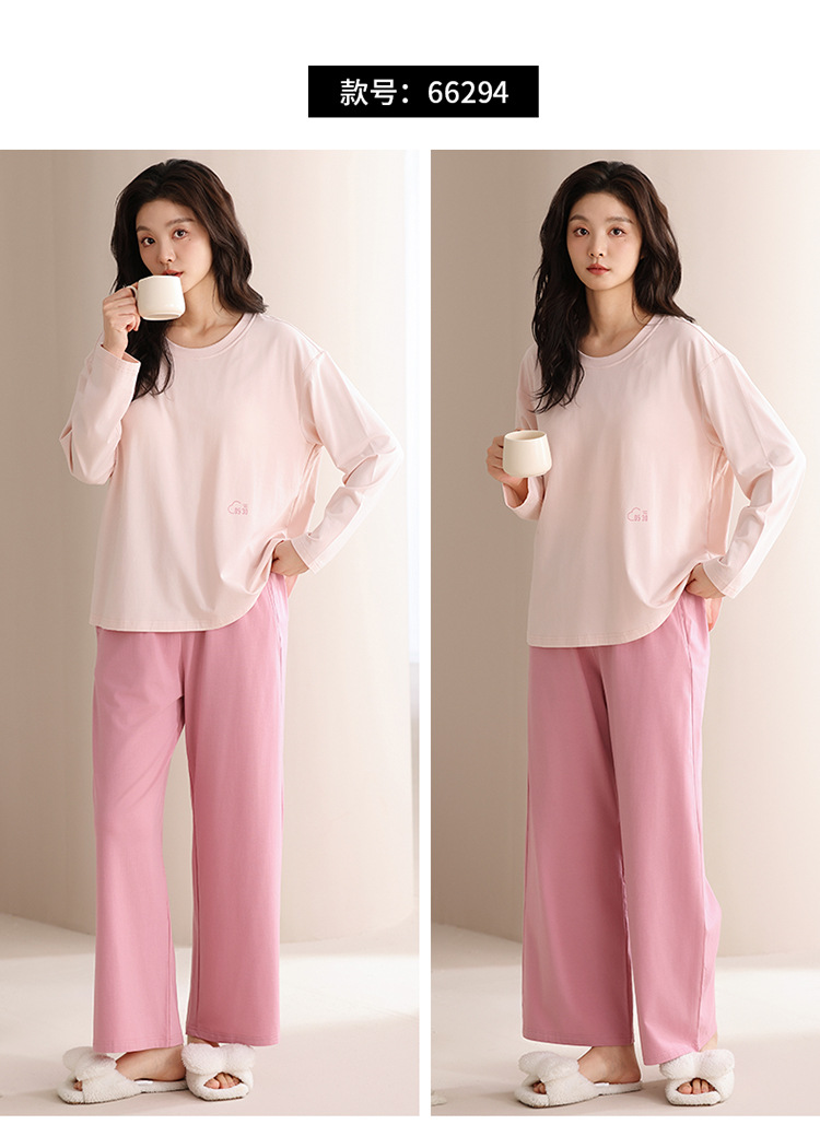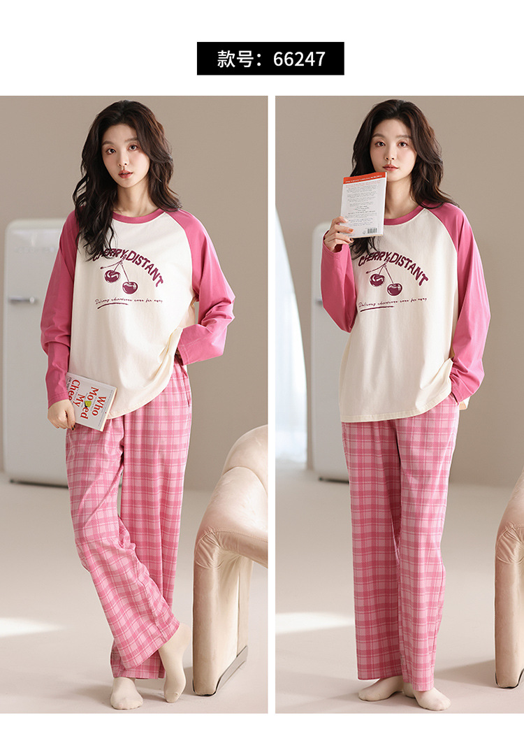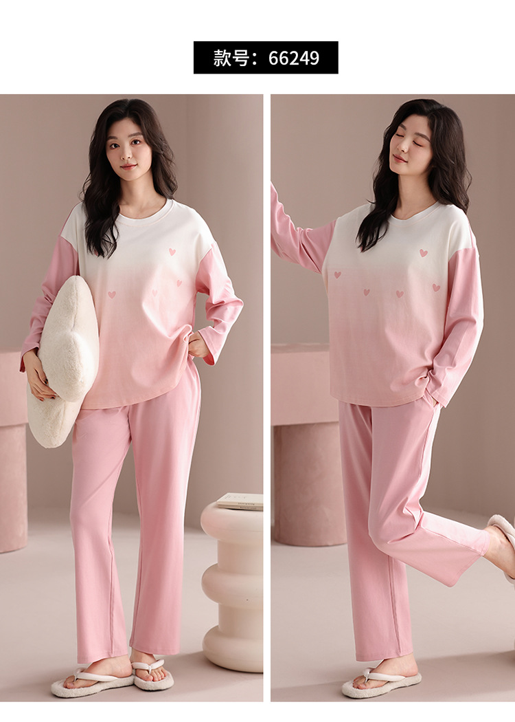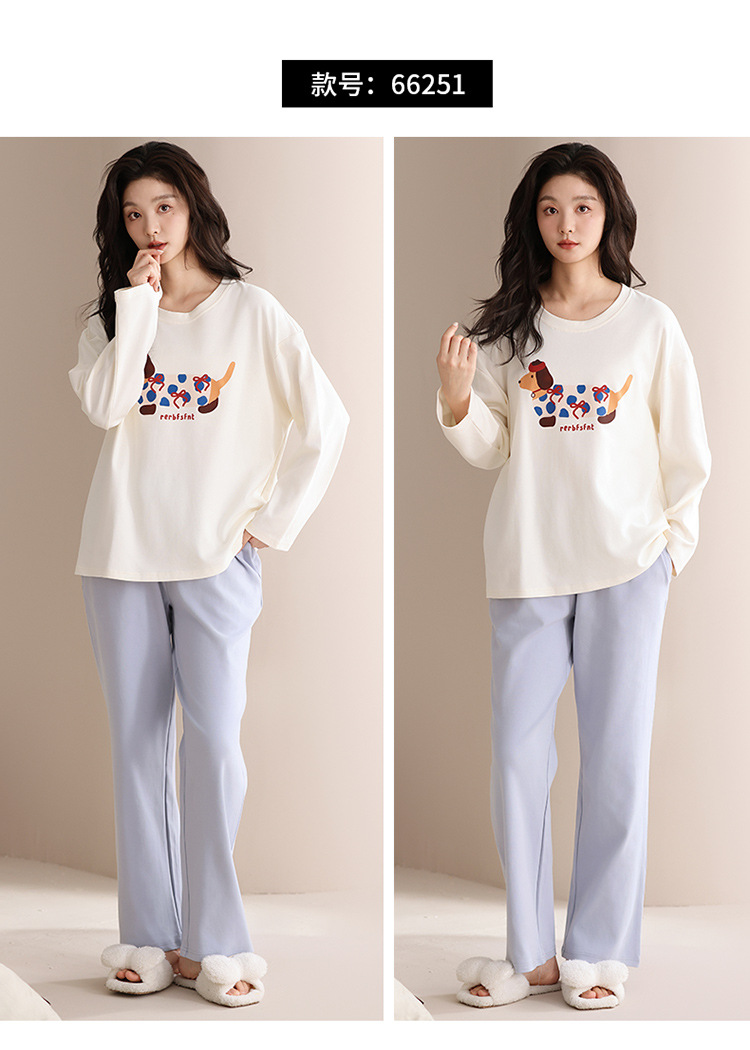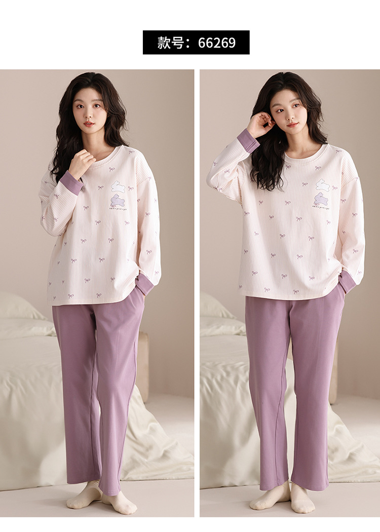 가슴 패드 긴 소매 봄과 가을 달콤한 만화 2025 새로운 플러스 사이즈 간단한 얇은 홈 옷을 입은 여성면 잠옷스토어 가기