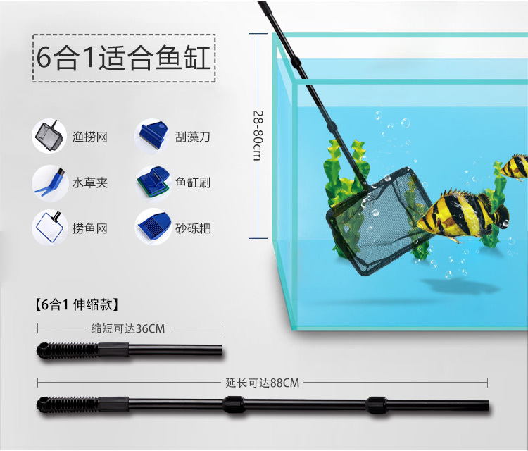 물고기 탱크 청소 세트 물고기 긁는 조류 칼 수족관 긴 손잡이 다기능 청소 브러시 물 탱크 청소 도구 세트스토어 가기