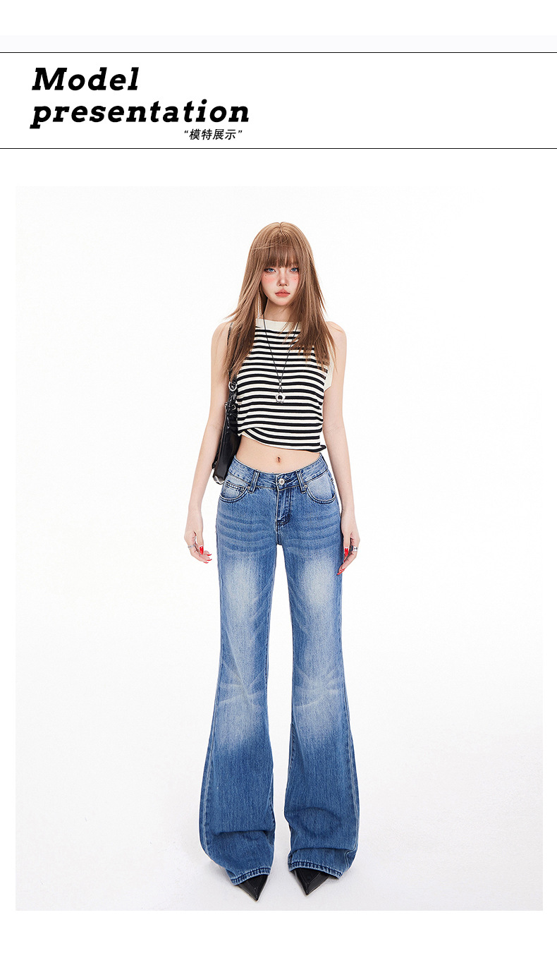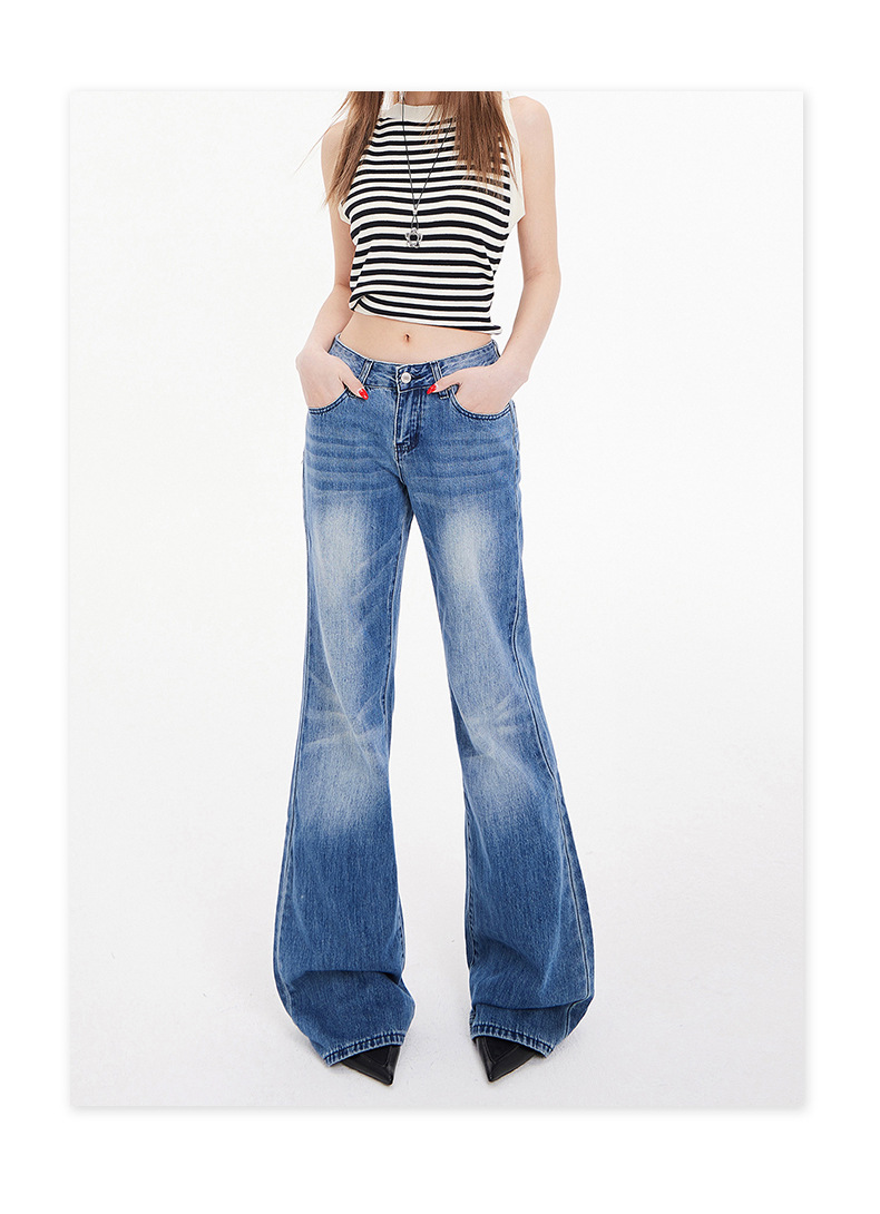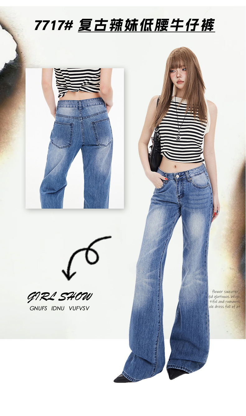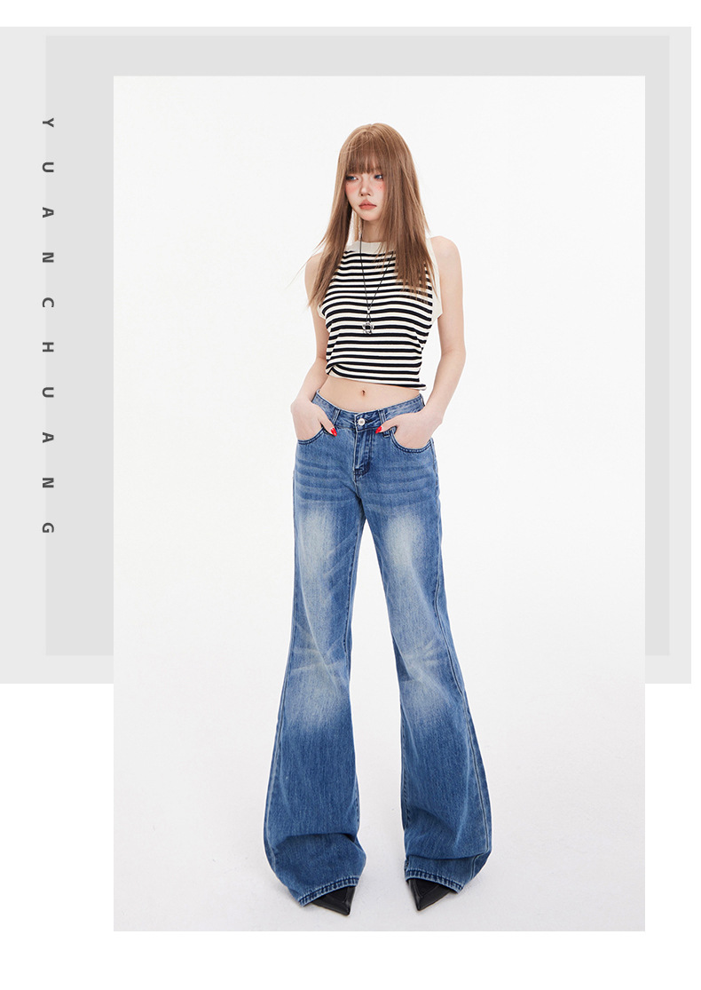오렌지 실크 여성복 # 아메리칸 스타일 슬림 핏 하이 스트리트 슬림 핏 로우 웨이스트 슬림머 청바지 여성의 봄 올 매치 와이드 레그 플라 드 팬츠스토어 가기