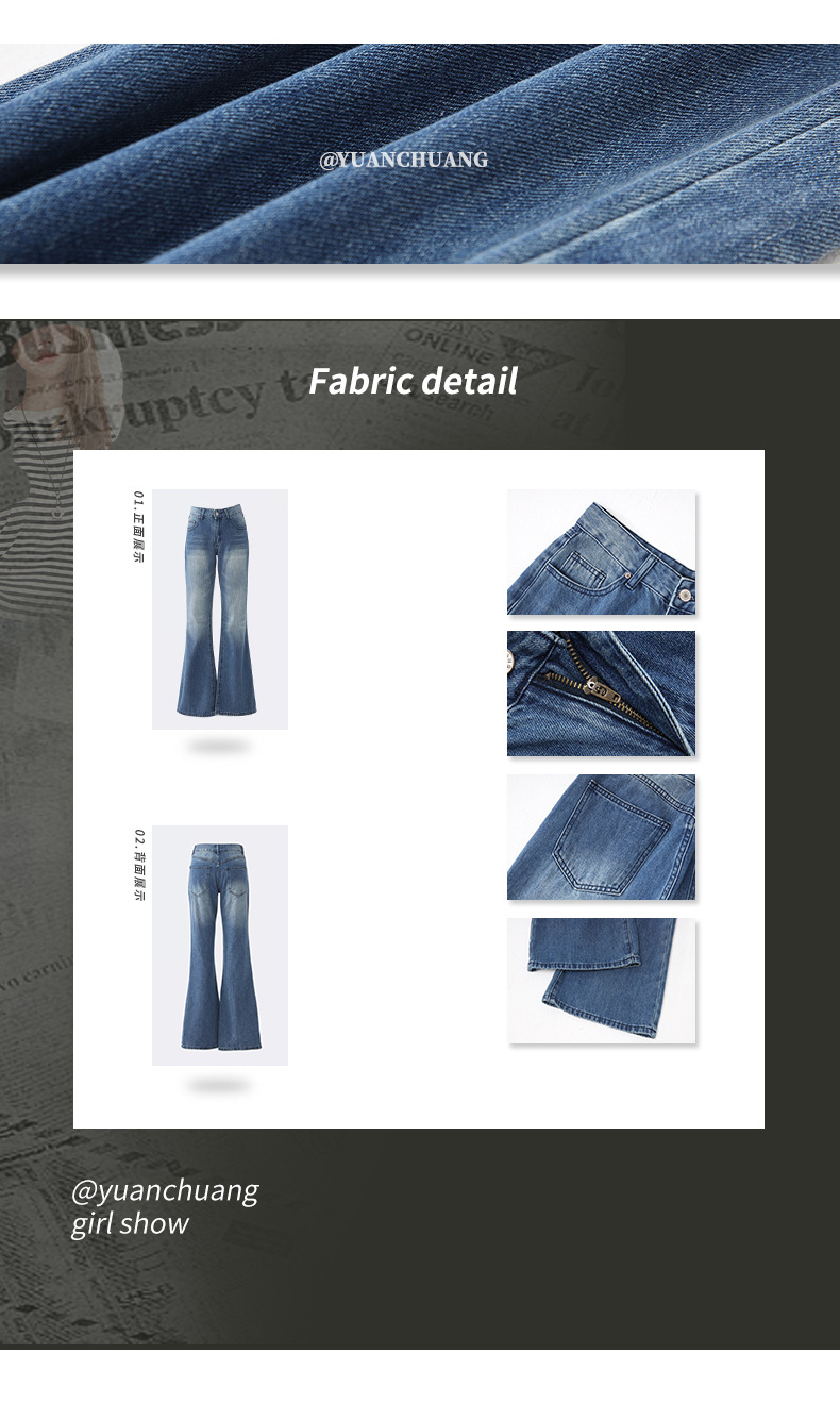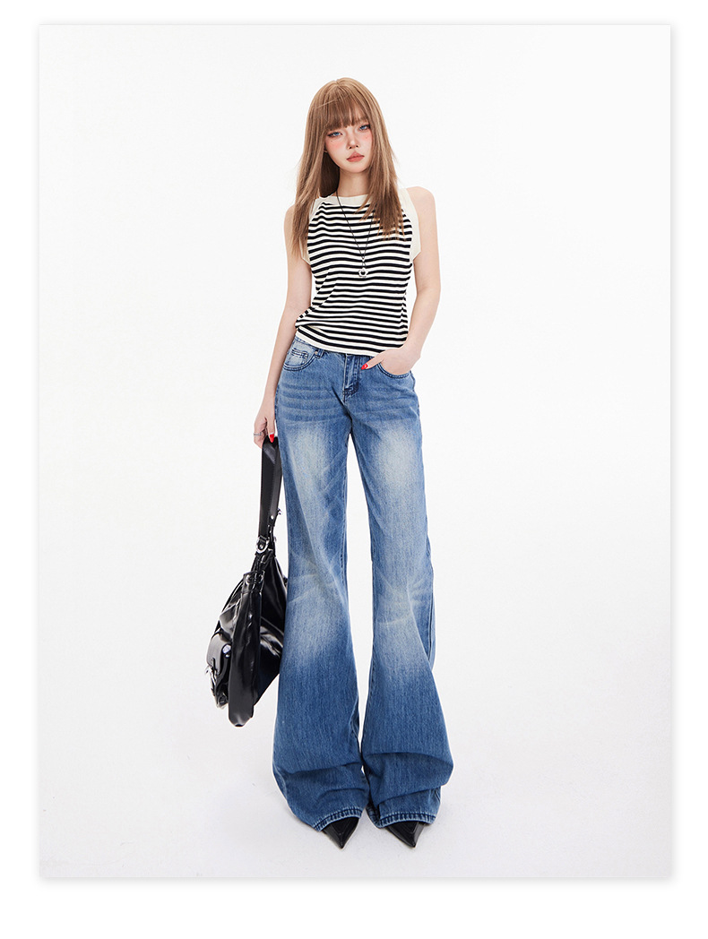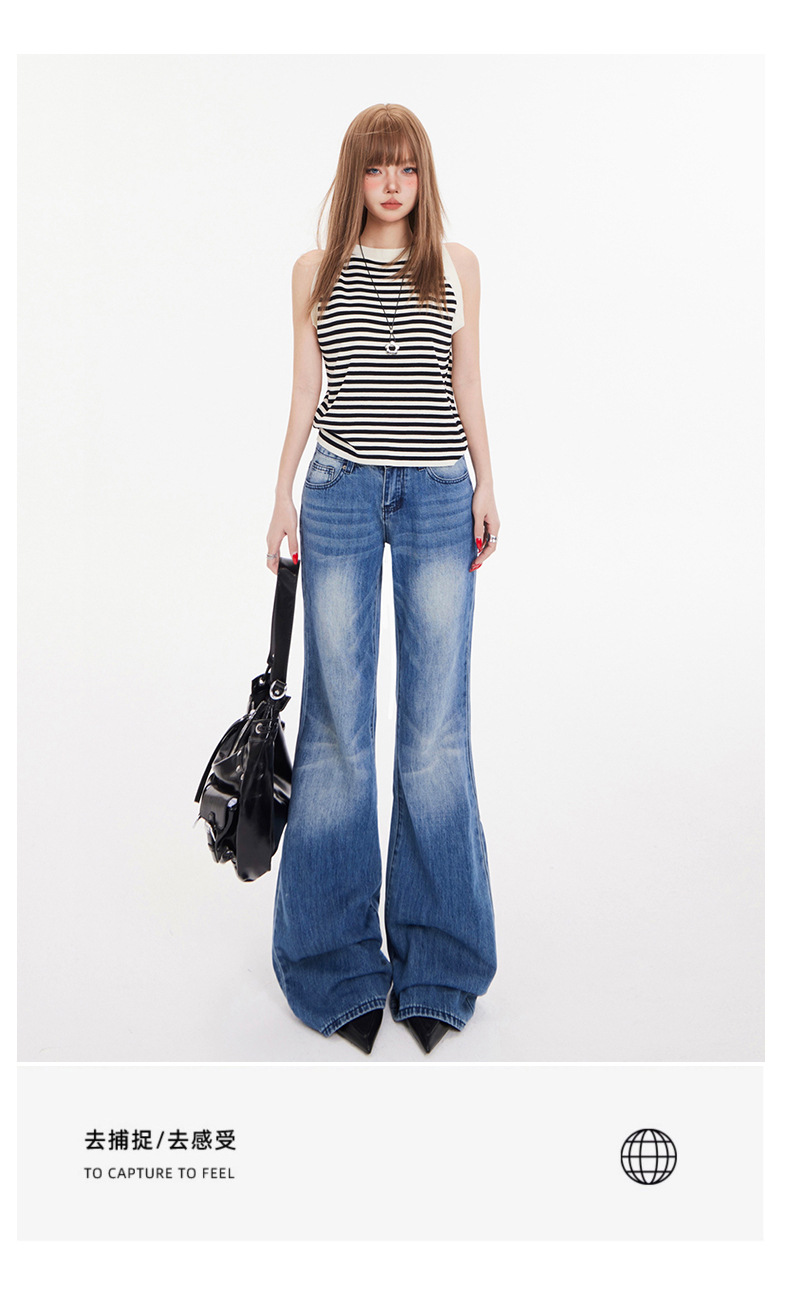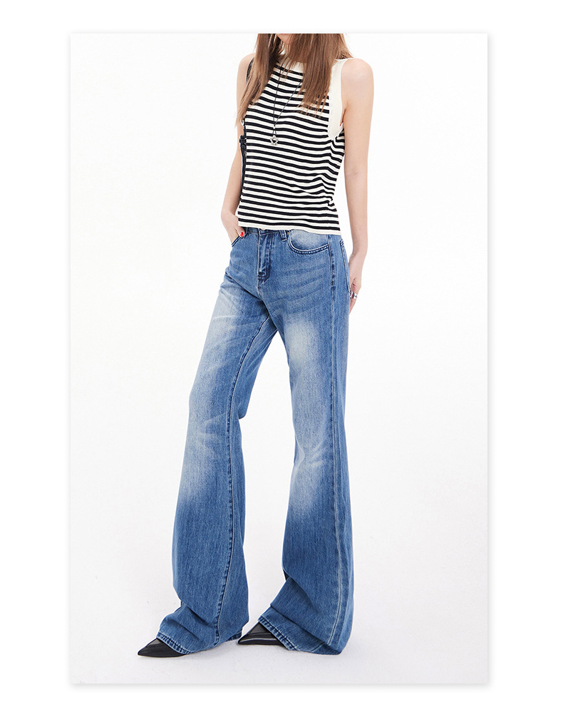 오렌지 실크 여성복 # 아메리칸 스타일 슬림 핏 하이 스트리트 슬림 핏 로우 웨이스트 슬림머 청바지 여성의 봄 올 매치 와이드 레그 플라 드 팬츠스토어 가기