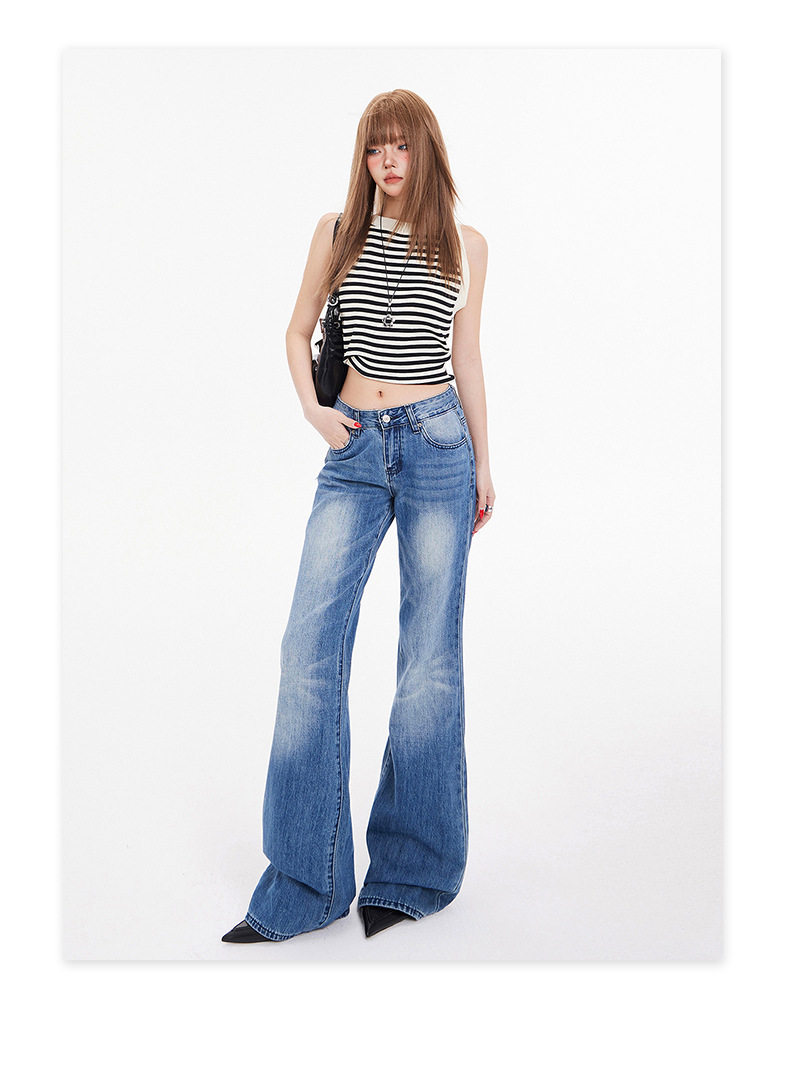 오렌지 실크 여성복 # 아메리칸 스타일 슬림 핏 하이 스트리트 슬림 핏 로우 웨이스트 슬림머 청바지 여성의 봄 올 매치 와이드 레그 플라 드 팬츠