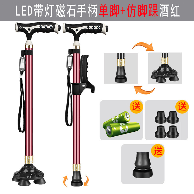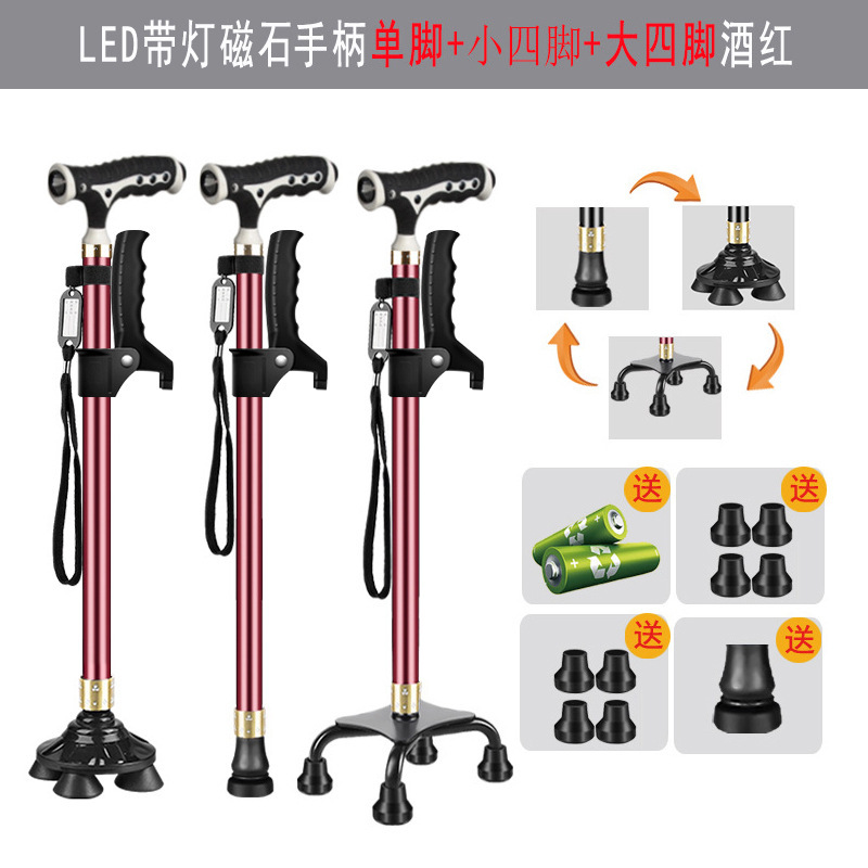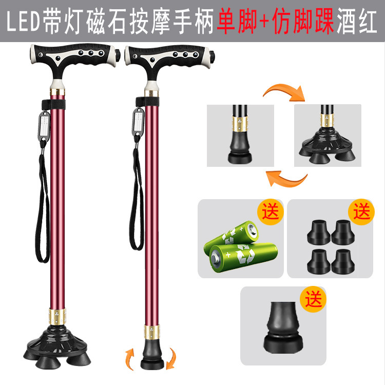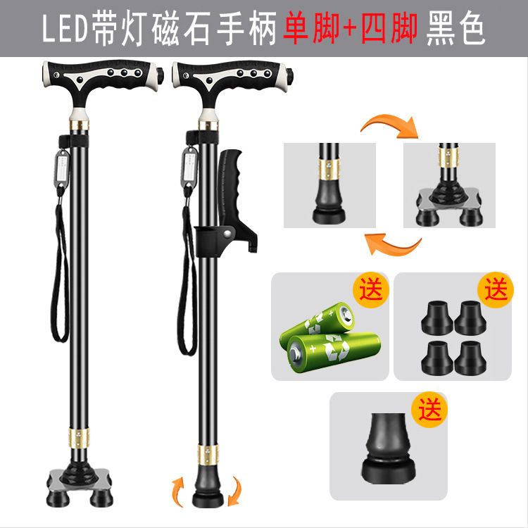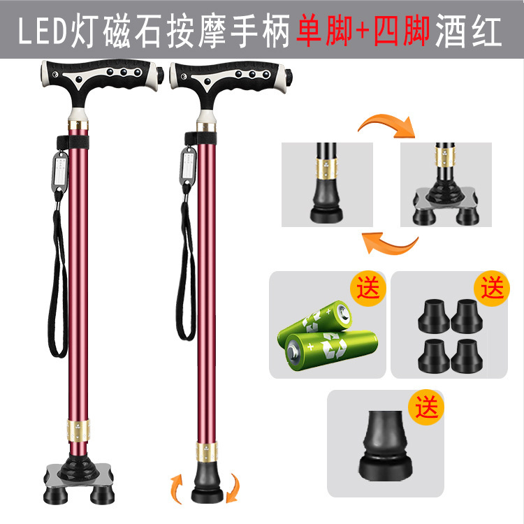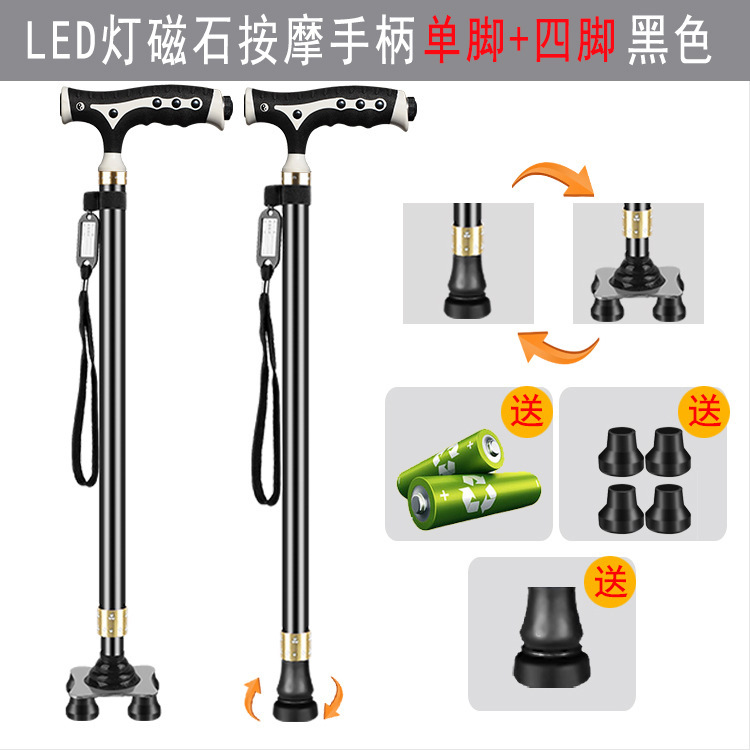 노인용 지팡이, 텔레스코픽 다기능 미끄럼 방지 자기 치료 지팡이, 노인용 특수 지팡이, 4발 지팡이, 지팡이