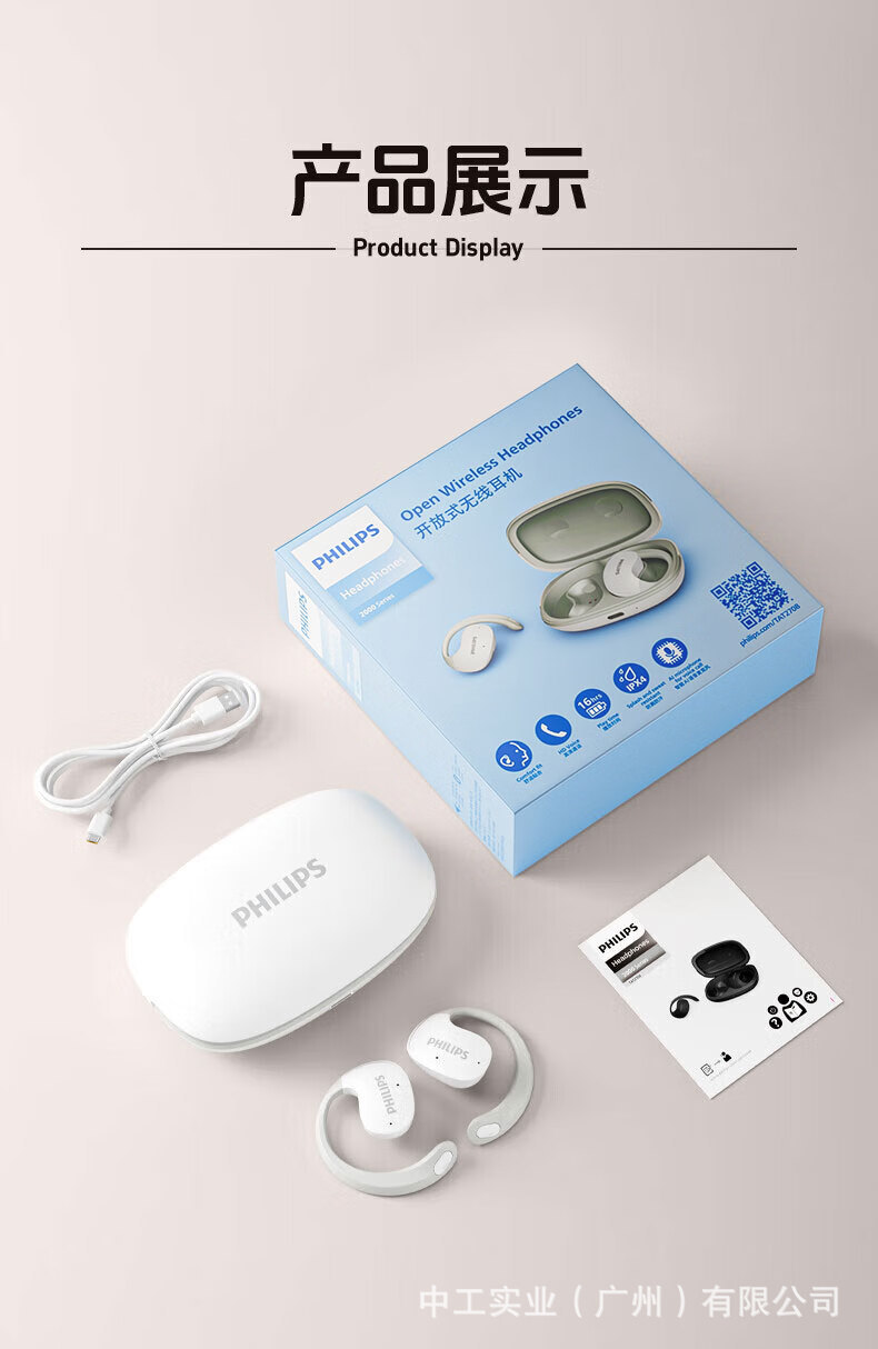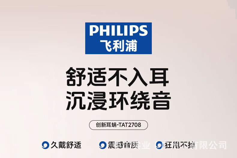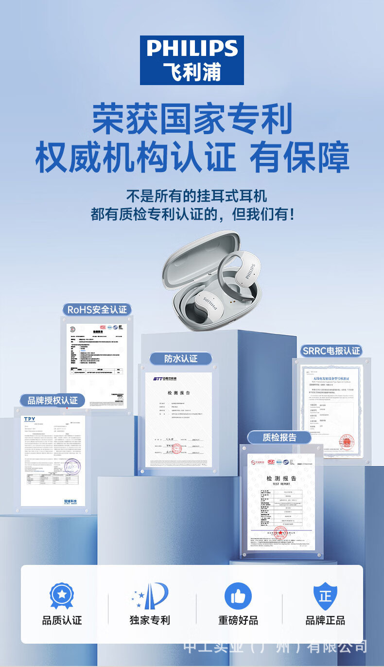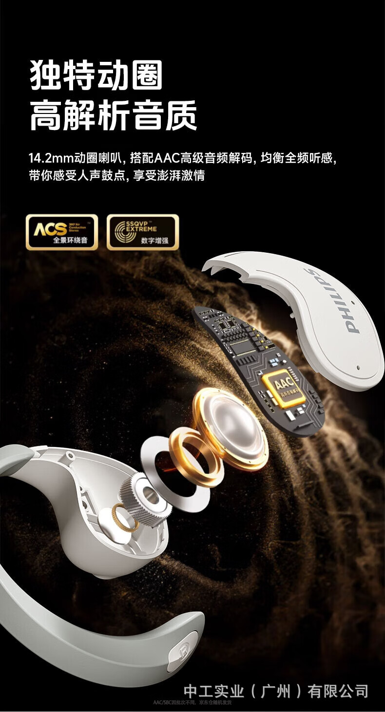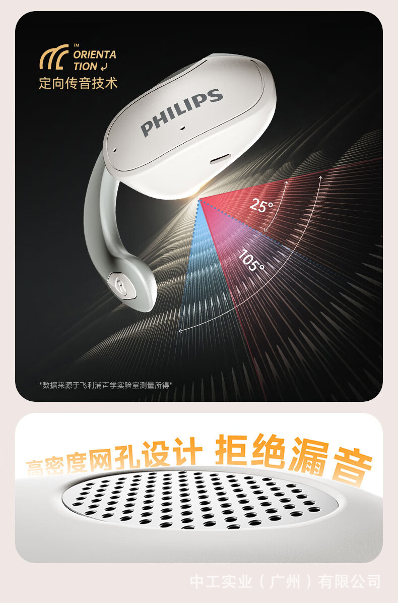 필립스 블루투스 헤드셋 뼈 전도 진정한 무선 귀 매달려 스포츠 달리기 단계 길이 내구성 소음 감소 TAT2708스토어 가기