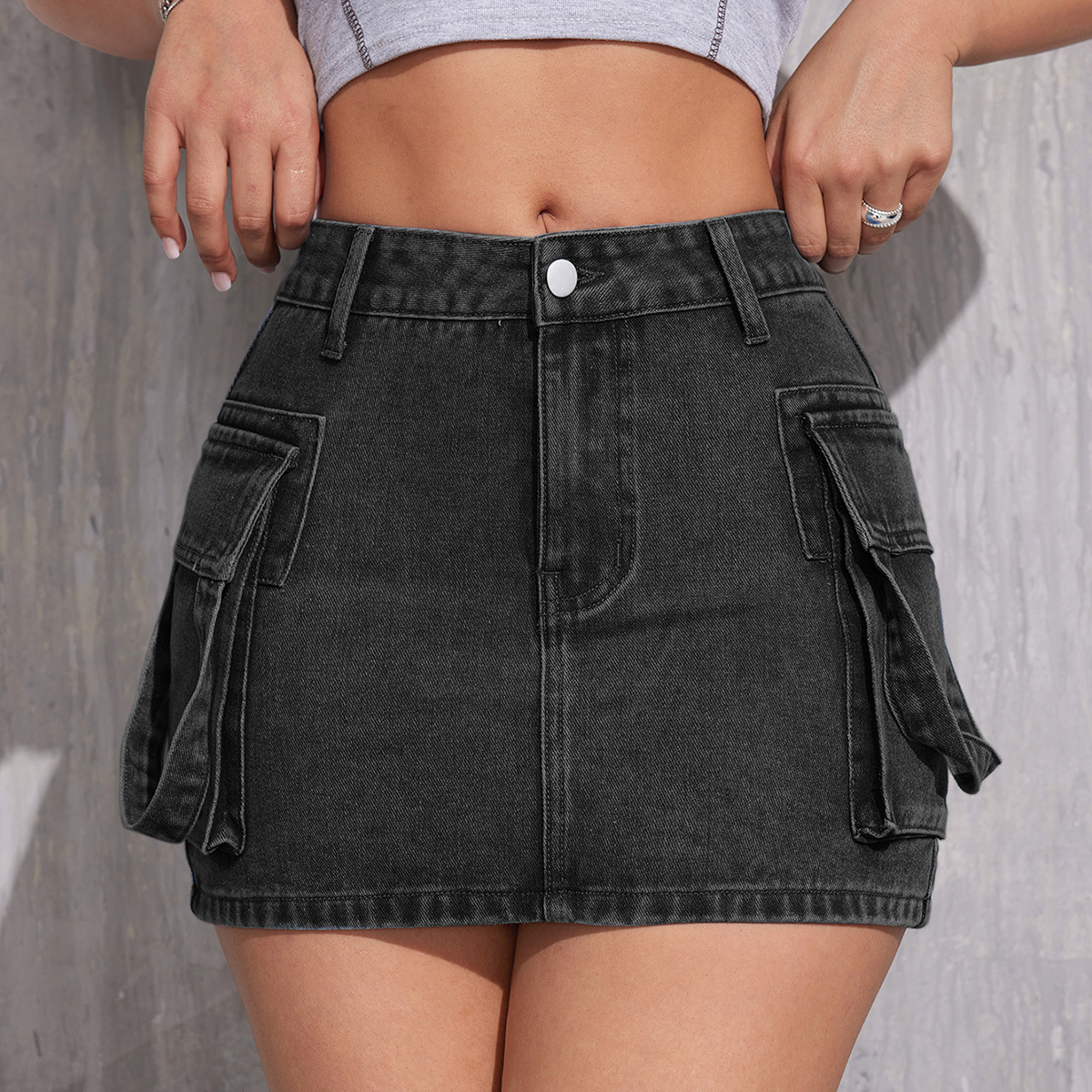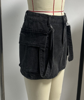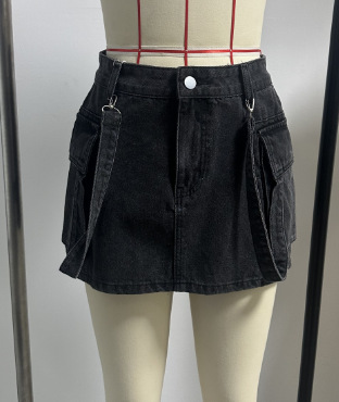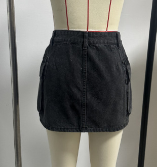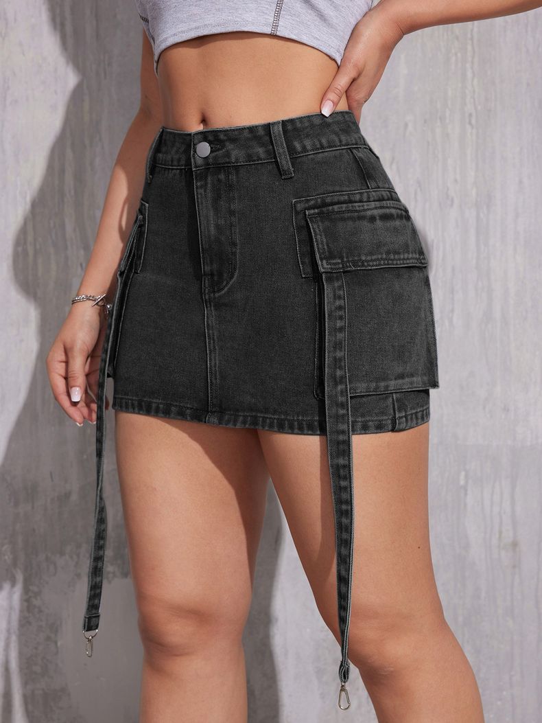 유럽과 미국의 아마존에서 인기 있는 봄 신상품, 더블 포켓이 있는 핫걸 스타일의 힙허깅 숏 스커트, 여성용 하이웨이스트 Y2K 데님 스커트/청바지스토어 가기