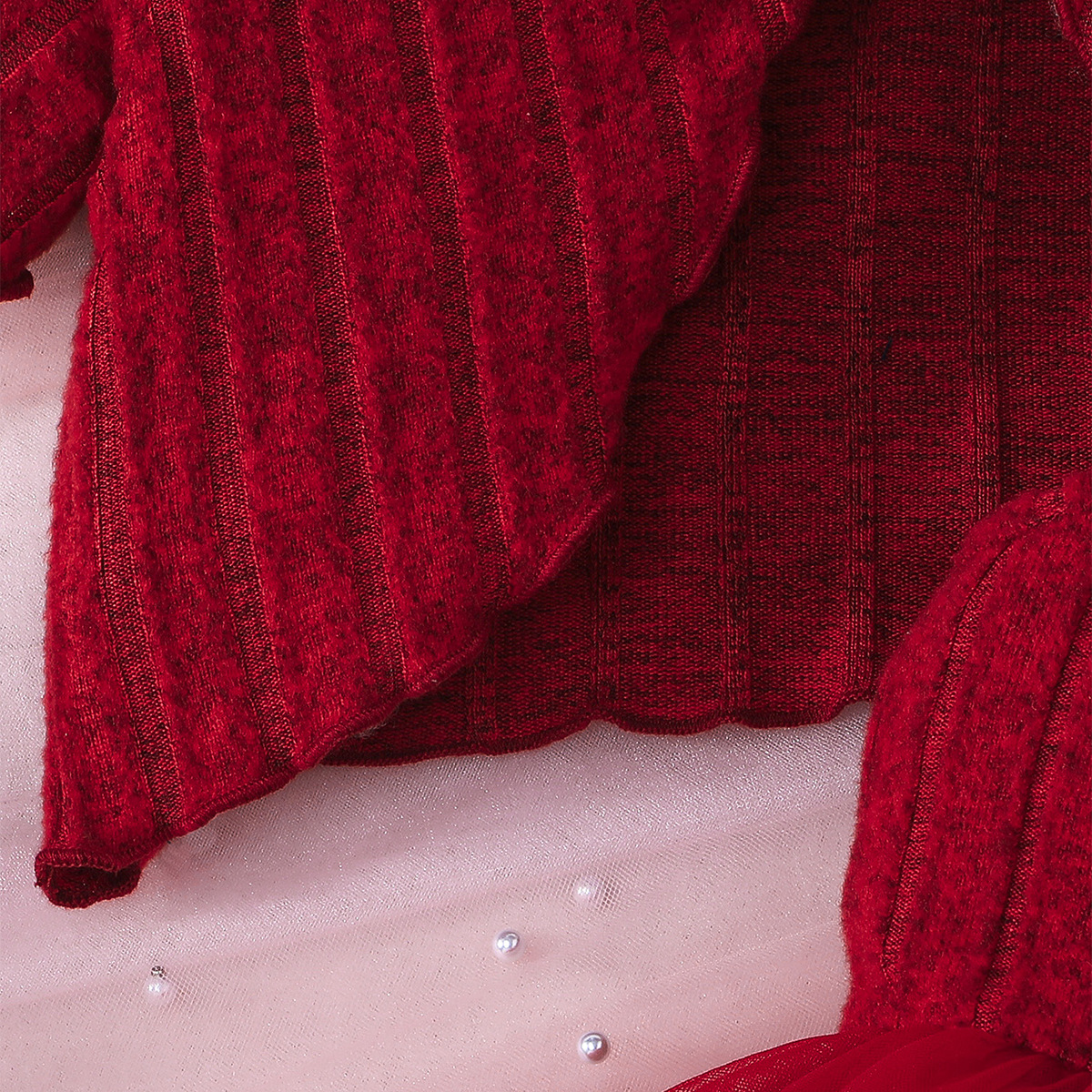 2025년 여름 신상품 귀여운 유럽풍 단색 골지 반팔 상의 + 망사 스커트 끈 원피스 세트