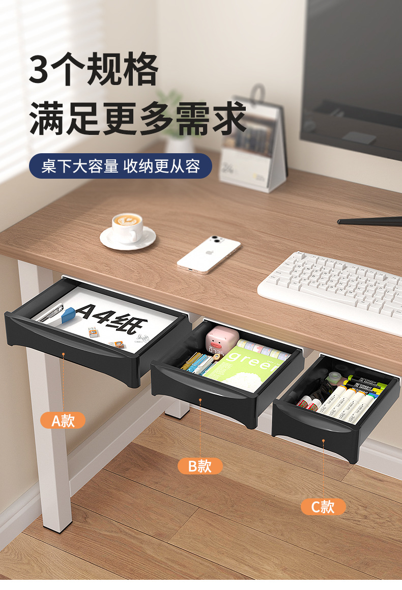 테이블 펀치 프리 스토리지 아티팩트 데스크 사무실 데스크 스토리지 랙 문구 스테이션 변환 스토리지 박스 아래 보이지 않는 서랍