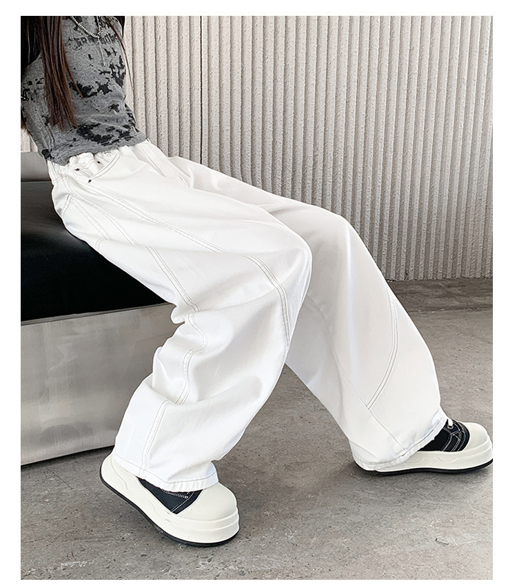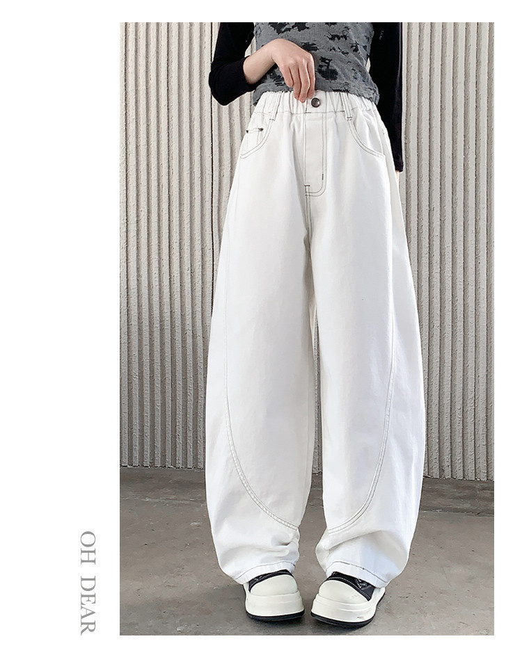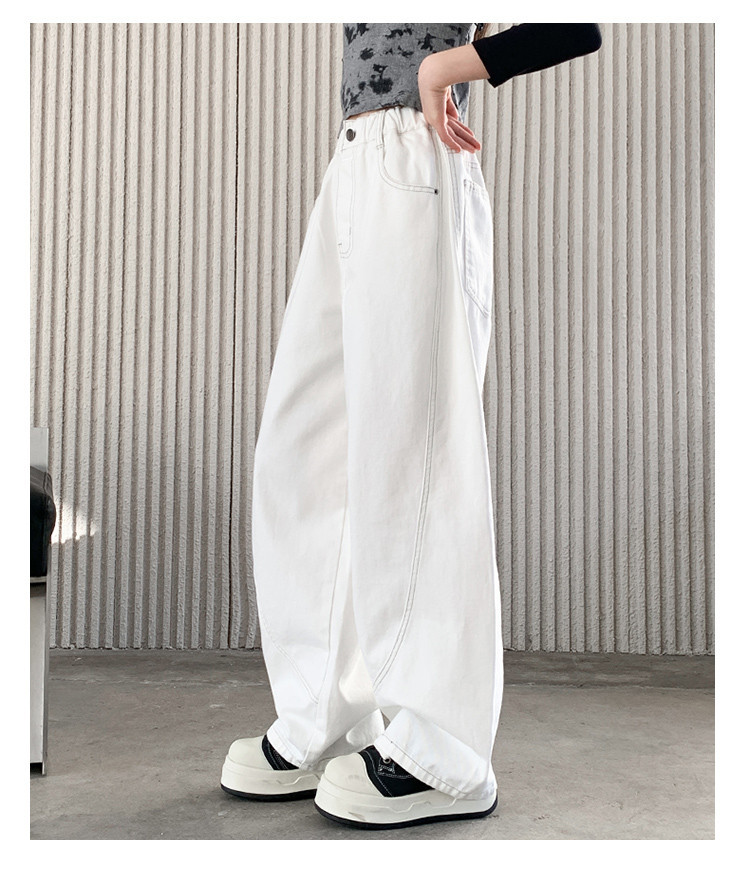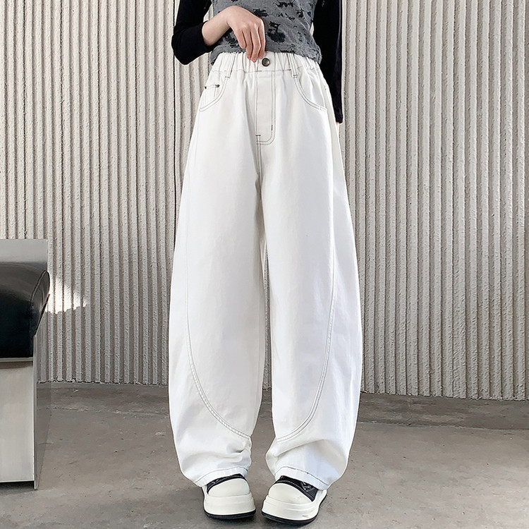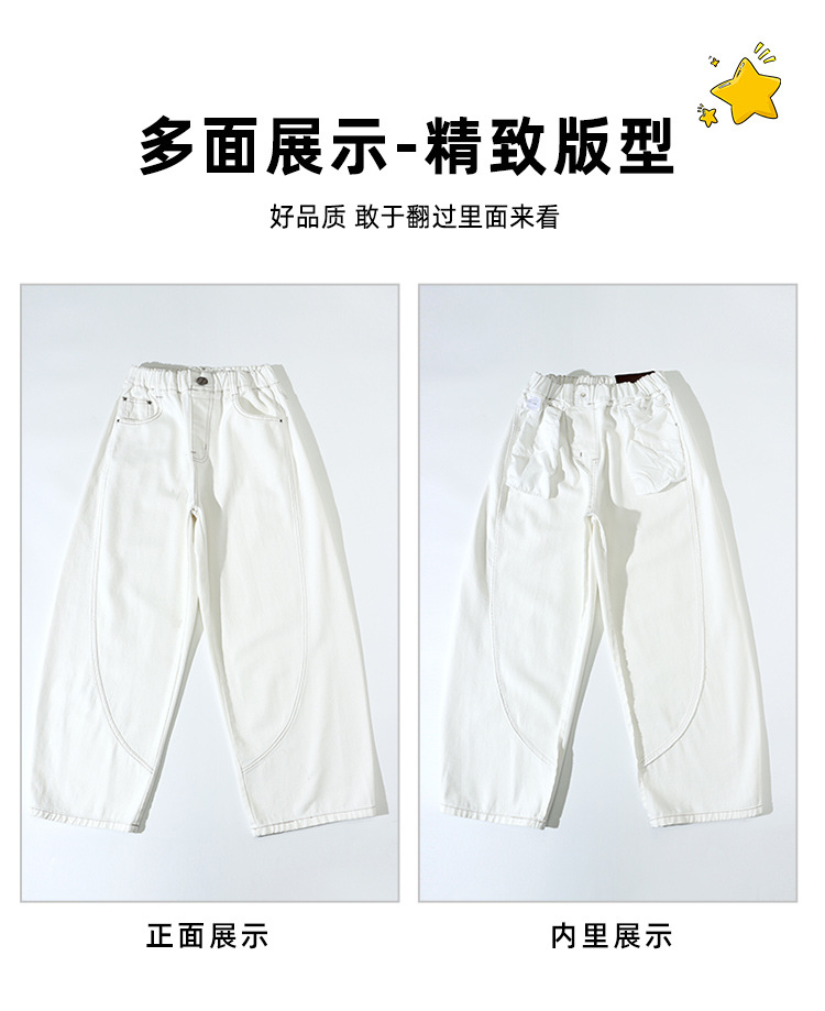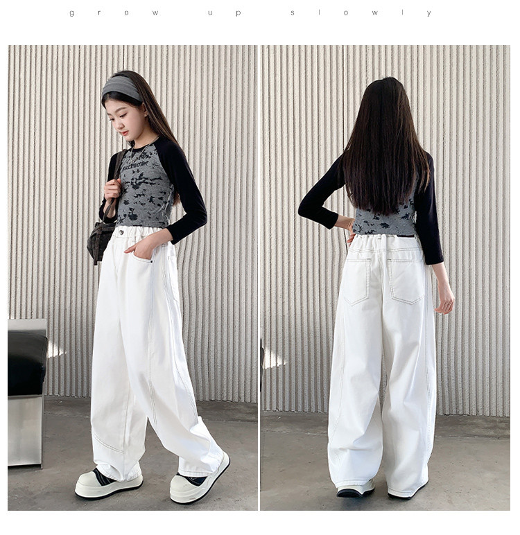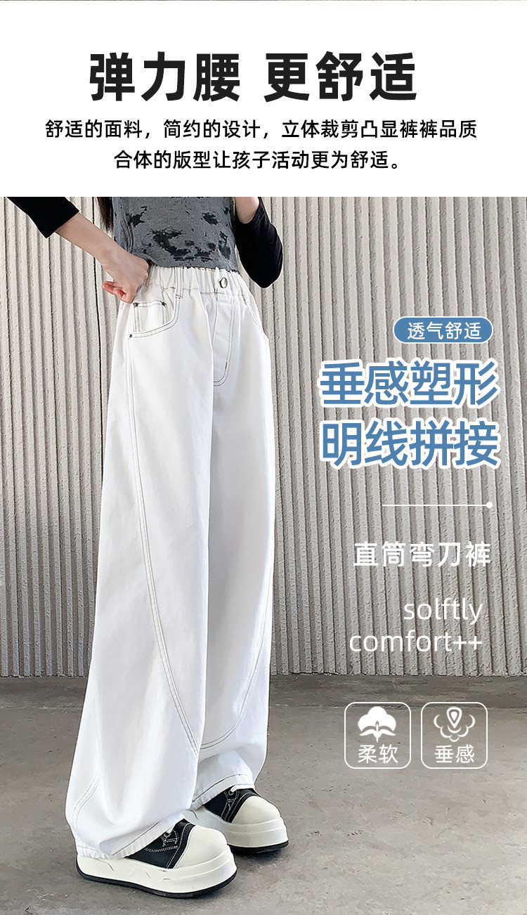 여아용 청바지 2025 가을 신상 중대형 아동용 화이트 캐주얼 와이드 팬츠 루즈핏 슬림 데님 롱팬츠스토어 가기