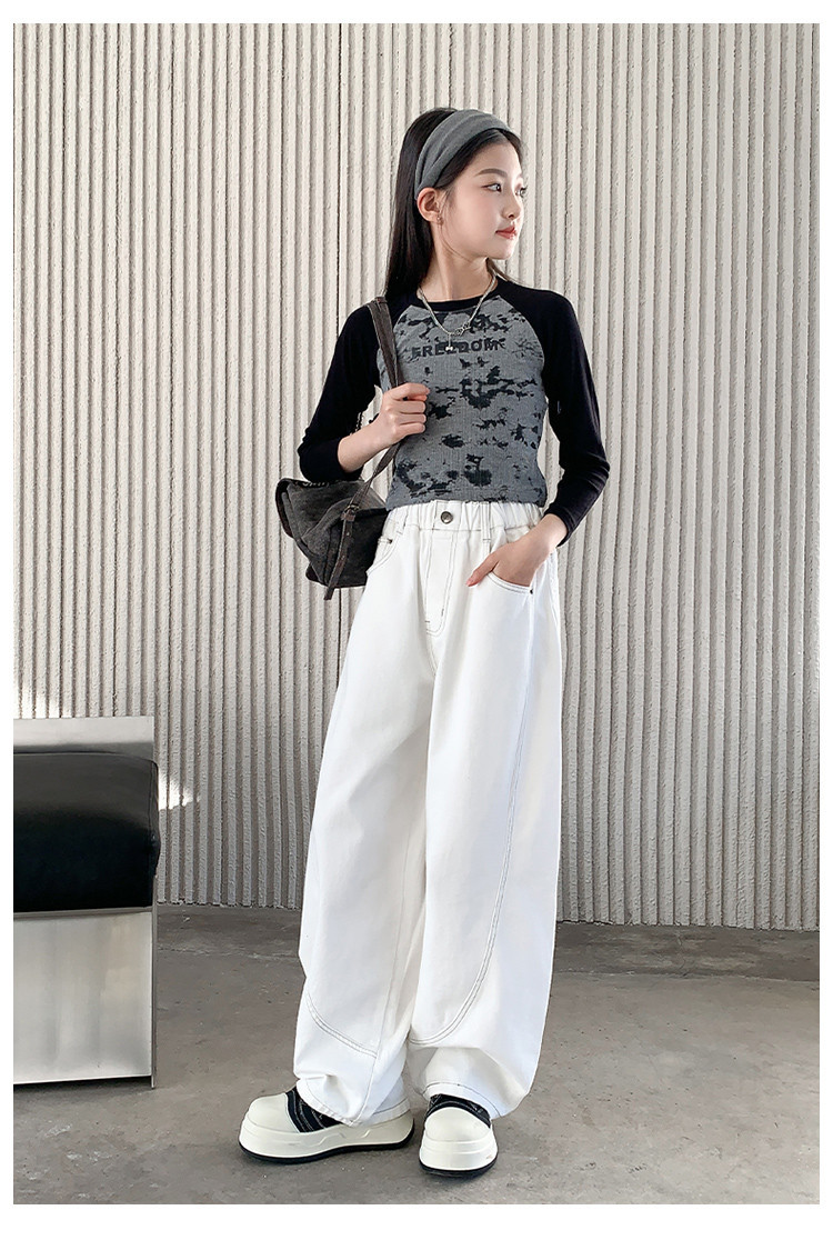 여아용 청바지 2025 가을 신상 중대형 아동용 화이트 캐주얼 와이드 팬츠 루즈핏 슬림 데님 롱팬츠
