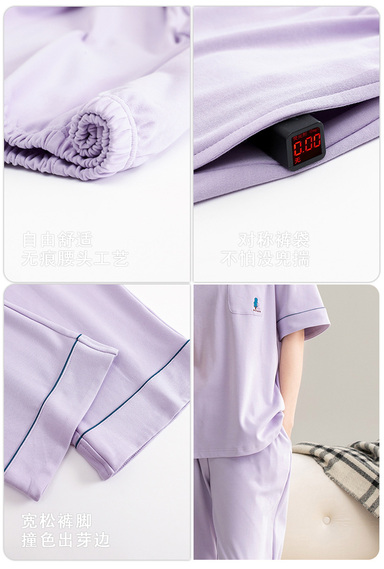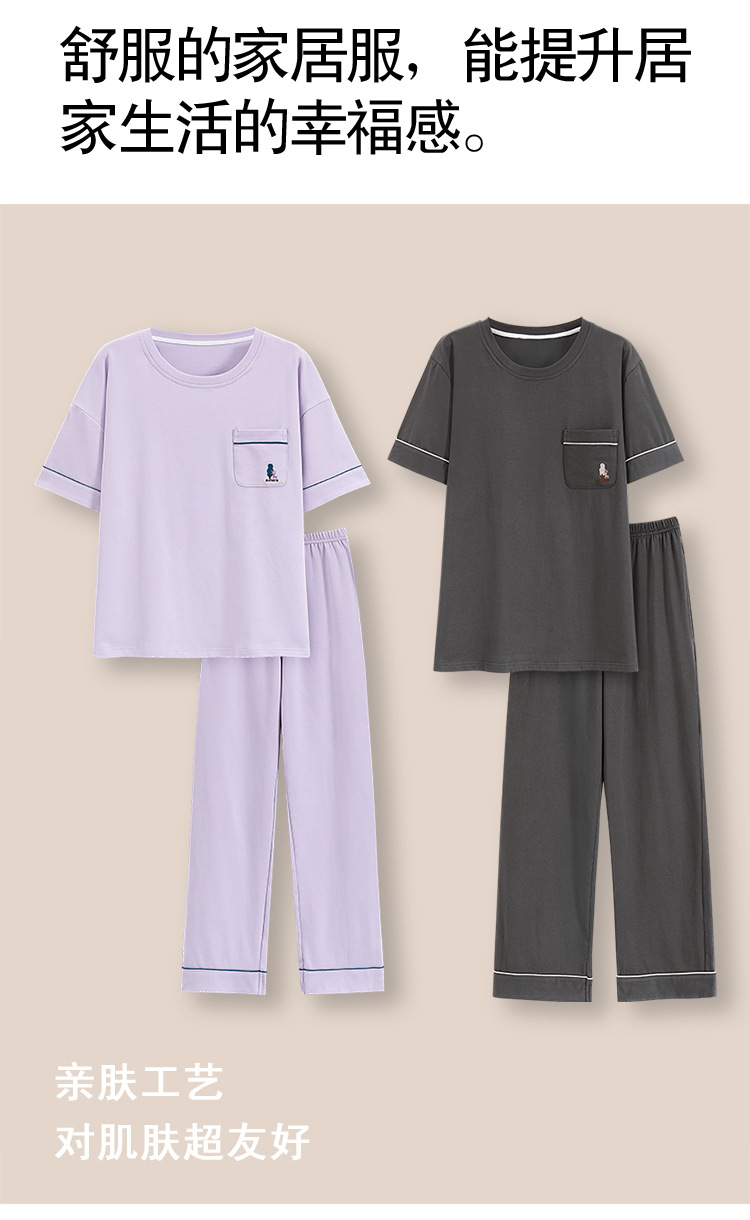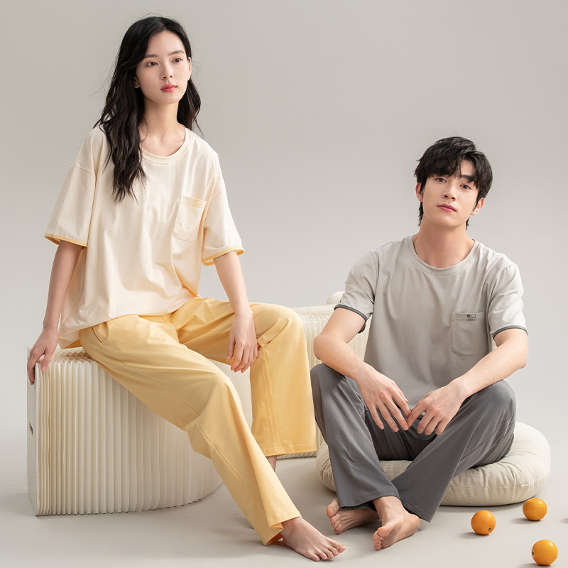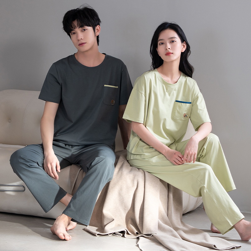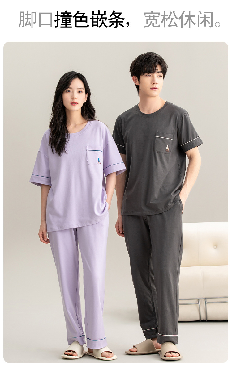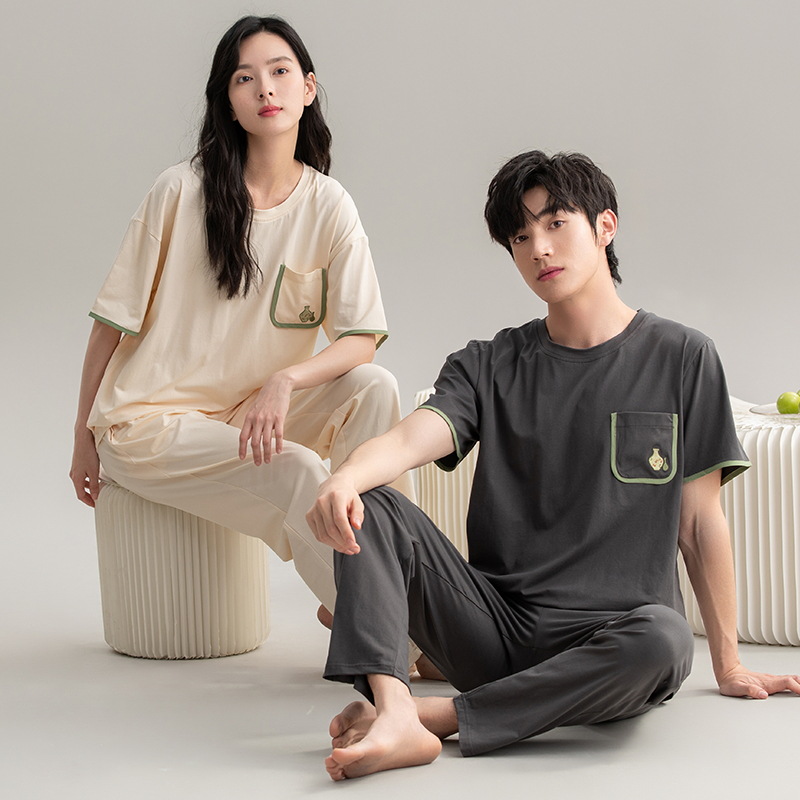 커플 잠옷 여름면 반팔 바지 간단한 캐주얼 패션 의상 라운드 넥 남녀 홈 의류 세트