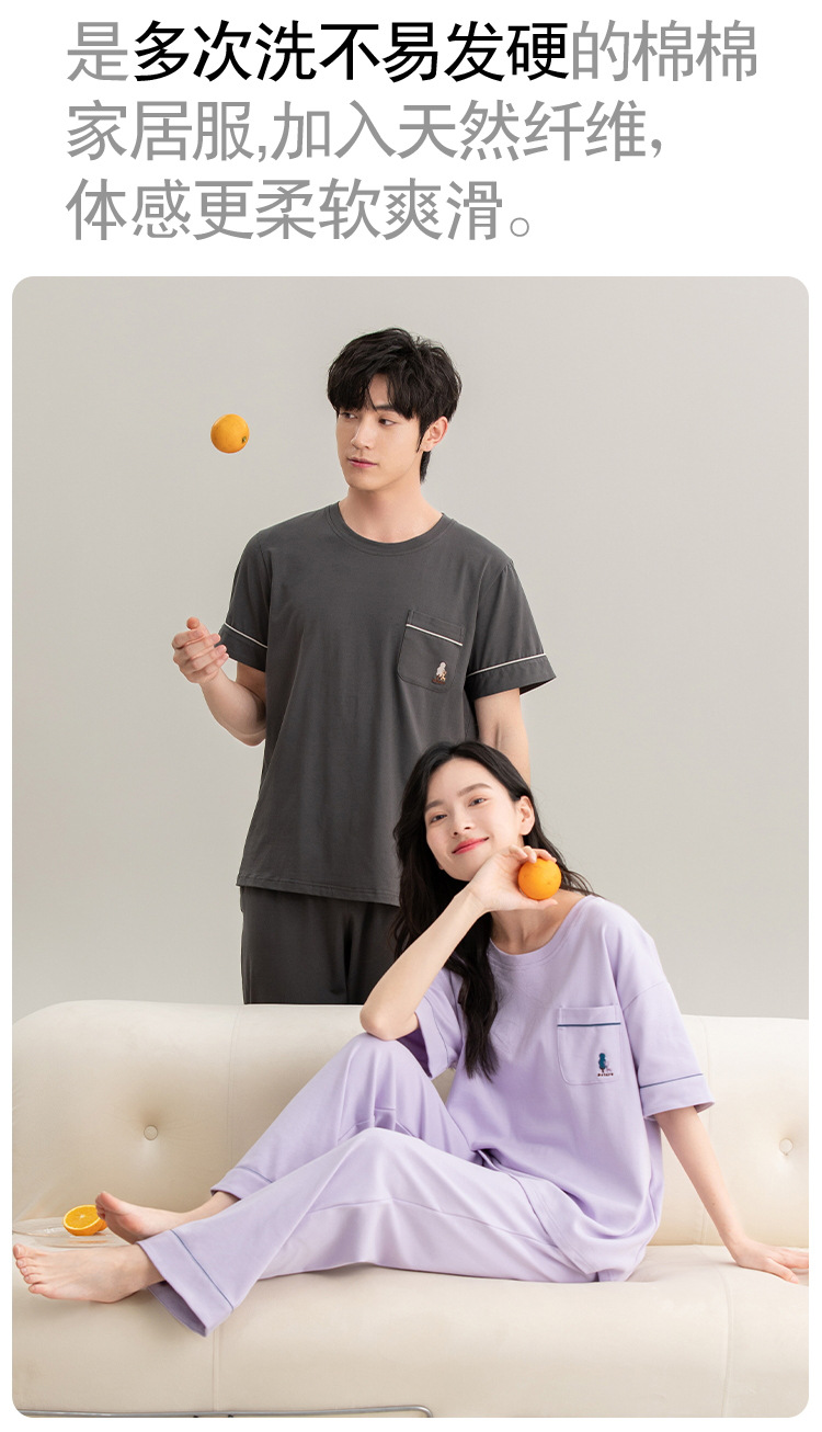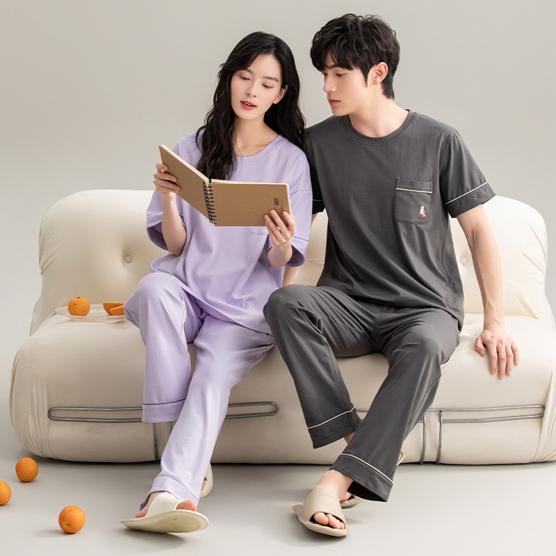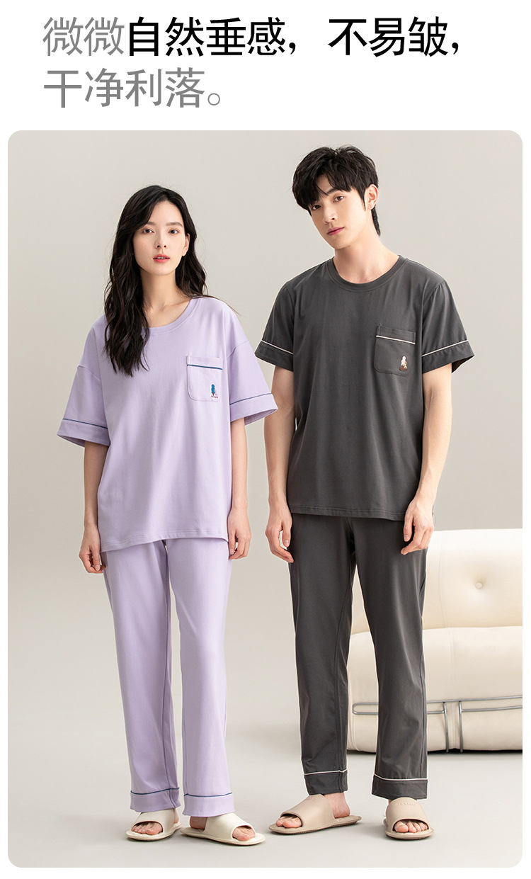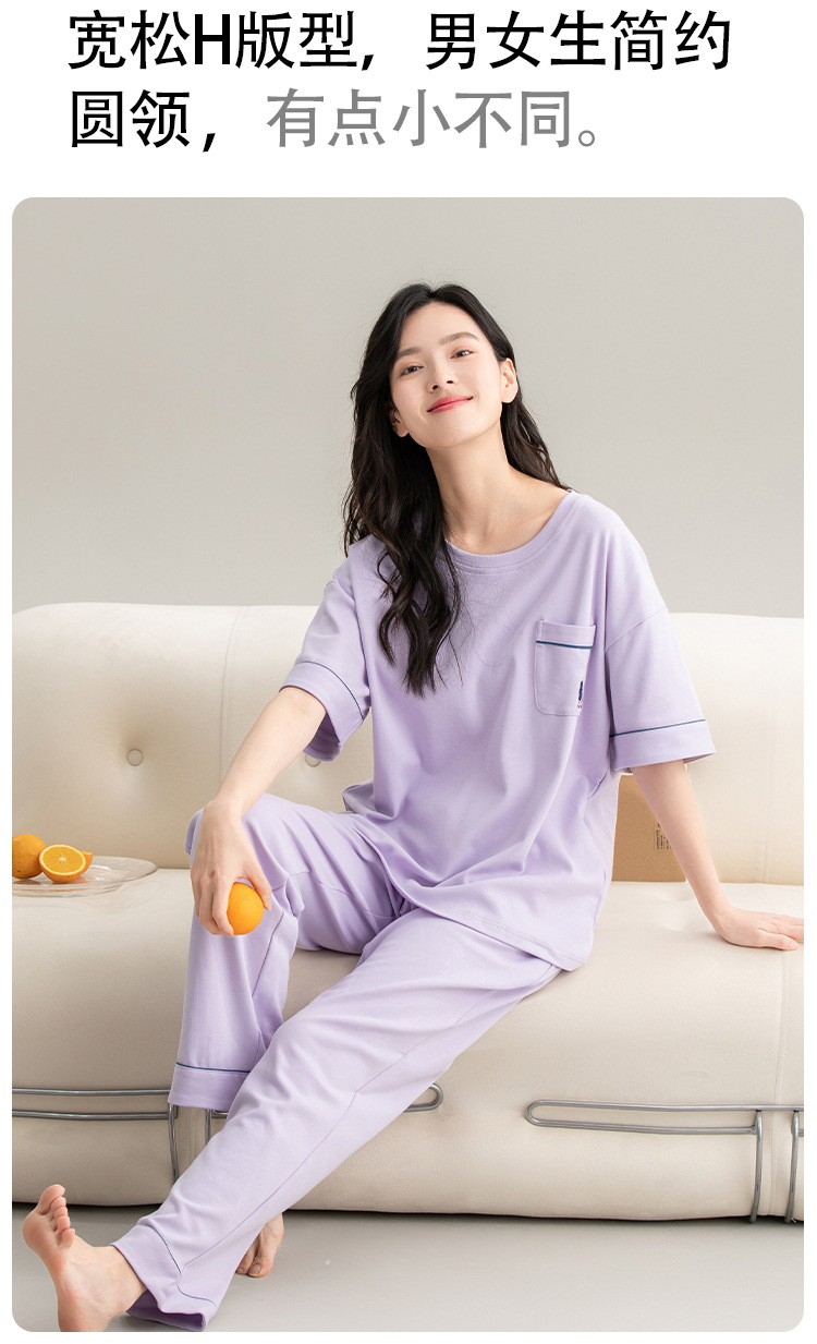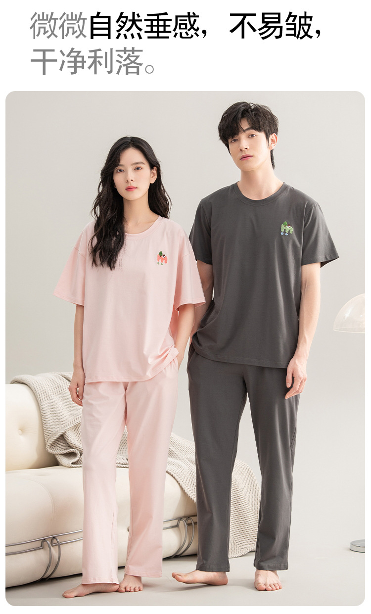 커플 잠옷 여름면 반팔 바지 간단한 캐주얼 패션 의상 라운드 넥 남녀 홈 의류 세트스토어 가기