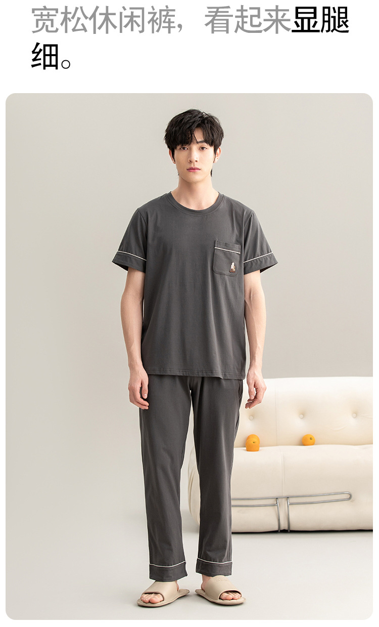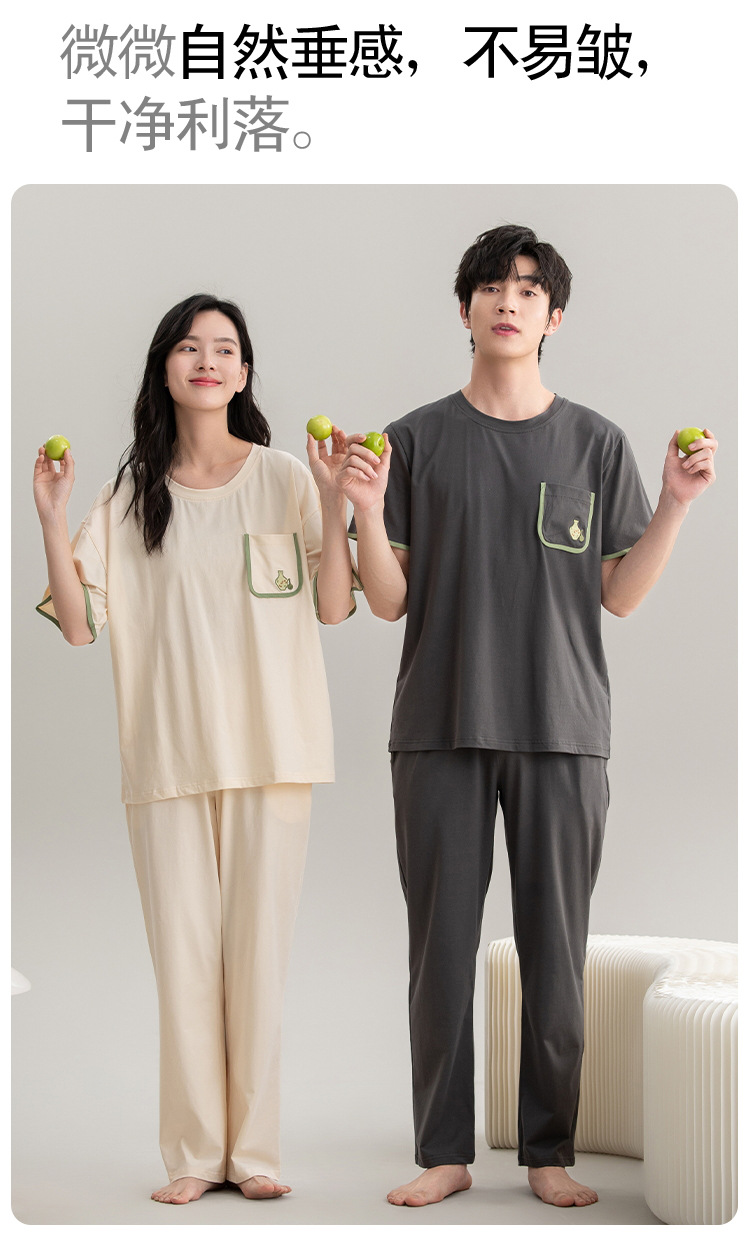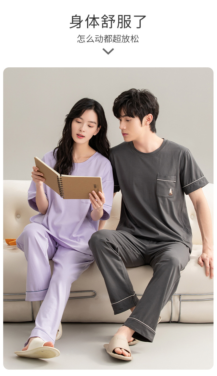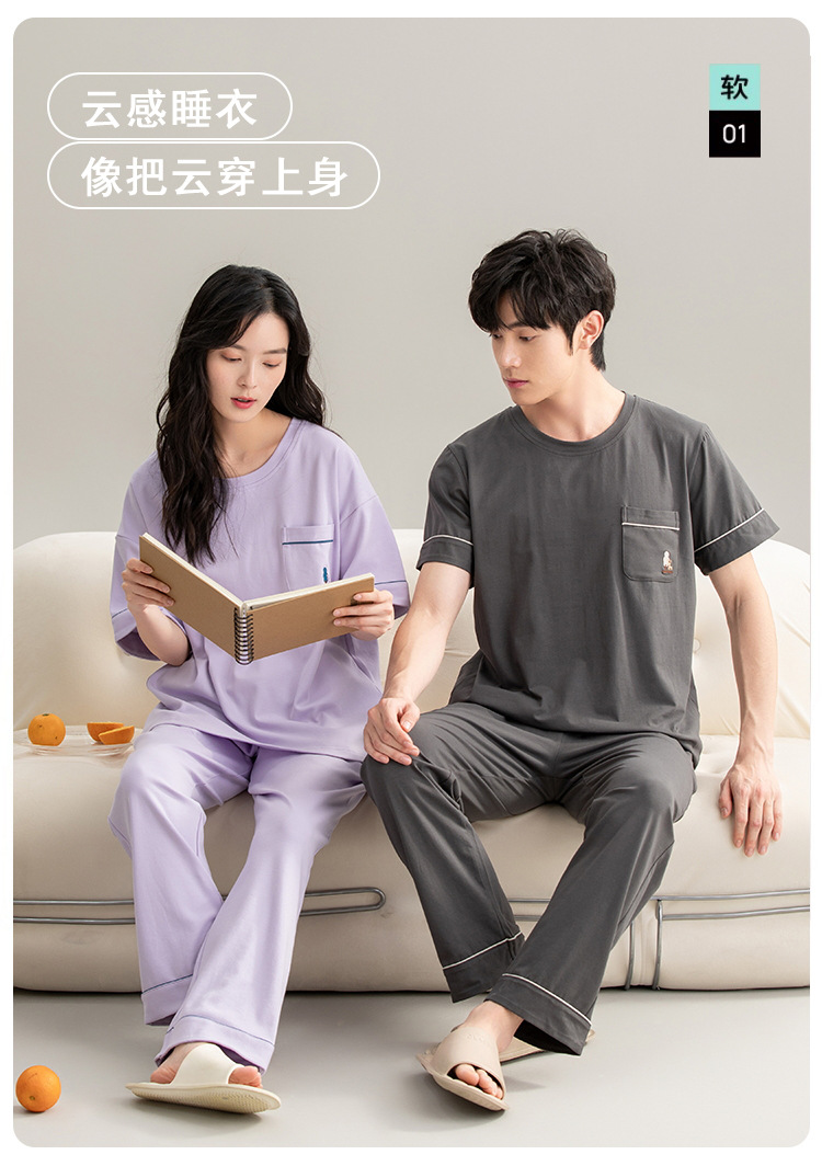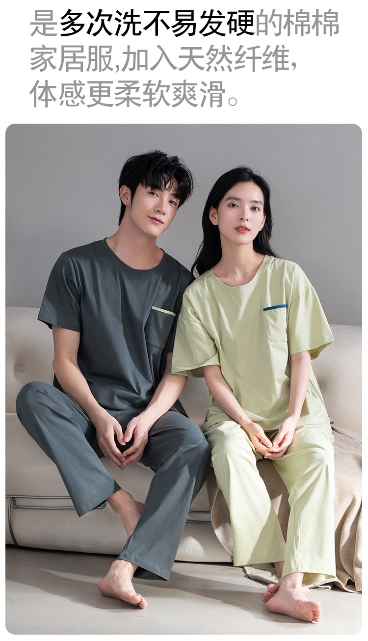 커플 잠옷 여름면 반팔 바지 간단한 캐주얼 패션 의상 라운드 넥 남녀 홈 의류 세트스토어 가기