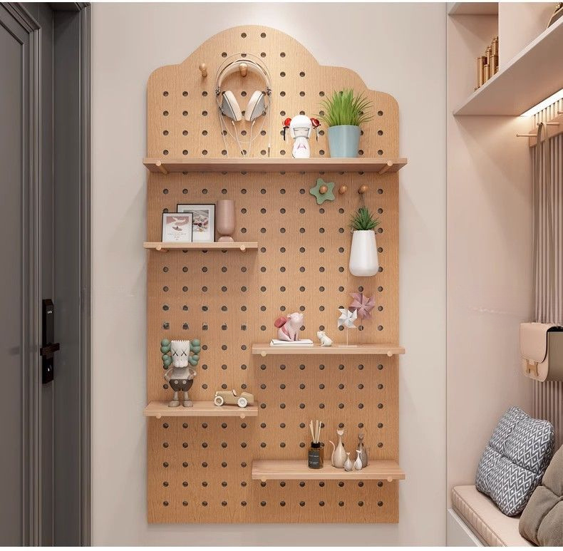라운드 홀 솔리드 우드 홀 보드 스토리지 랙 홈 범용 스토리지 랙 디스플레이 랙 상단 벽 하드웨어 도구 교수형 보드 벽