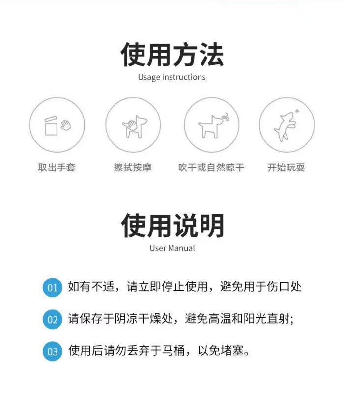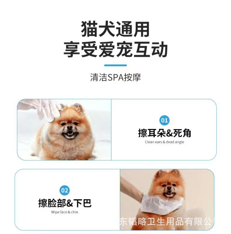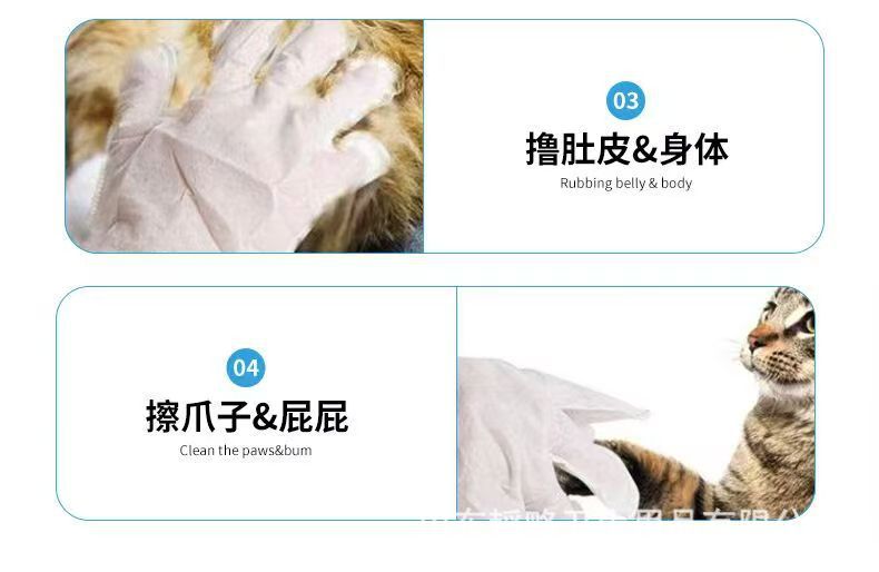 애완 동물 일회용 장갑 물티슈 고양이와 개 보편적 인 청소 오염 제거 부드러운 헤어 장갑은 고양이와 개를 닦습니다.스토어 가기