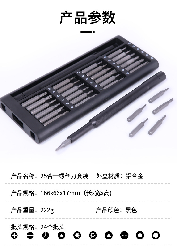 24 1 개의 알루미늄 합금 S2 스크류 드라이버 세트 정밀 자기 다기능 드라이버 휴대 전화 수리 분해 도구