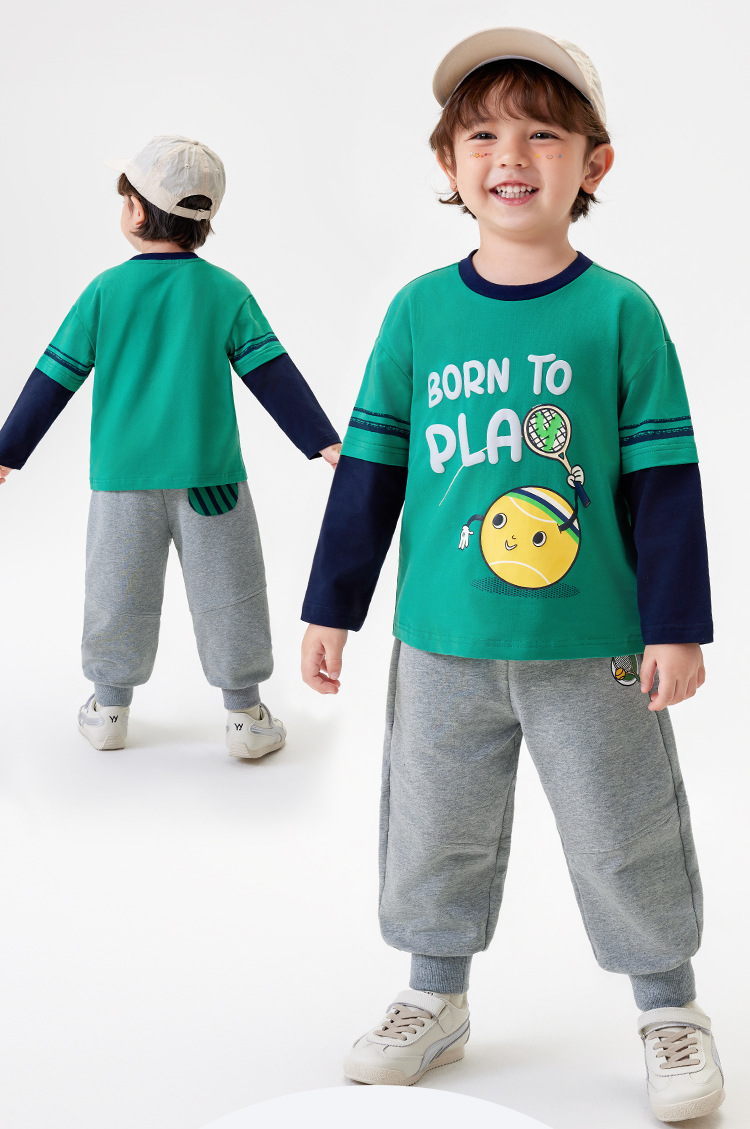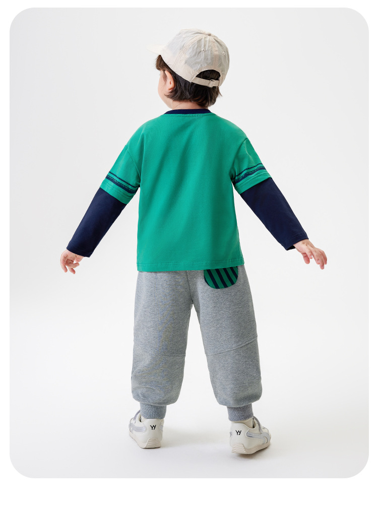 [5A Bacteriostasis] MQDmini Spring New Boys 티셔츠 세트 어린이 느슨한 명암 티셔츠 바지 커버
