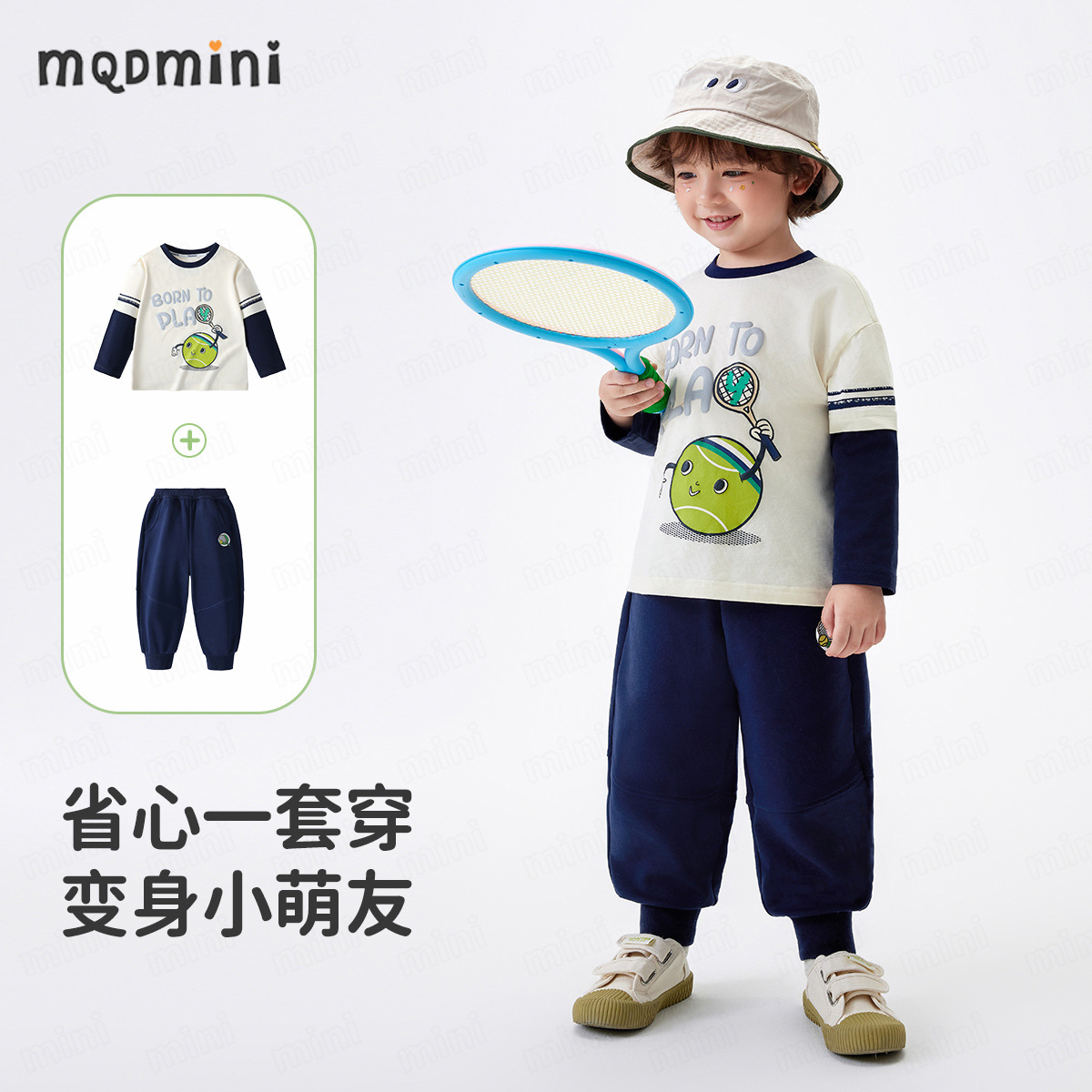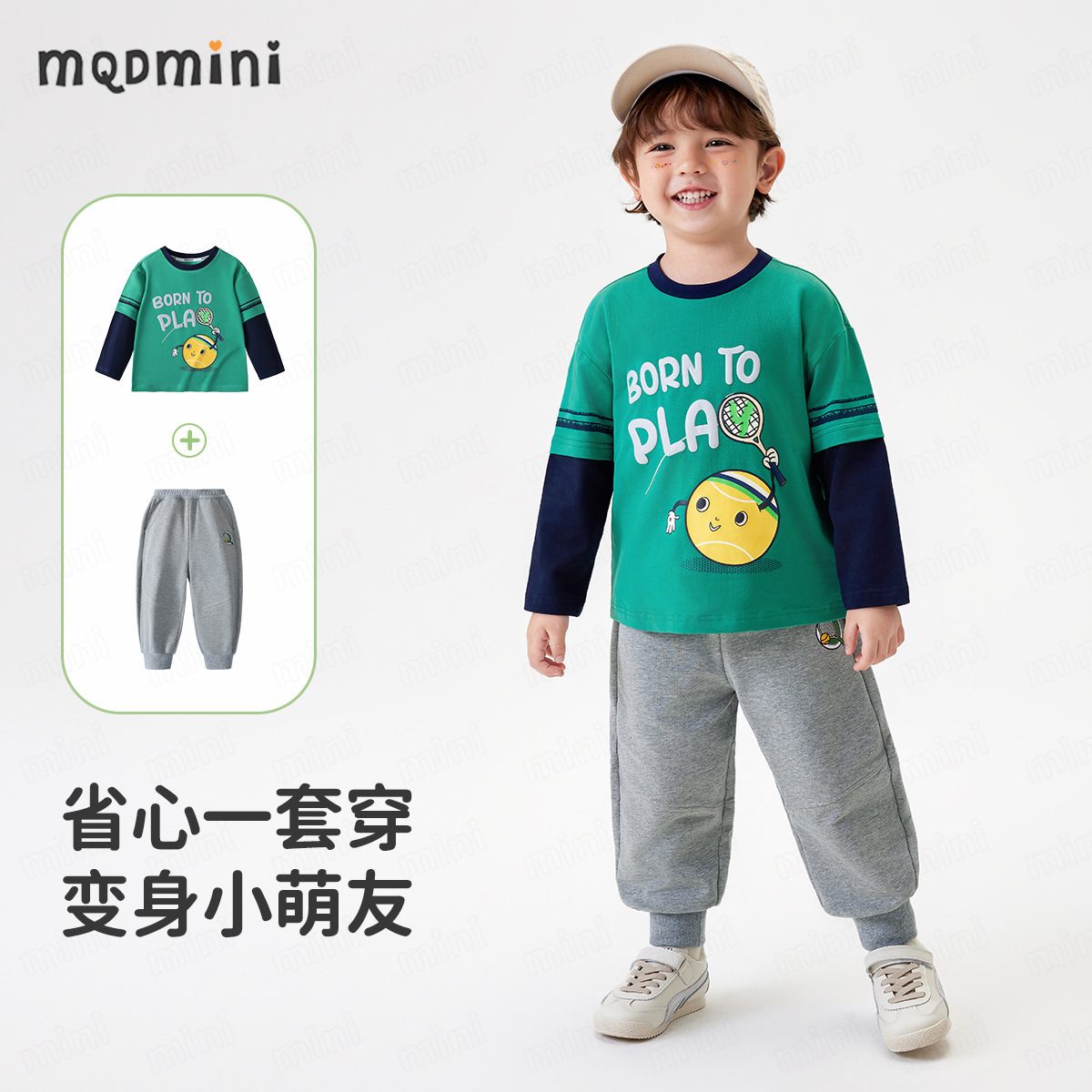 [5A Bacteriostasis] MQDmini Spring New Boys 티셔츠 세트 어린이 느슨한 명암 티셔츠 바지 커버스토어 가기