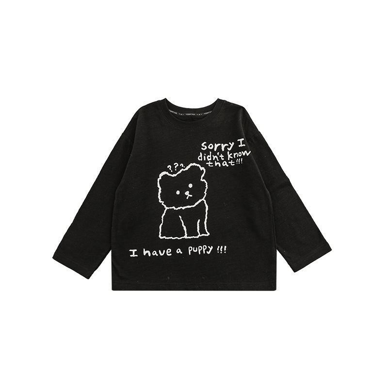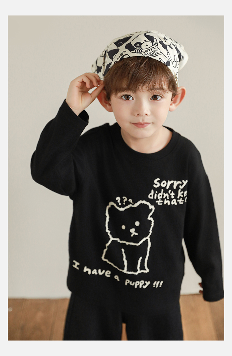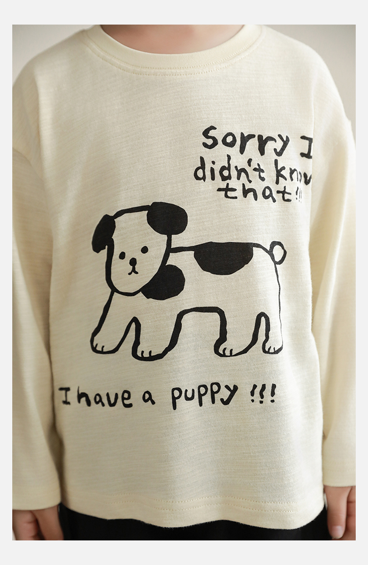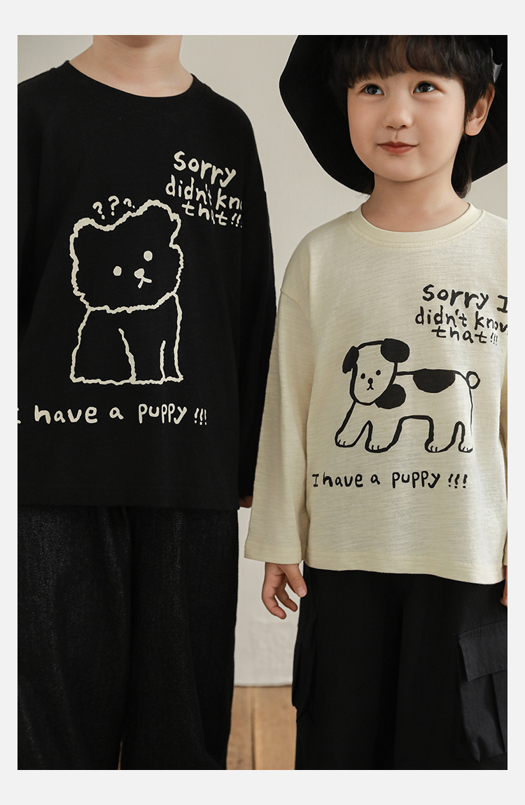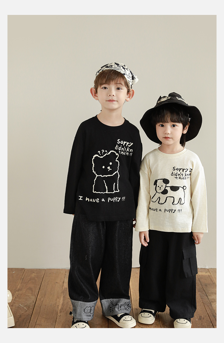 Wuri Boys의 긴 소매 크루 넥 만화 강아지 티셔츠 2025 봄 어린이 패션 루즈 탑
