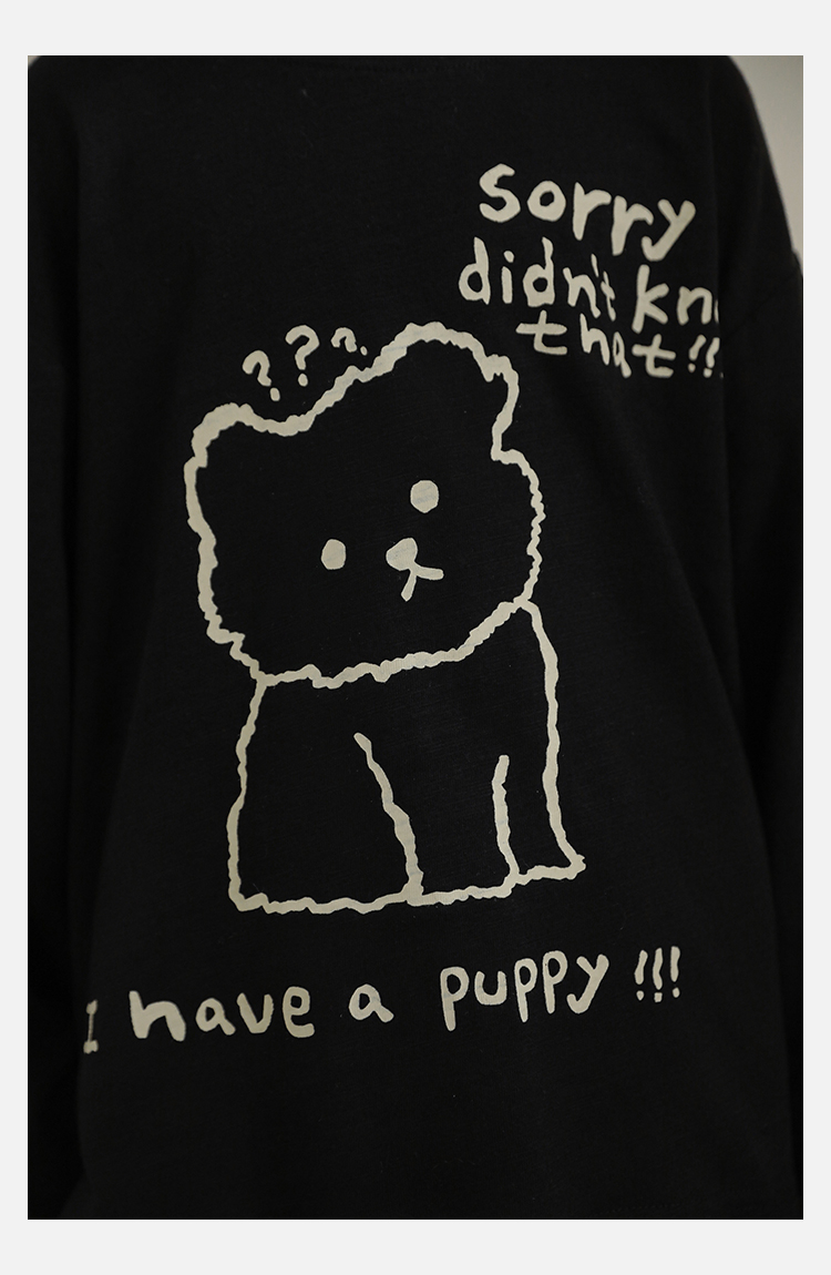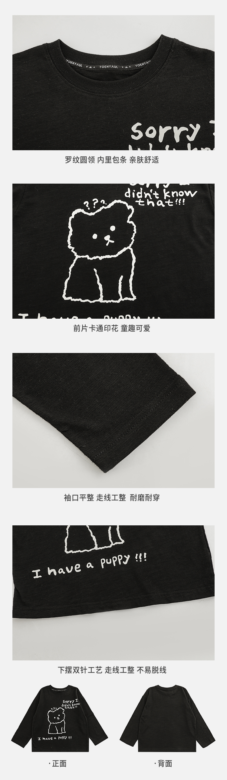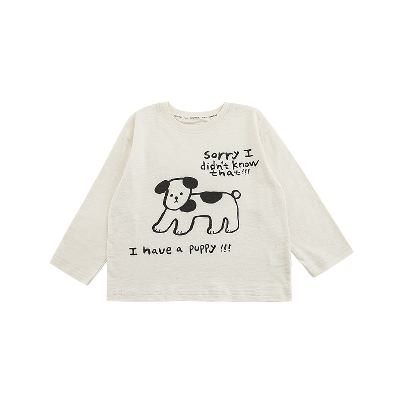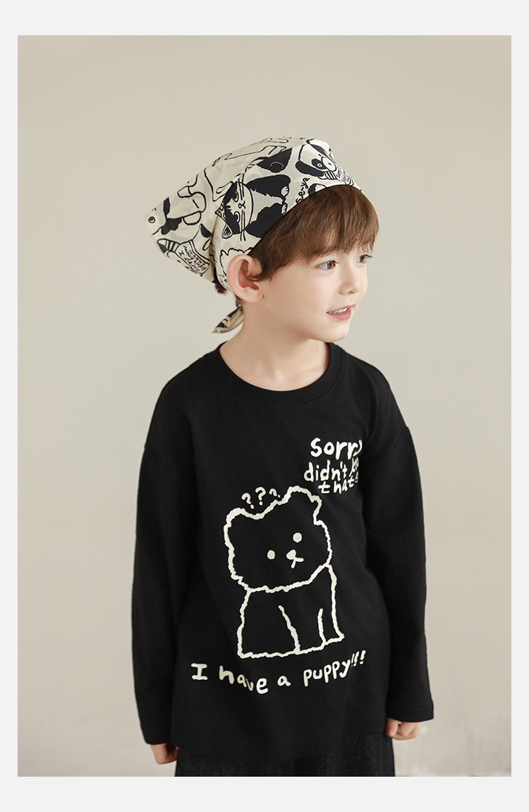 Wuri Boys의 긴 소매 크루 넥 만화 강아지 티셔츠 2025 봄 어린이 패션 루즈 탑