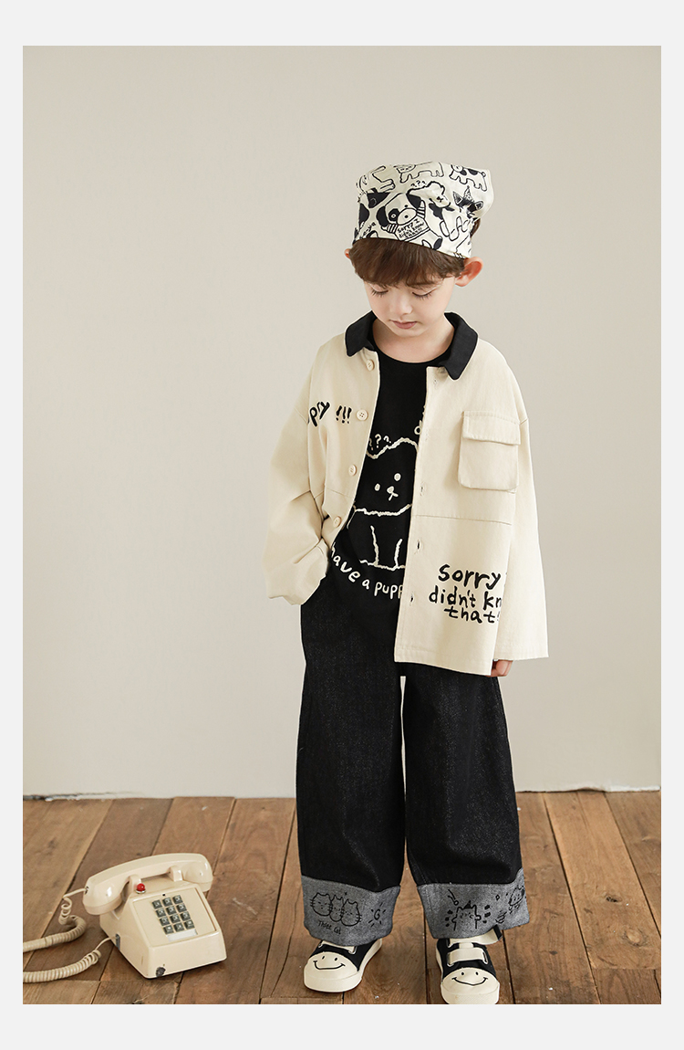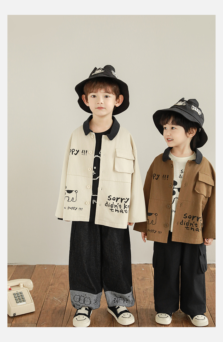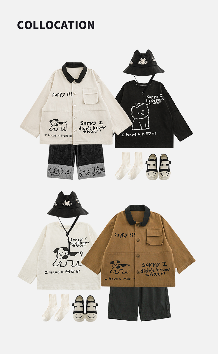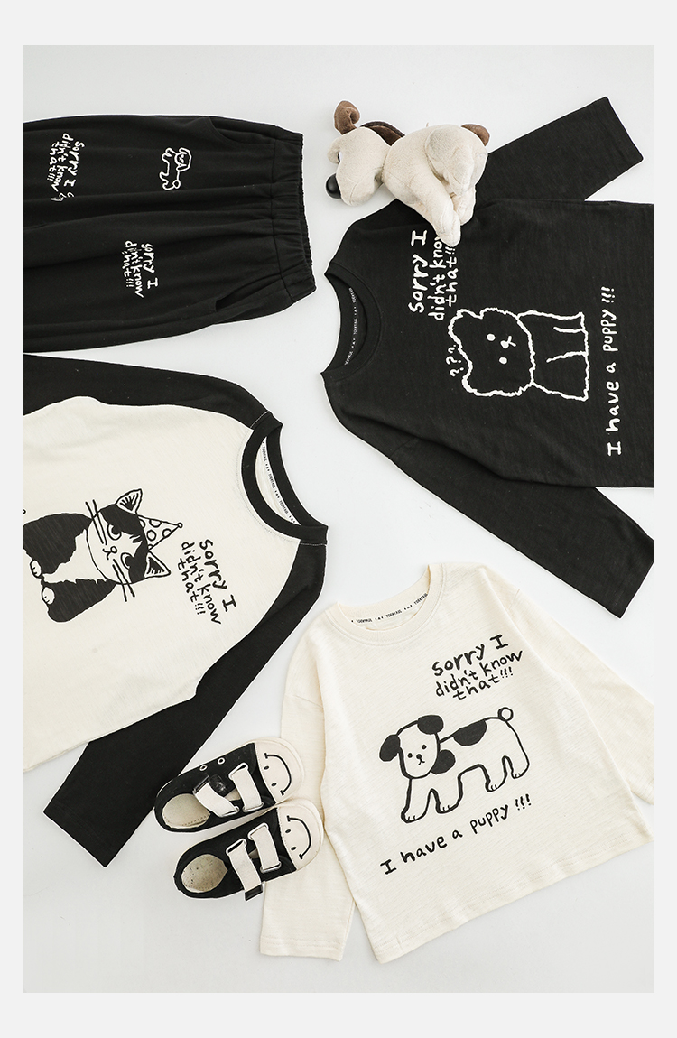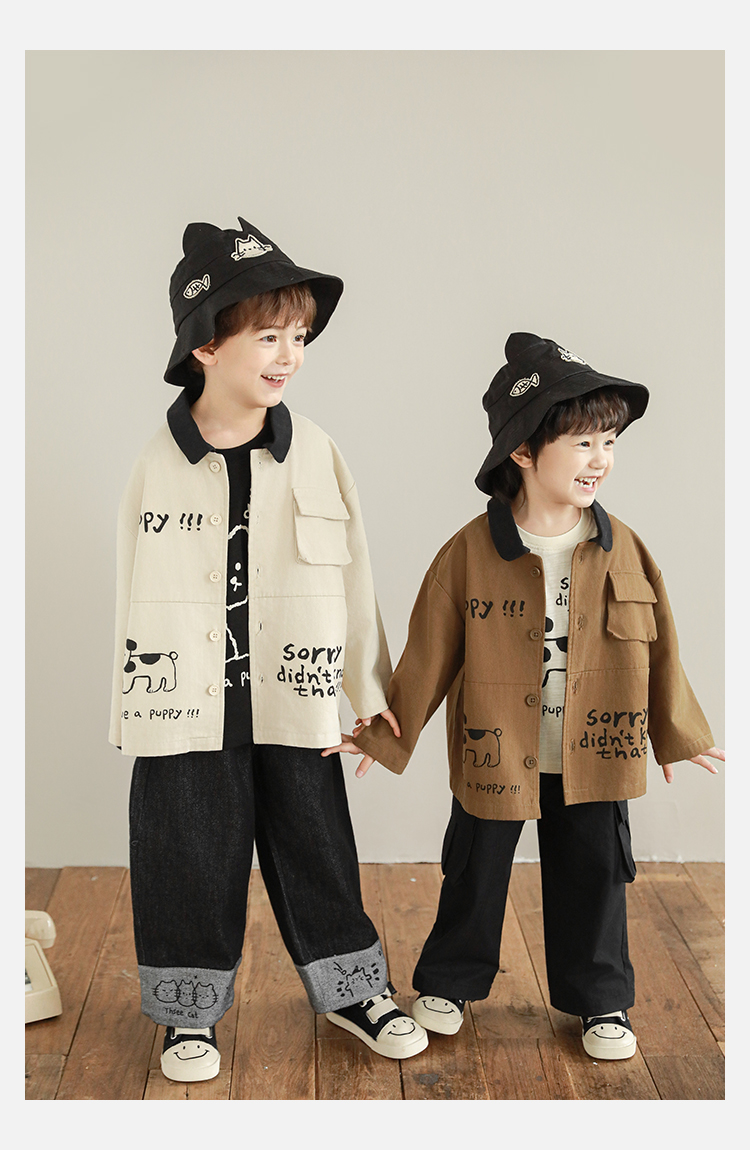 Wuri Boys의 긴 소매 크루 넥 만화 강아지 티셔츠 2025 봄 어린이 패션 루즈 탑스토어 가기