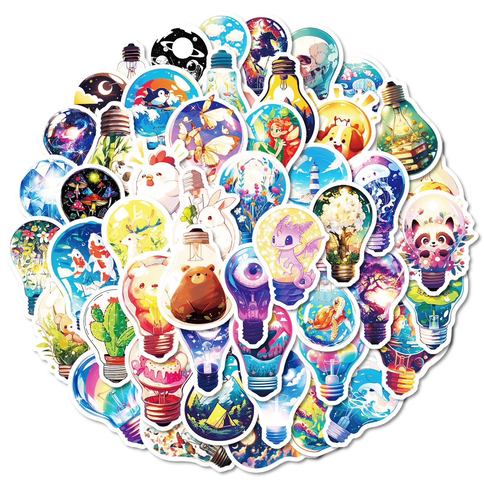 새로운 50 창조적 인 전구 세계 낙서 스티커 아마존 국경 베스트셀러 장식 스티커 대외 무역 재고