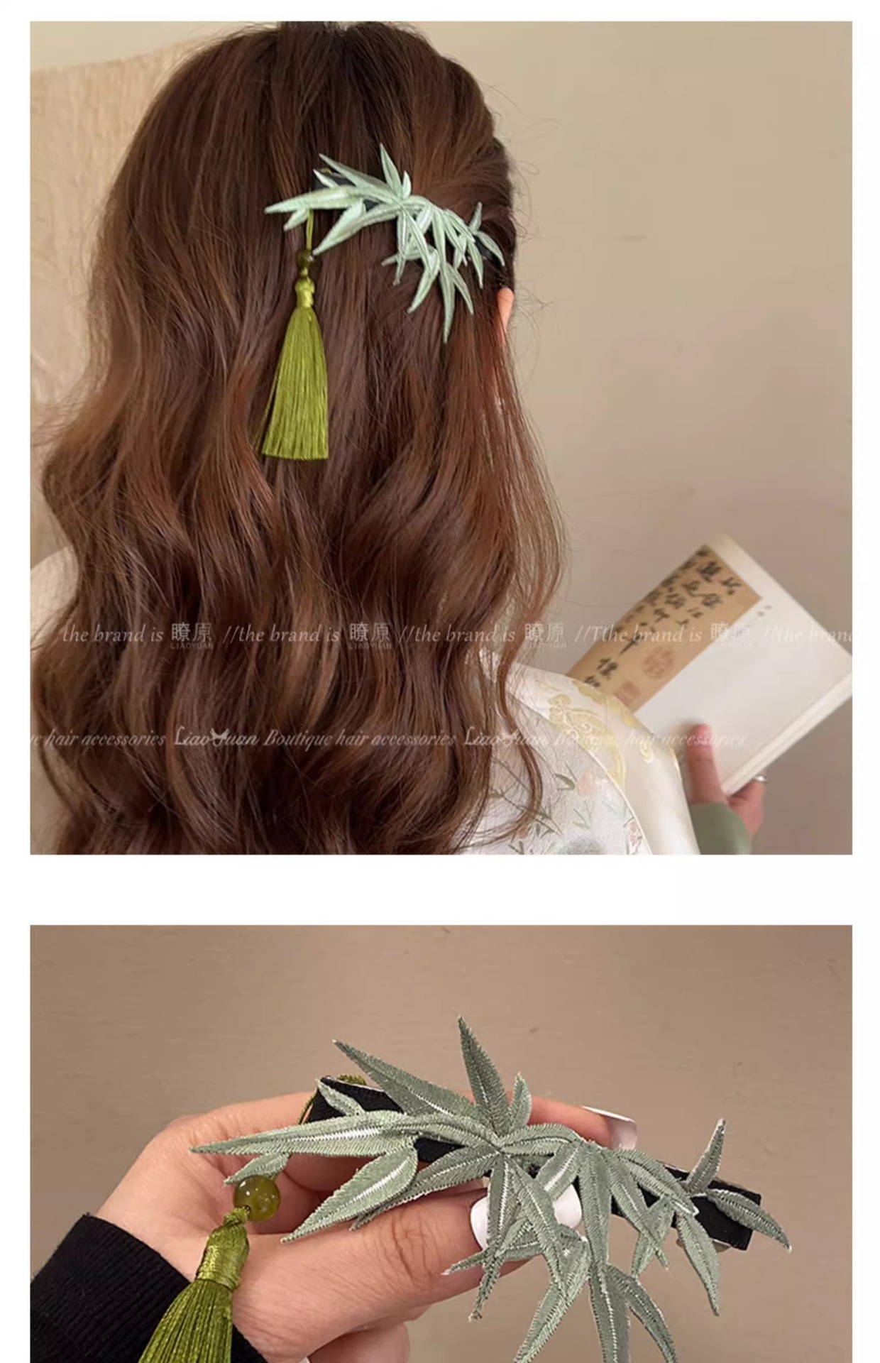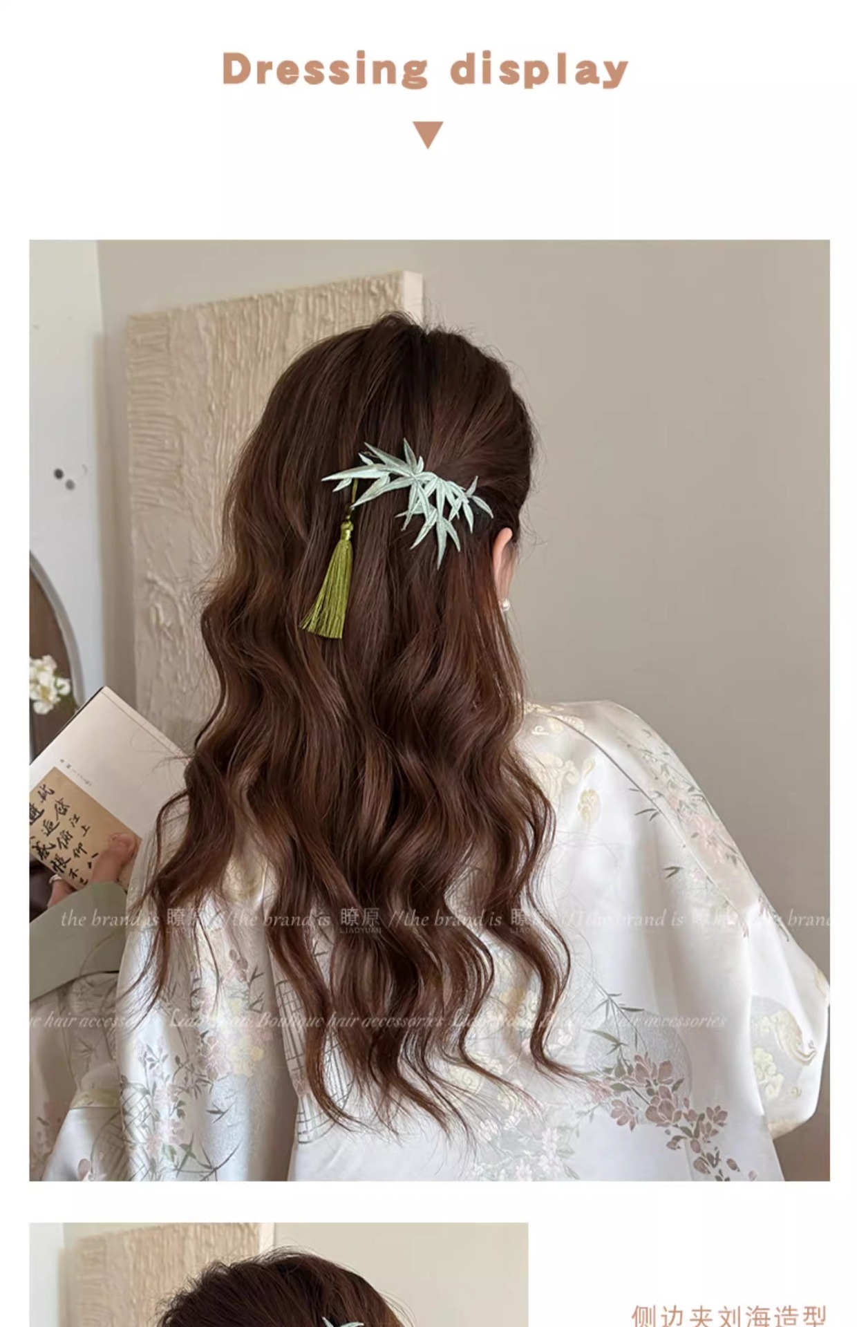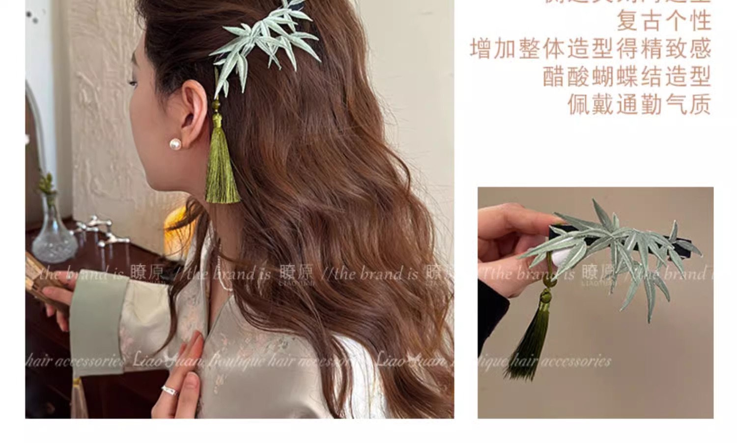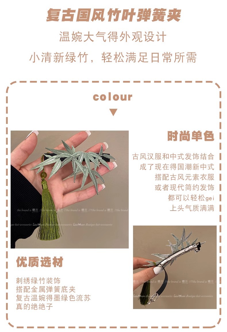 녹색 대나무 술 우아한 새로운 중국 스타일 헤어핀 여성의 2024 새로운 하이 엔드 사이드 백 헤드 하프 스프링 클립스토어 가기