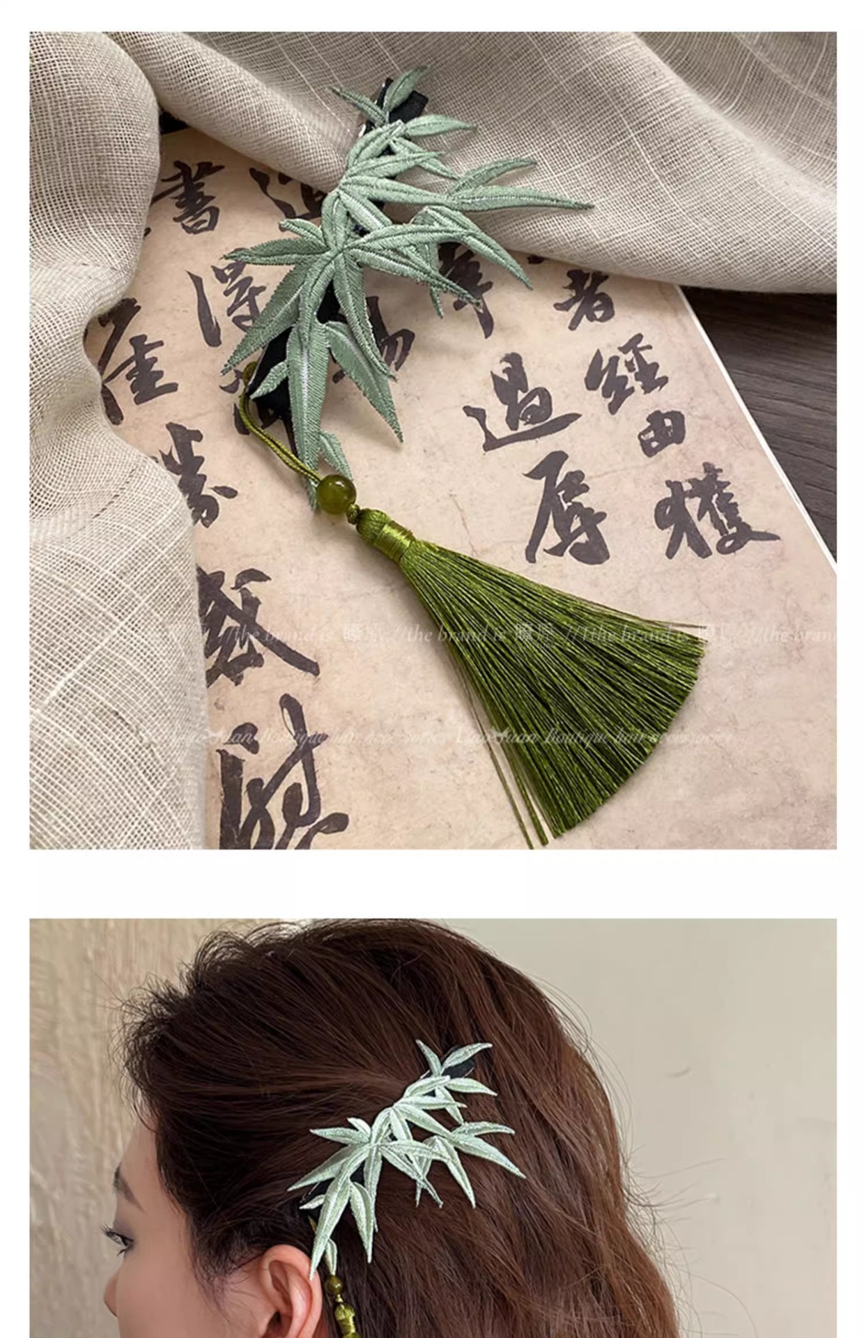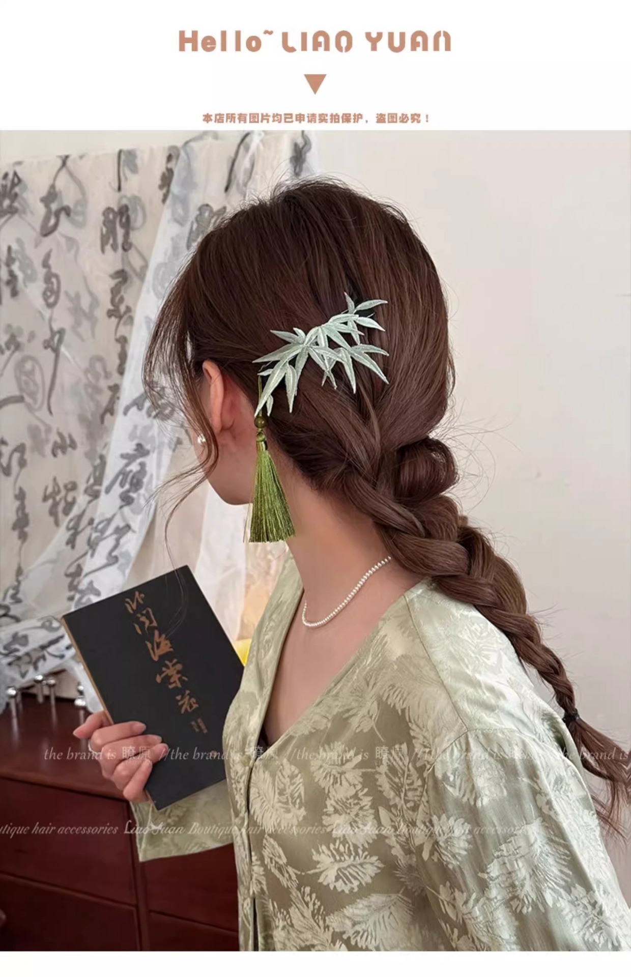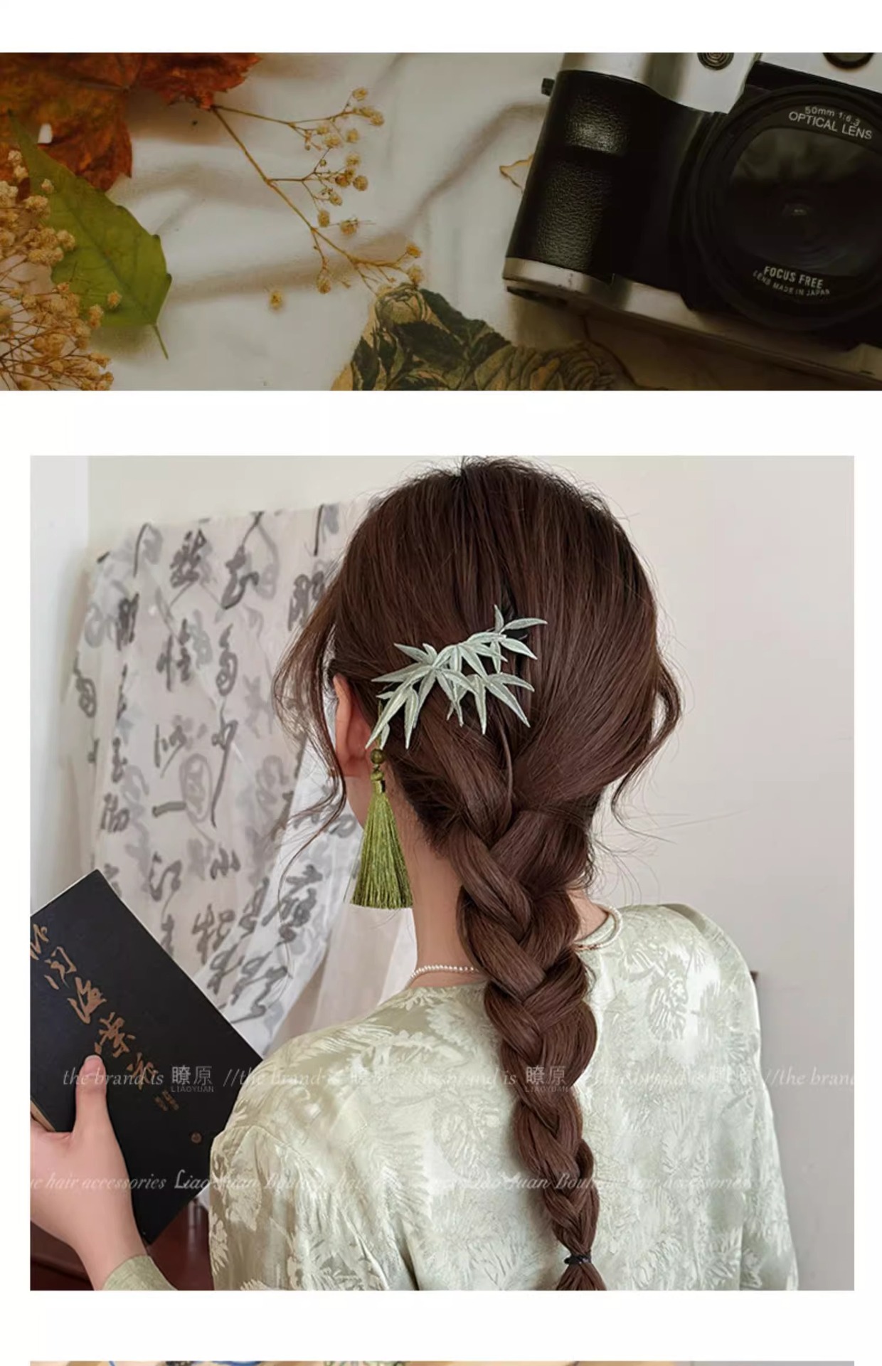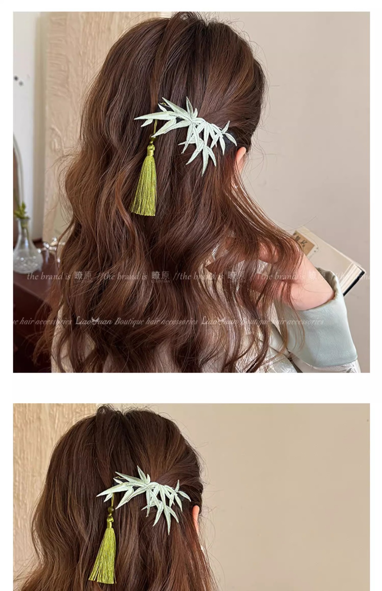 녹색 대나무 술 우아한 새로운 중국 스타일 헤어핀 여성의 2024 새로운 하이 엔드 사이드 백 헤드 하프 스프링 클립스토어 가기