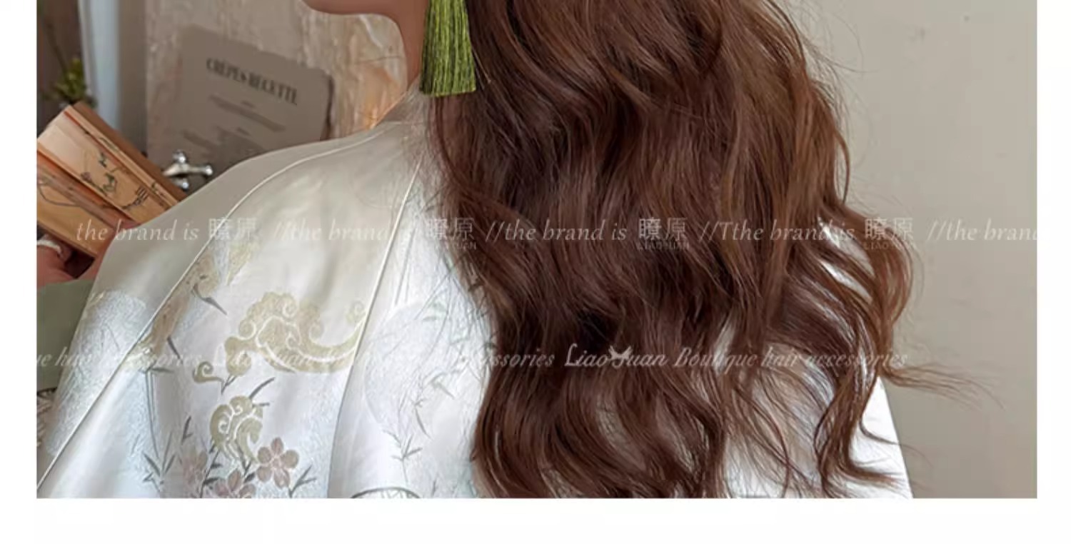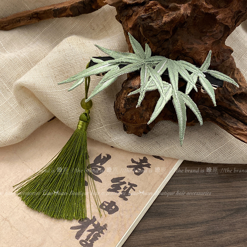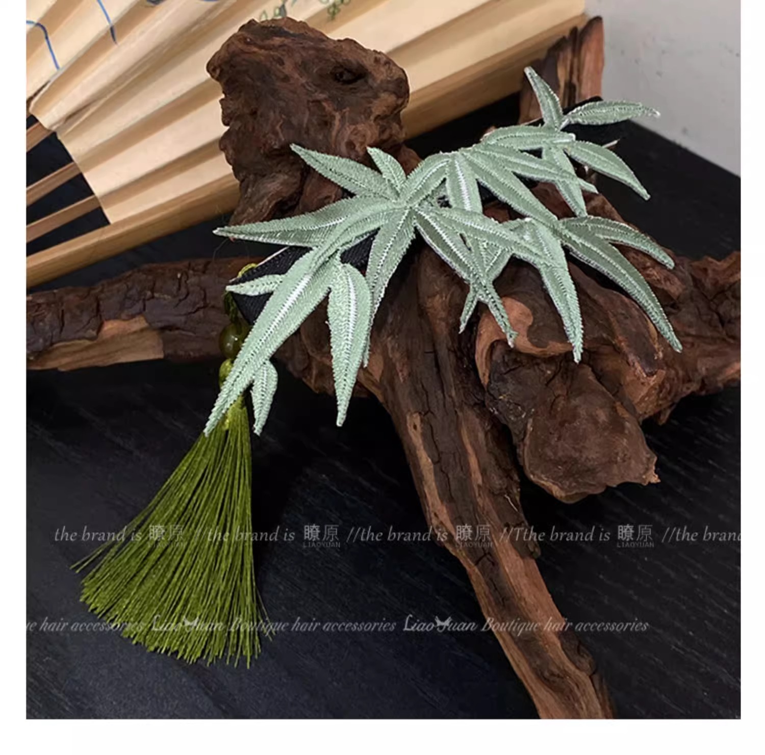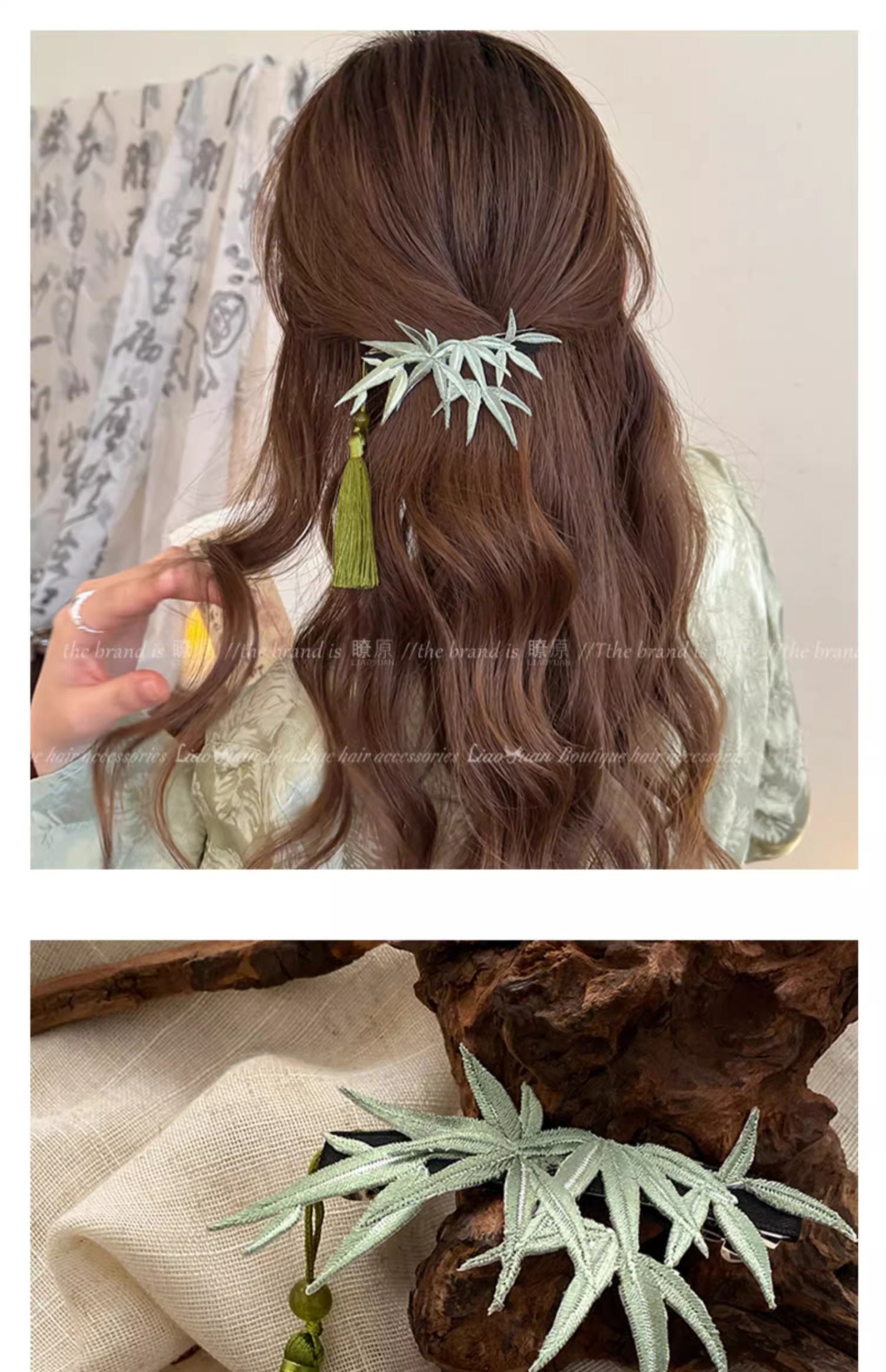 녹색 대나무 술 우아한 새로운 중국 스타일 헤어핀 여성의 2024 새로운 하이 엔드 사이드 백 헤드 하프 스프링 클립