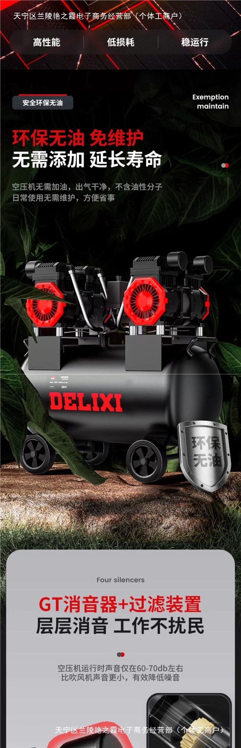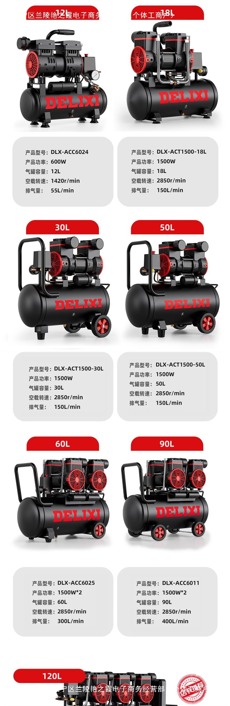 Delixi 220V 오일이없는 저음 공기 압축기 미니 소형 고출력 휴대용 공기 펌프 목공 공기 압축기스토어 가기
