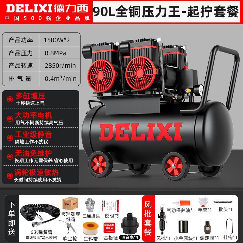 Delixi 220V 오일이없는 저음 공기 압축기 미니 소형 고출력 휴대용 공기 펌프 목공 공기 압축기