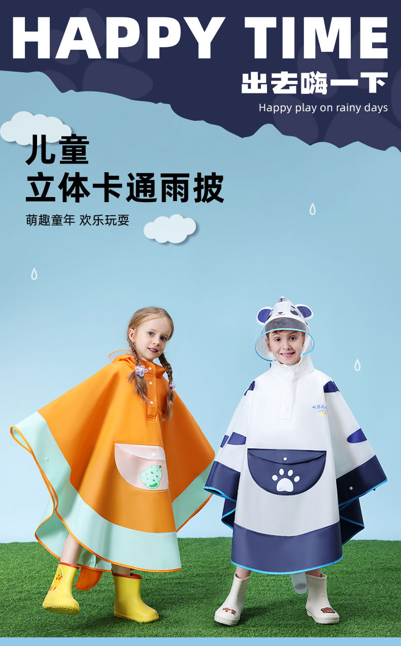 비오는 날용 EVA 친환경 어린이 방수 우비, 맨투맨 스타일 남아 여아 전용, 가방 수납공간 포함스토어 가기