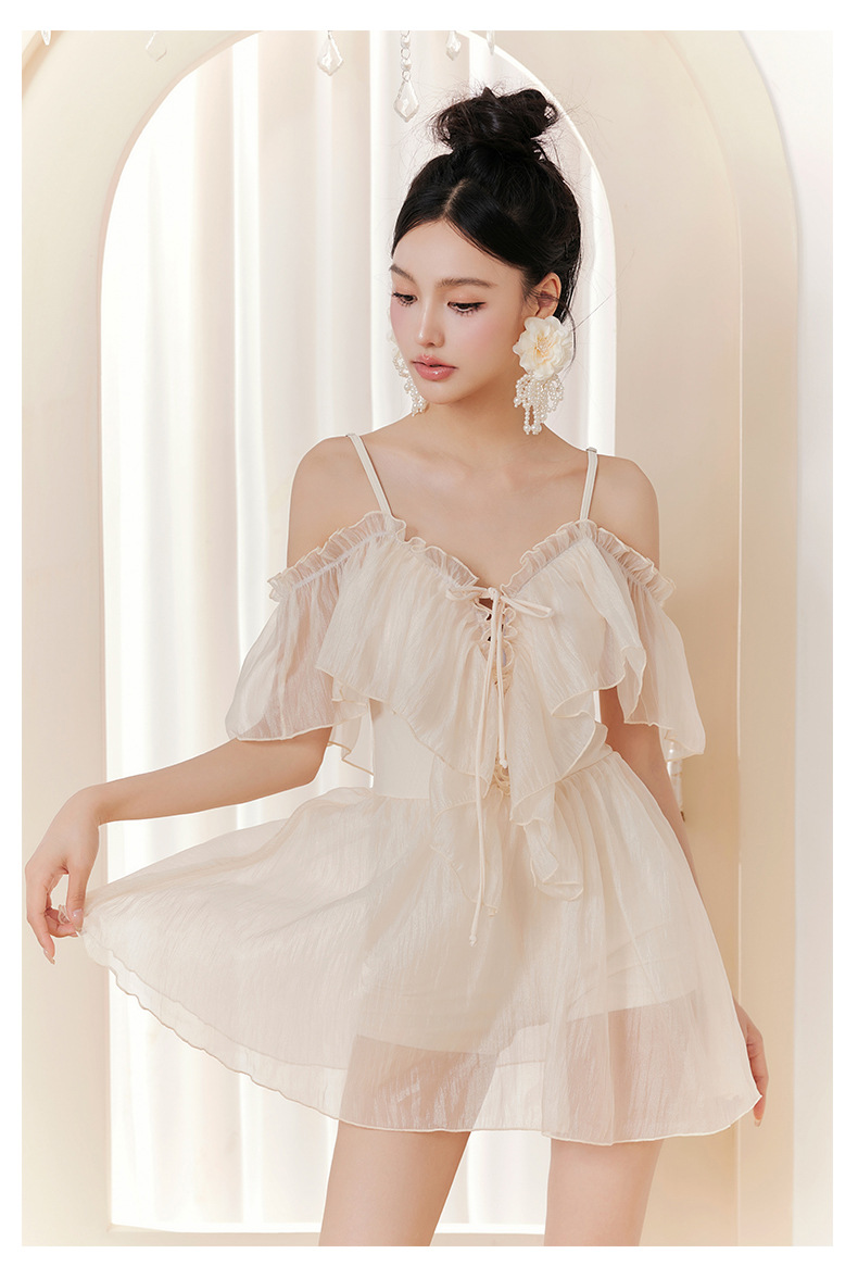 프랑스 고급 섹시한 레이스 러플 달콤한 요정 순수한 욕망 스타일 보수적 인 원피스 수영복 여성 플러스 사이즈스토어 가기