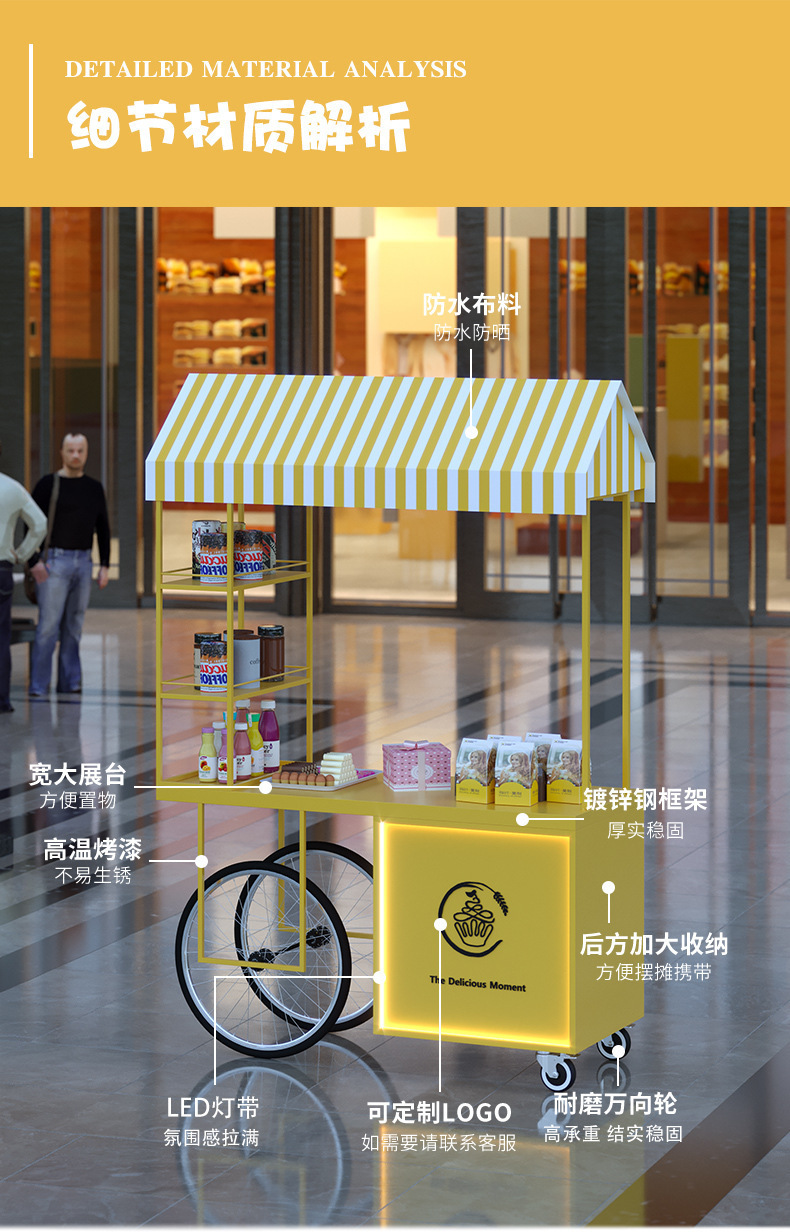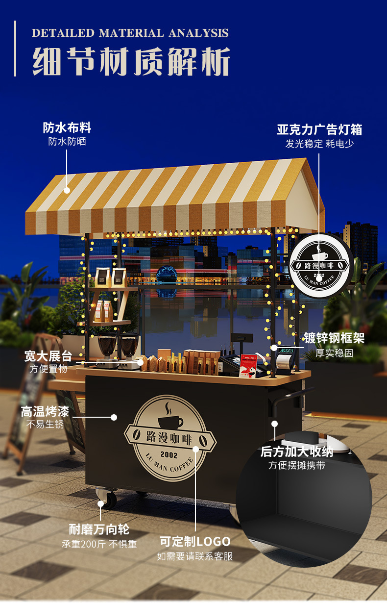 야시장 스톨 플로트 디스플레이 랙 스톨 트롤리 스토리지 랙 스낵 커피 음료 흐름 다기능 트롤리