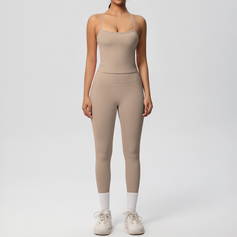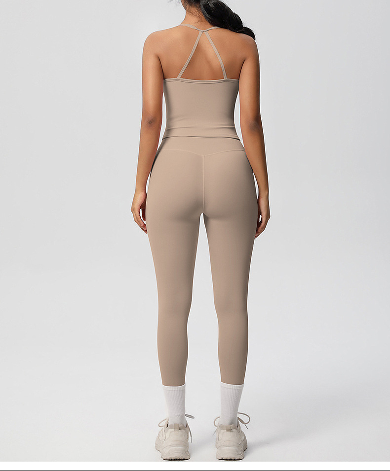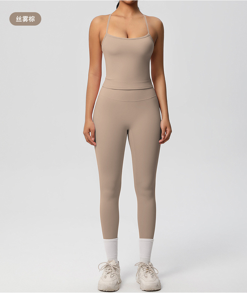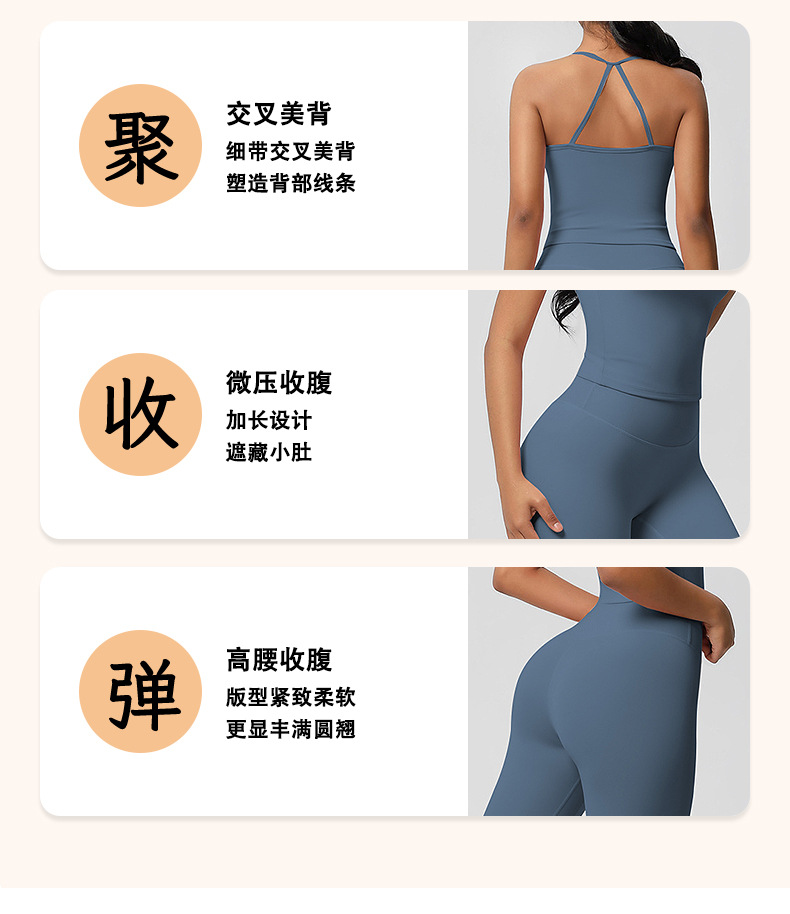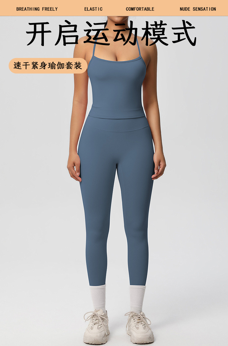 유럽풍 솔리드 컬러 누드 느낌 양면 기모 등 부분 노출 아웃도어 러닝 타이트 스포츠 요가복 세트