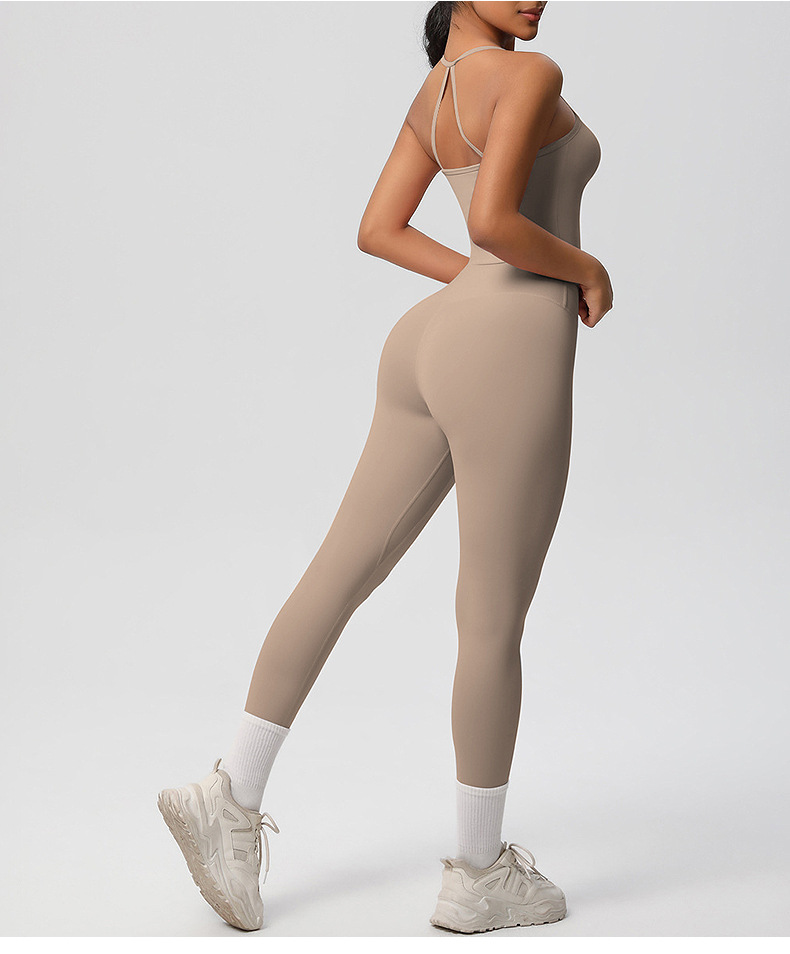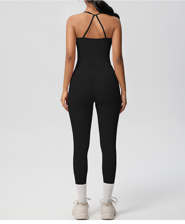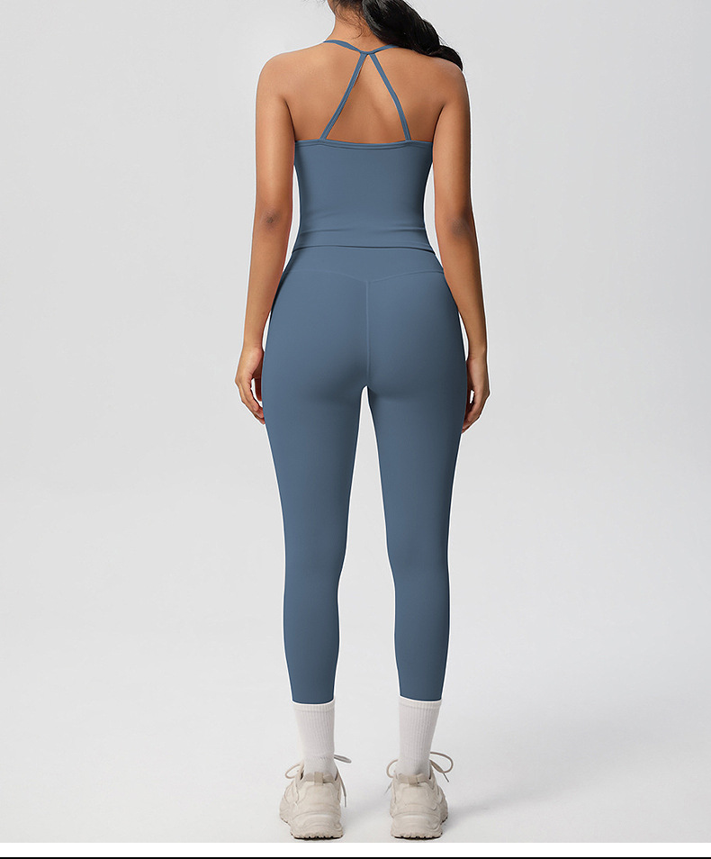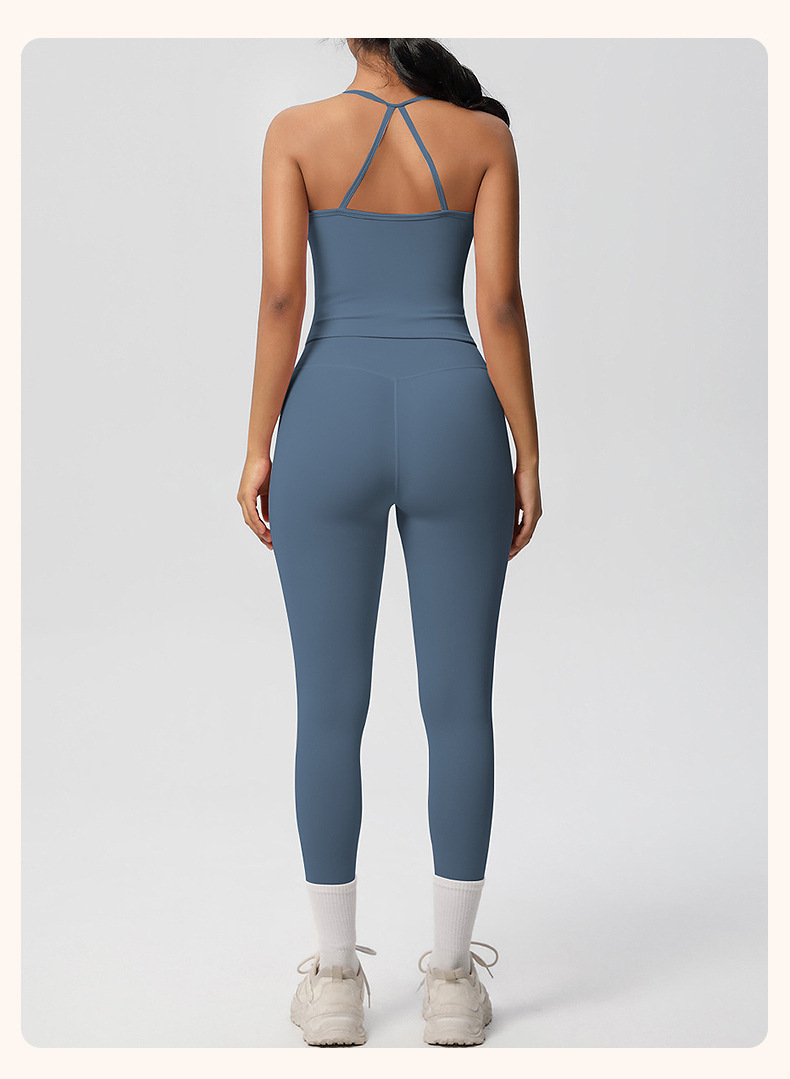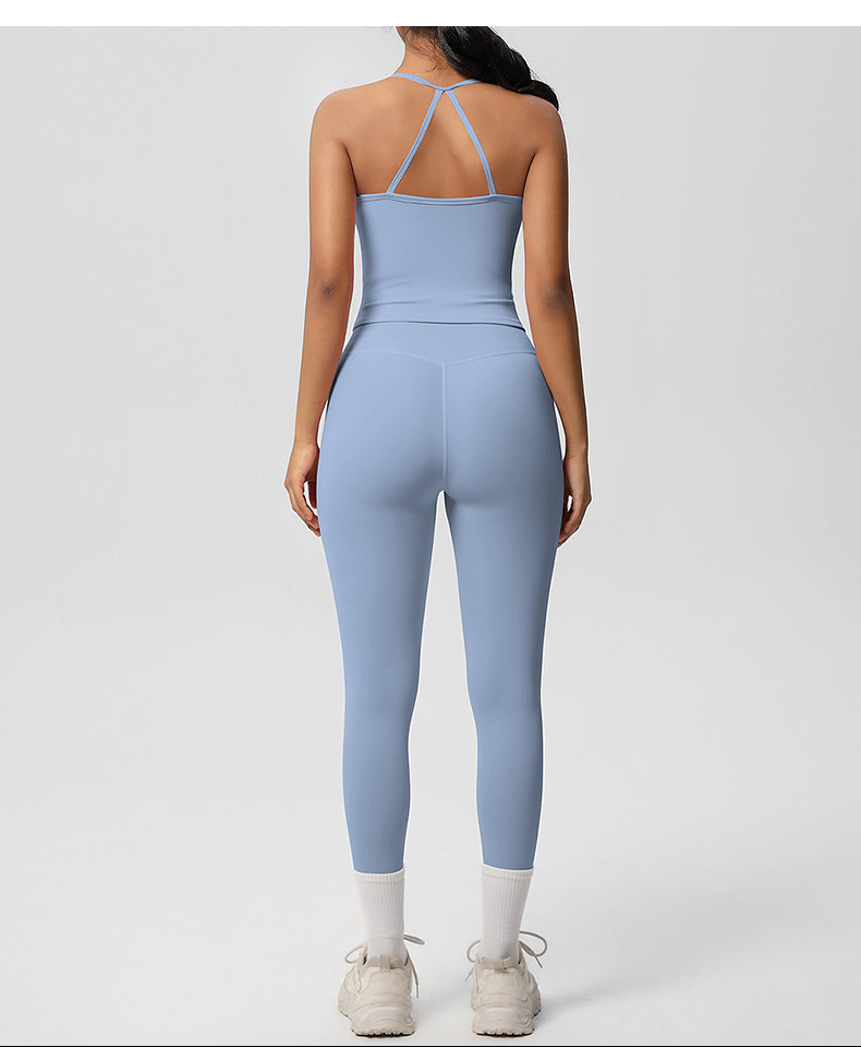 유럽풍 솔리드 컬러 누드 느낌 양면 기모 등 부분 노출 아웃도어 러닝 타이트 스포츠 요가복 세트