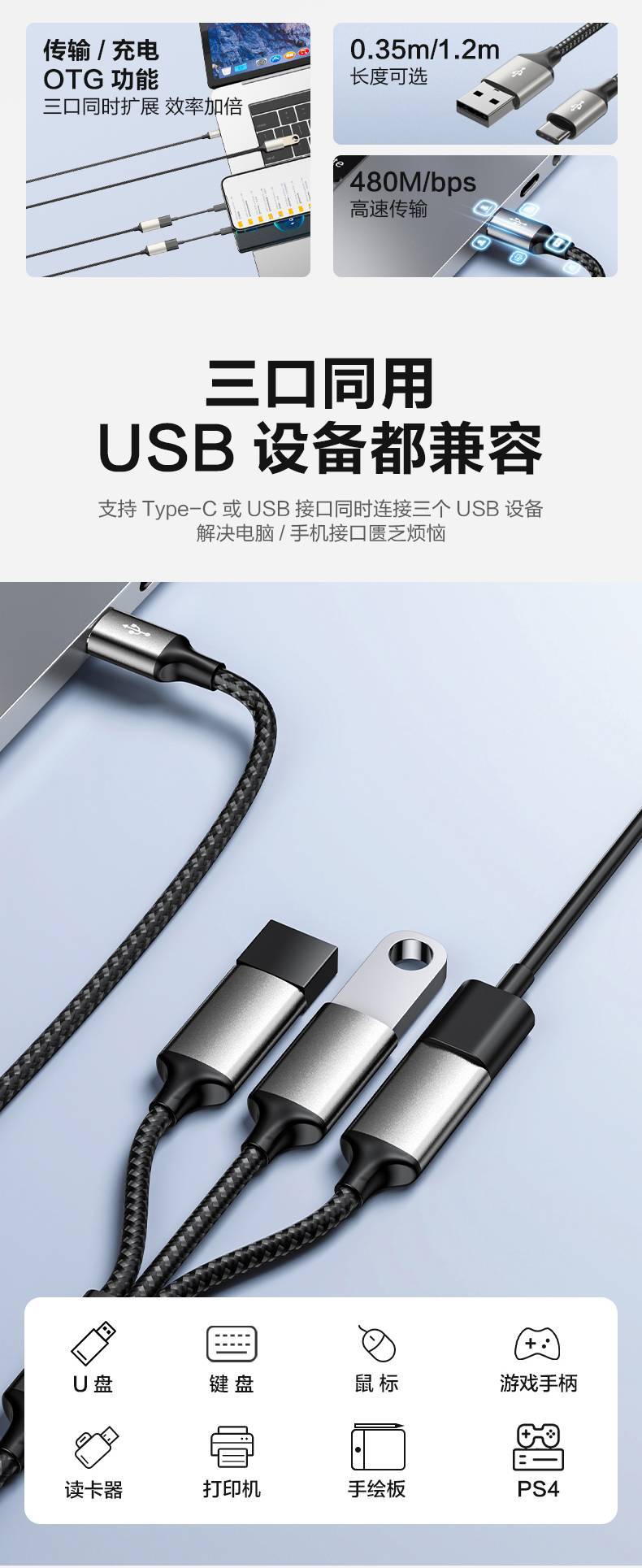 • Type-C ~ 3USB(1.2m)