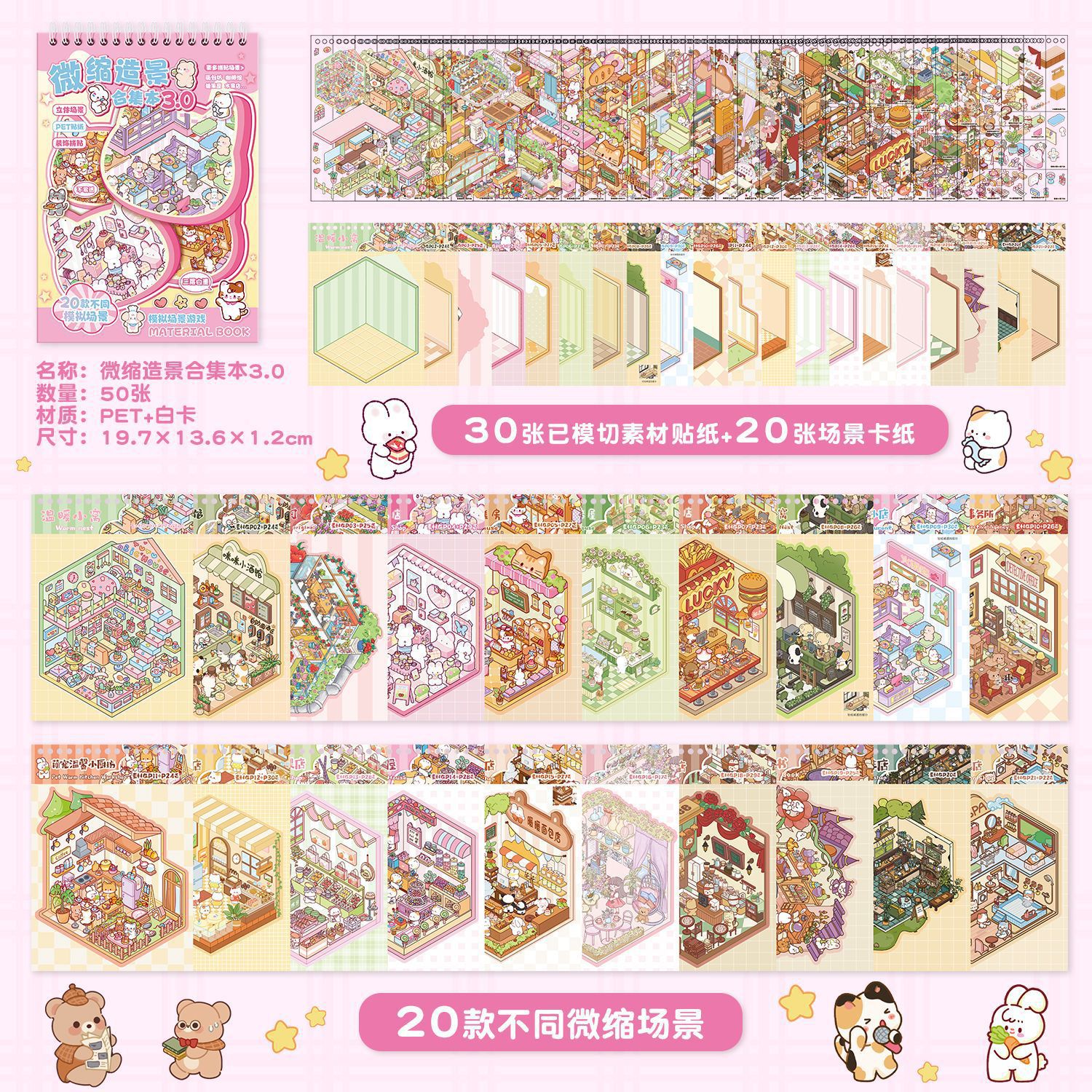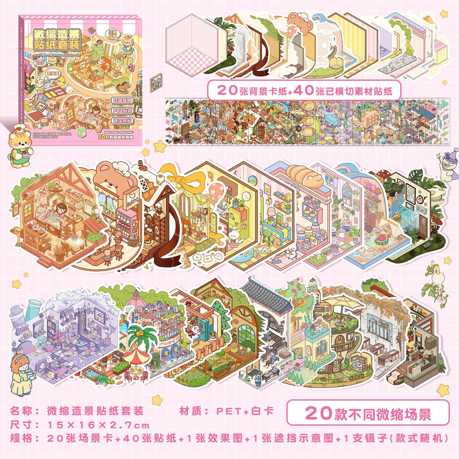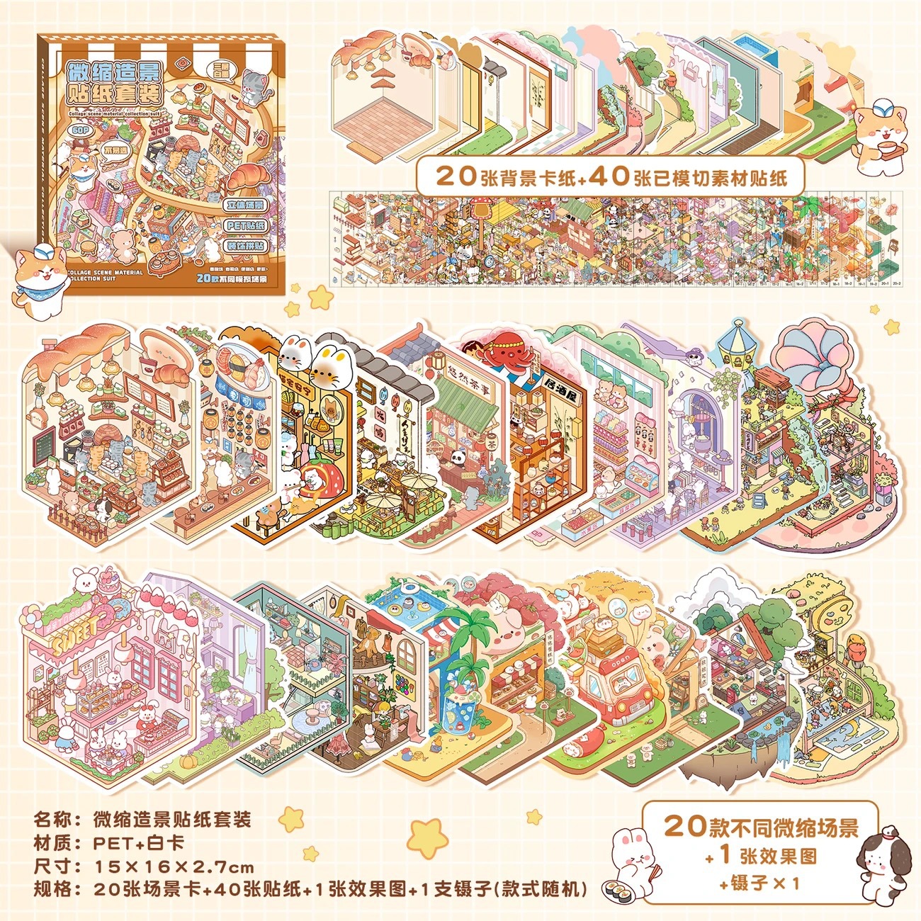 풍경 스티커 컬렉션 이 미니어처 장면 스티커 세트 DIY 3 차원 오두막 귀여운 장면 스티커 퍼즐 3D스토어 가기