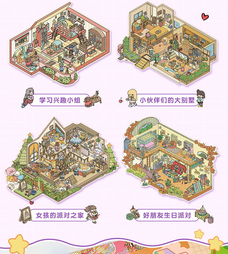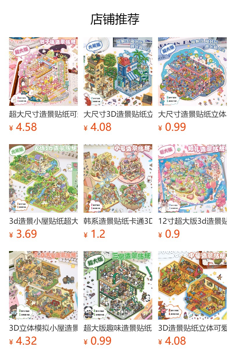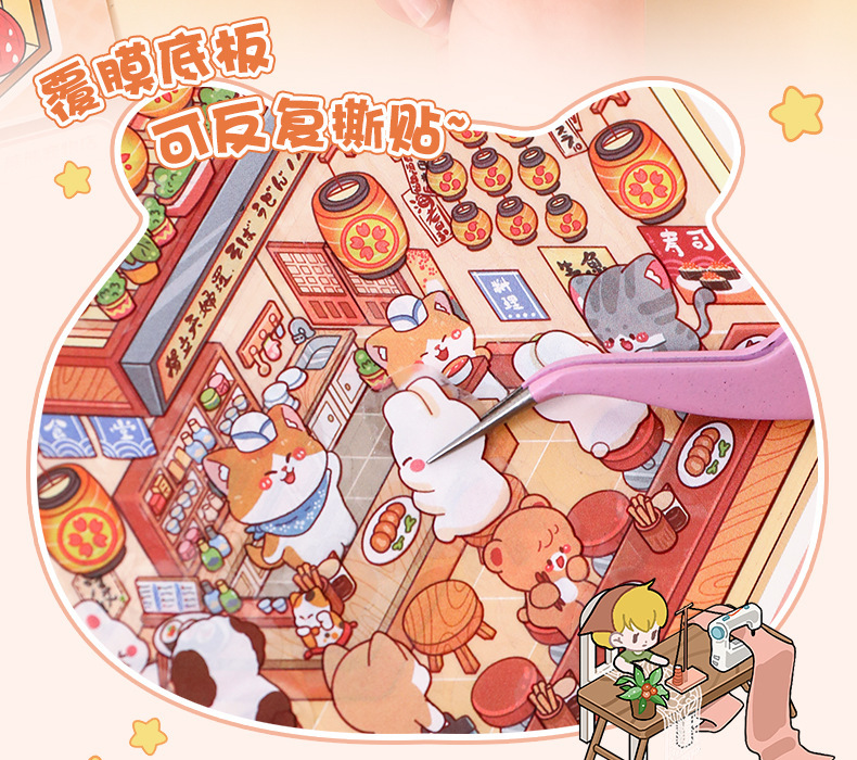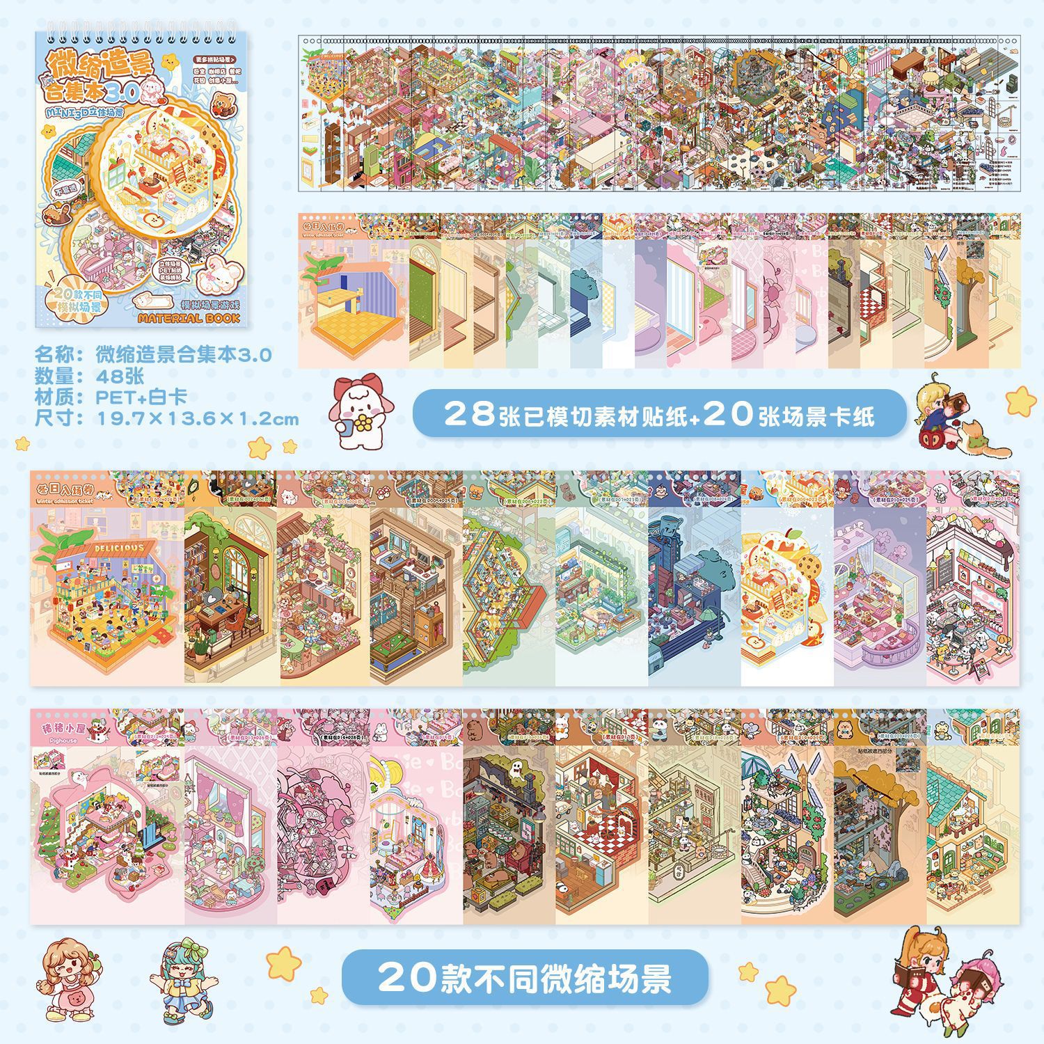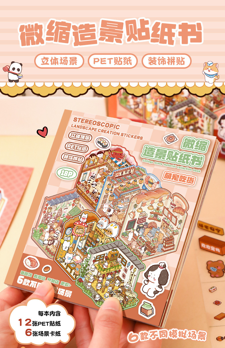 풍경 스티커 컬렉션 이 미니어처 장면 스티커 세트 DIY 3 차원 오두막 귀여운 장면 스티커 퍼즐 3D스토어 가기