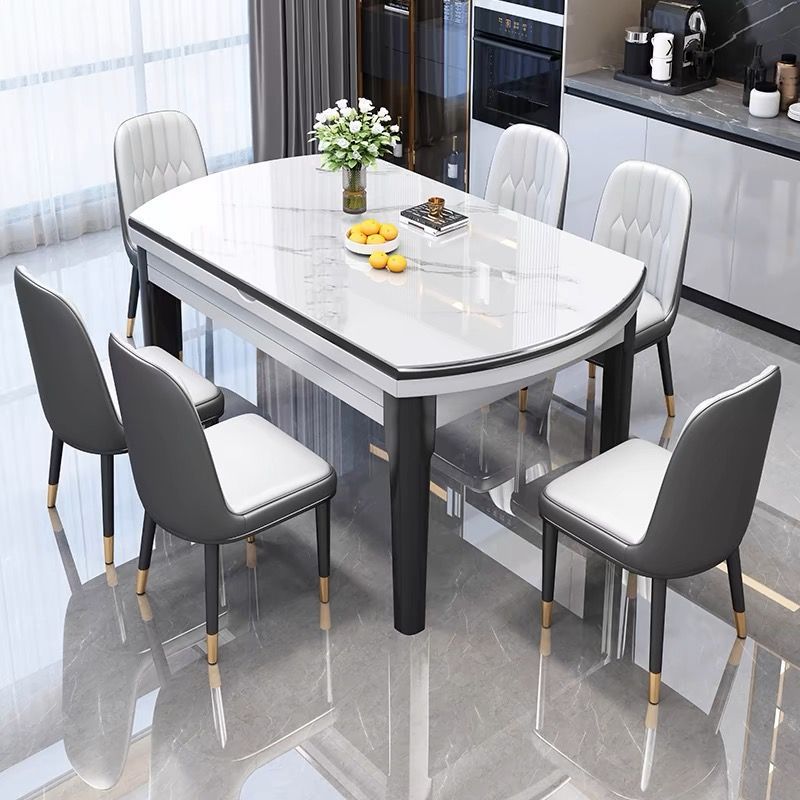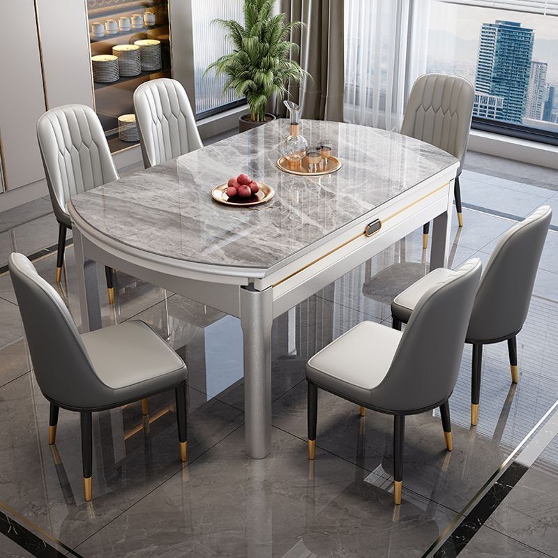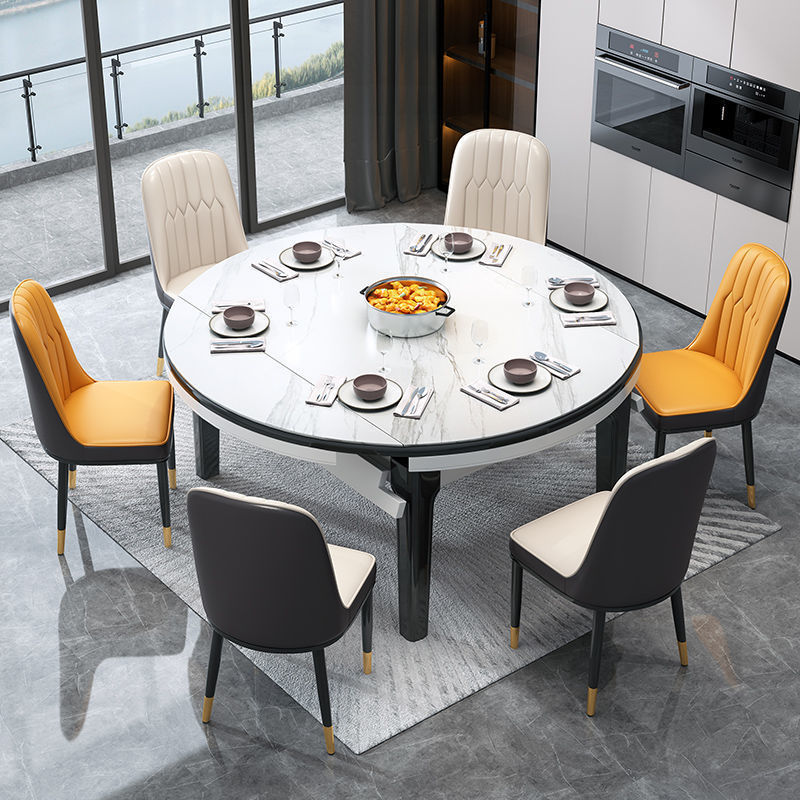 이탈리아 스타일의 밝은 얼굴의 록 보드 식탁과 의자 조합 테이블과 의자 세트 현대적인 간단한 접이식 접이식 단단한 나무 원형 테이블스토어 가기