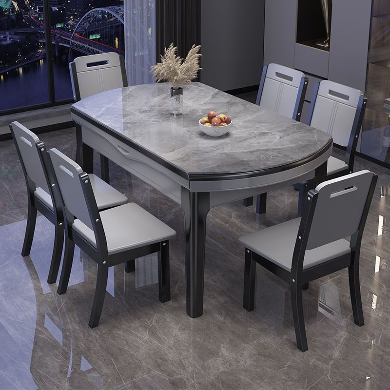 이탈리아 스타일의 밝은 얼굴의 록 보드 식탁과 의자 조합 테이블과 의자 세트 현대적인 간단한 접이식 접이식 단단한 나무 원형 테이블