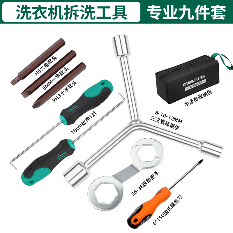 녹색 숲 세탁기 분해 특수 공구 청소 맥동기 내부 배럴 스크류 너트 수리 3 프롱 렌치스토어 가기