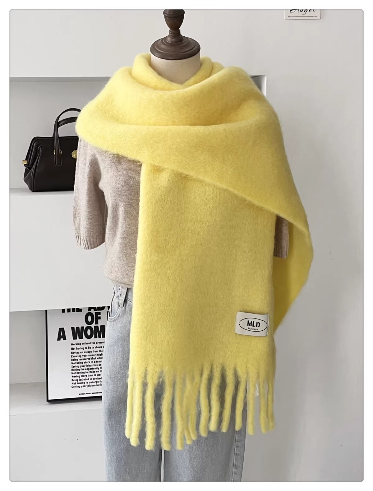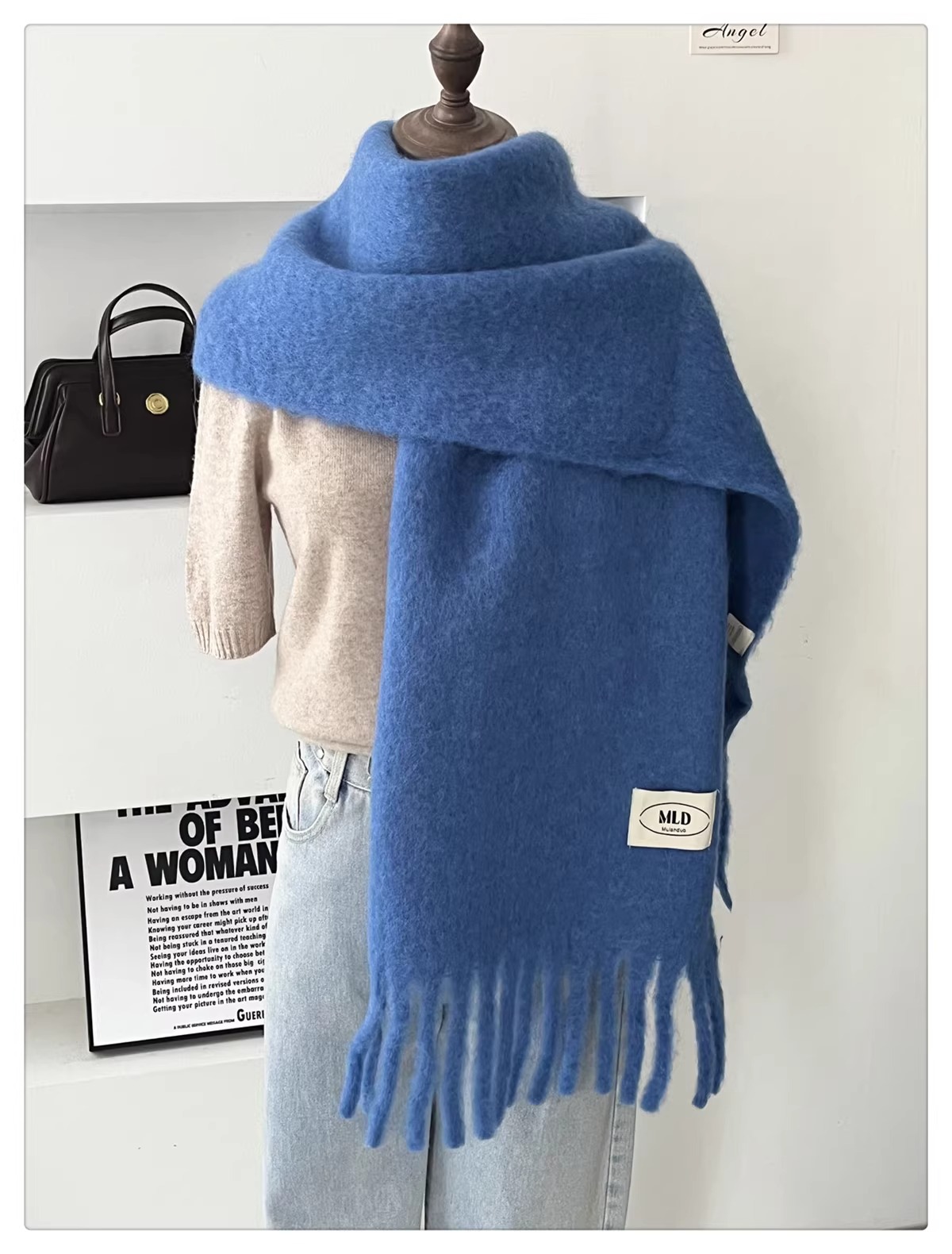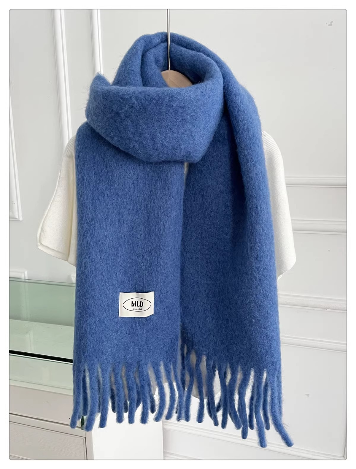 한국식 분위기 단색 모헤어 스카프 여성의 겨울 따뜻한 아이슬란드 블루 울 소프트 왁스 올 매치 숄 스카프