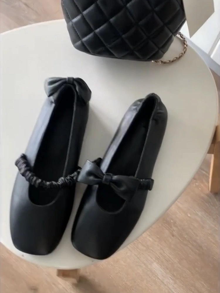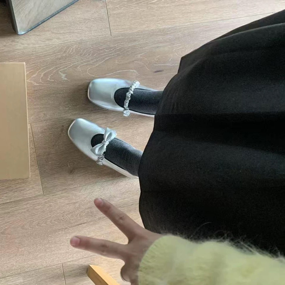 진짜 가죽 한국 스타일 활 스퀘어 발가락 싱글 레이어 신발 메리 제인 여성의 2025 봄 발레 플랫 신발 싱글 레이어 신발스토어 가기
