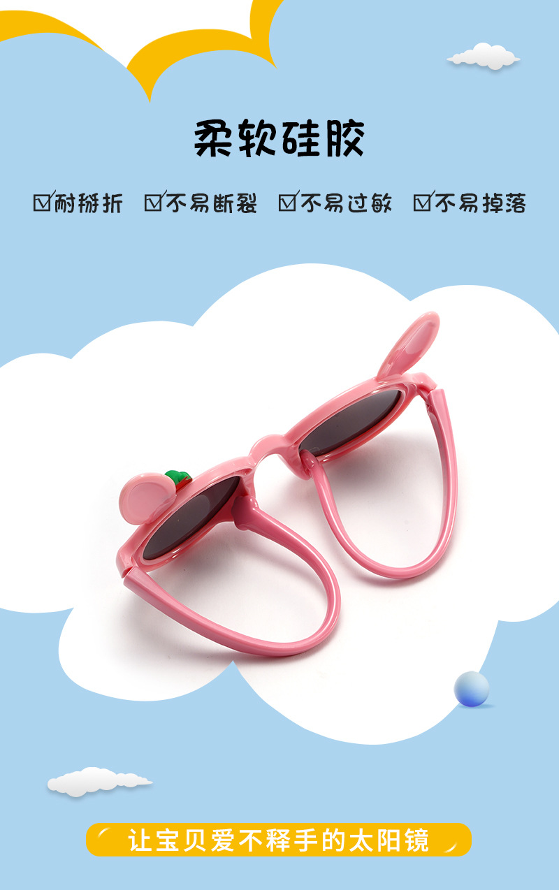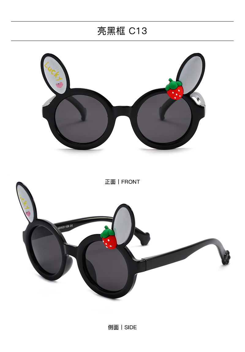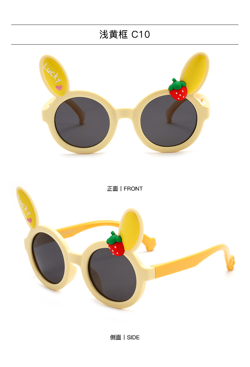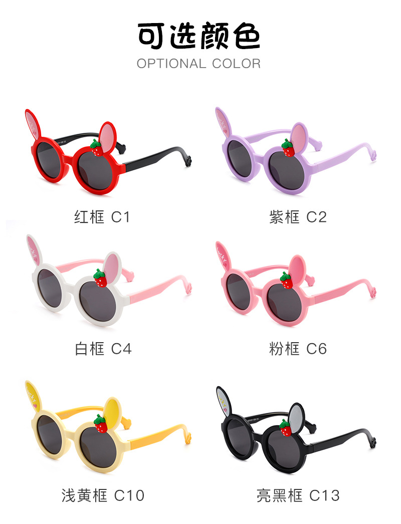 새로운 어린이 귀여운 착용 선글라스 남성 토끼 귀 딸기 장식 선글라스 여성 편광 양산 안경 도매