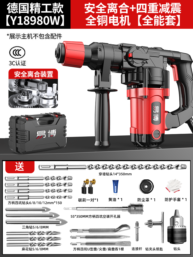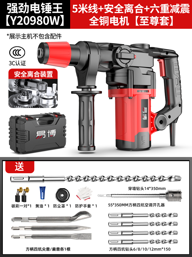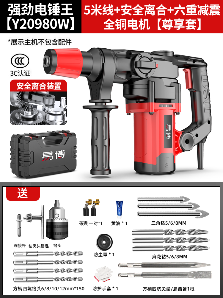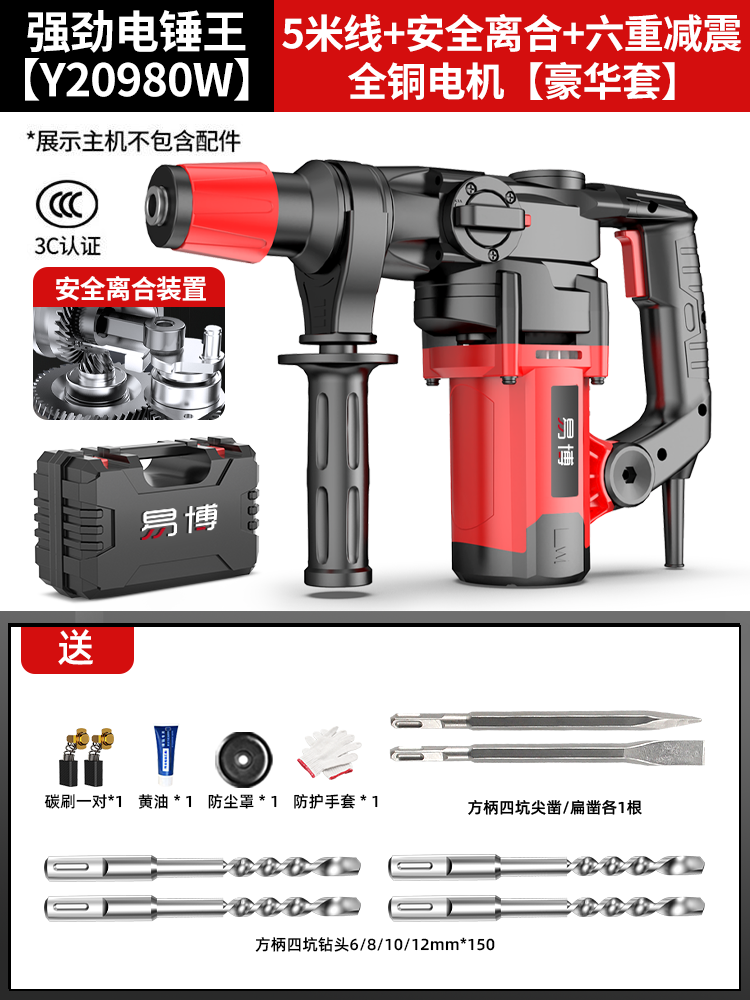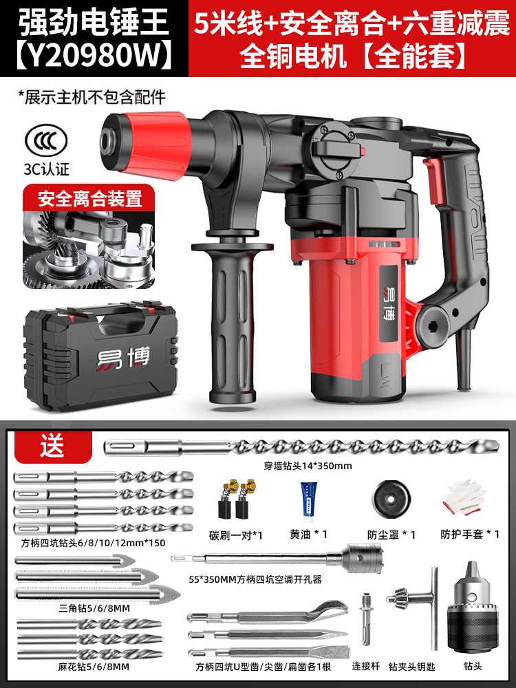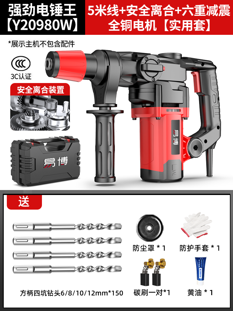 • Y20980 강력한 전기 해머 킹 [ 5m 라인 + 안전 클러치 + 6중 충격 흡수 + 전체 구리 모터] 만능 세트