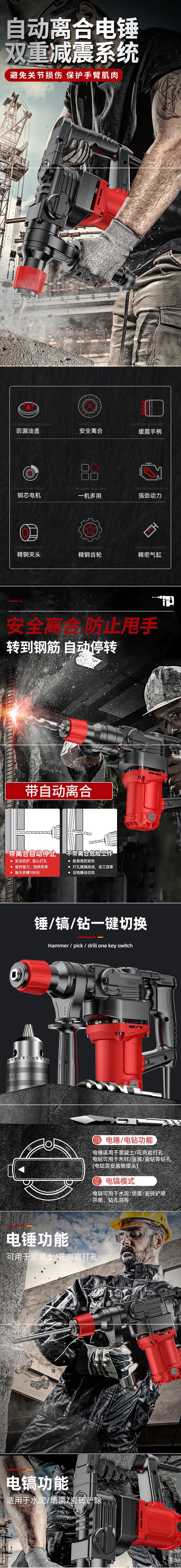 • Y20980 강력한 전기 해머 킹 [ 5m 라인 + 안전 클러치 + 6중 충격 흡수 + 전체 구리 모터] 실용 세트
