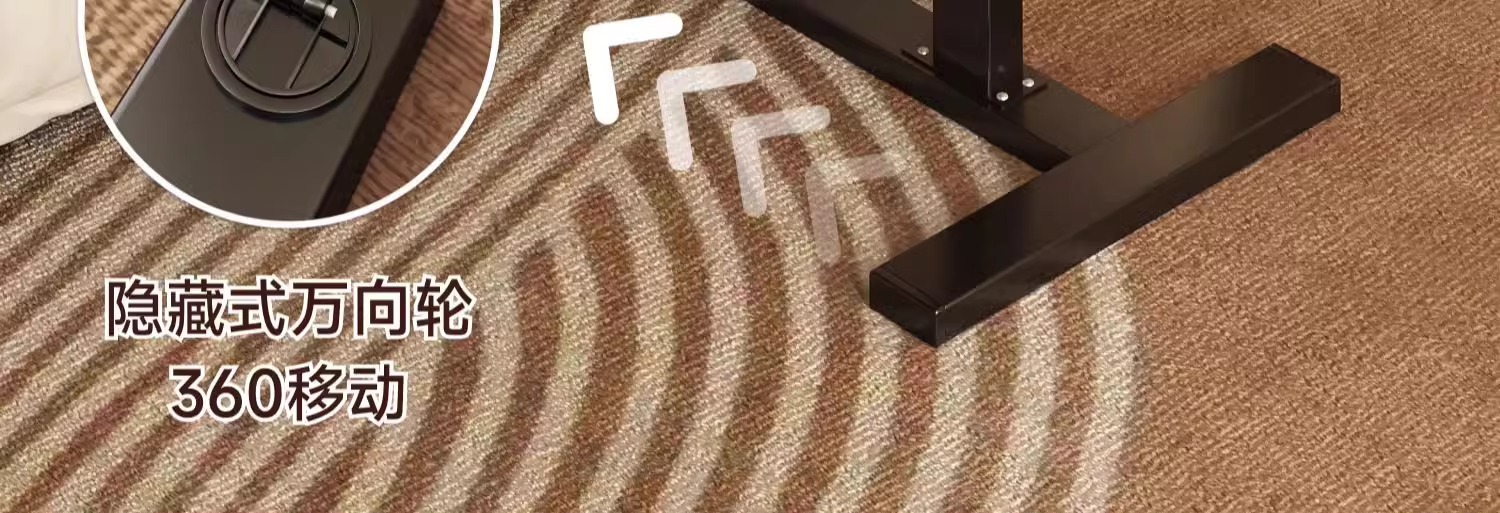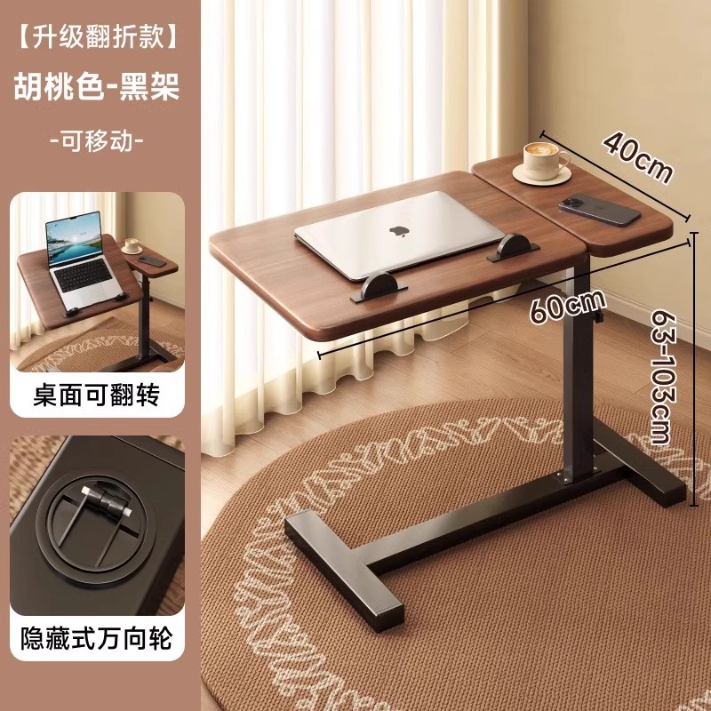 • 【업그레이드 버전】 접이식 + 데스크탑 회전 - 월넛 색상 - 블랙 프레임 - 숨김형 바퀴 (이동 가능)