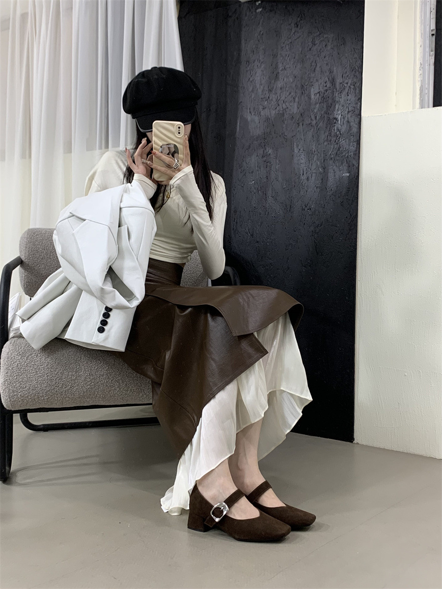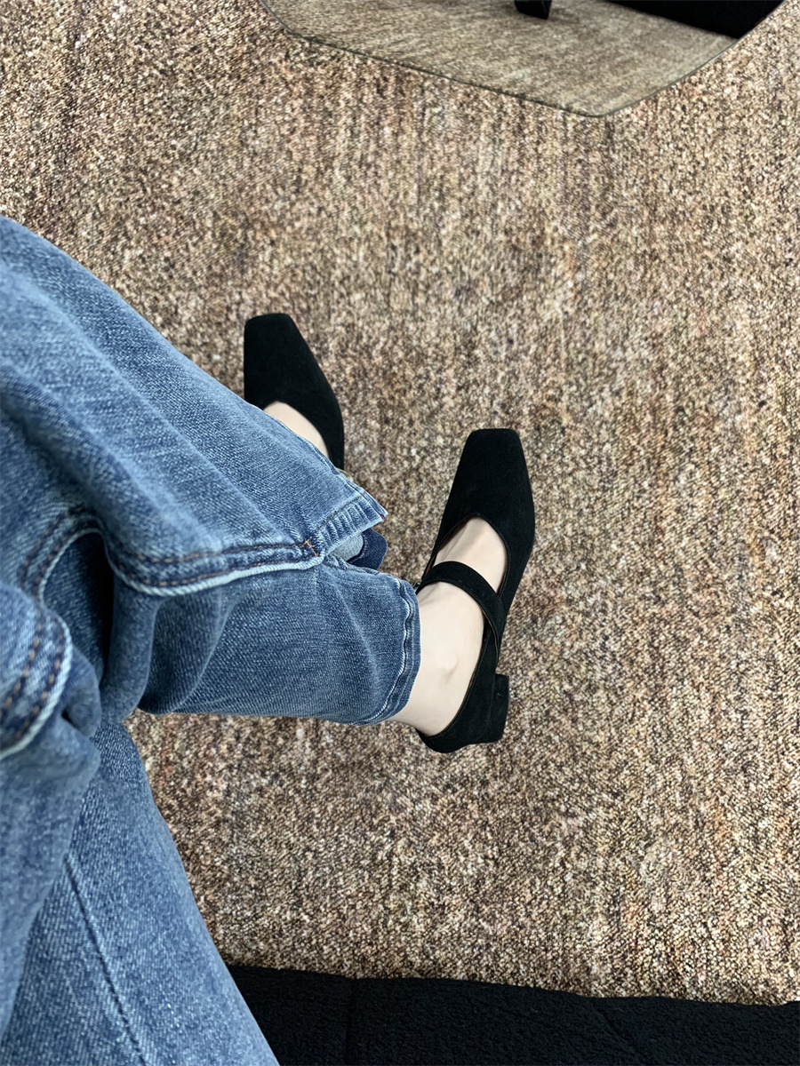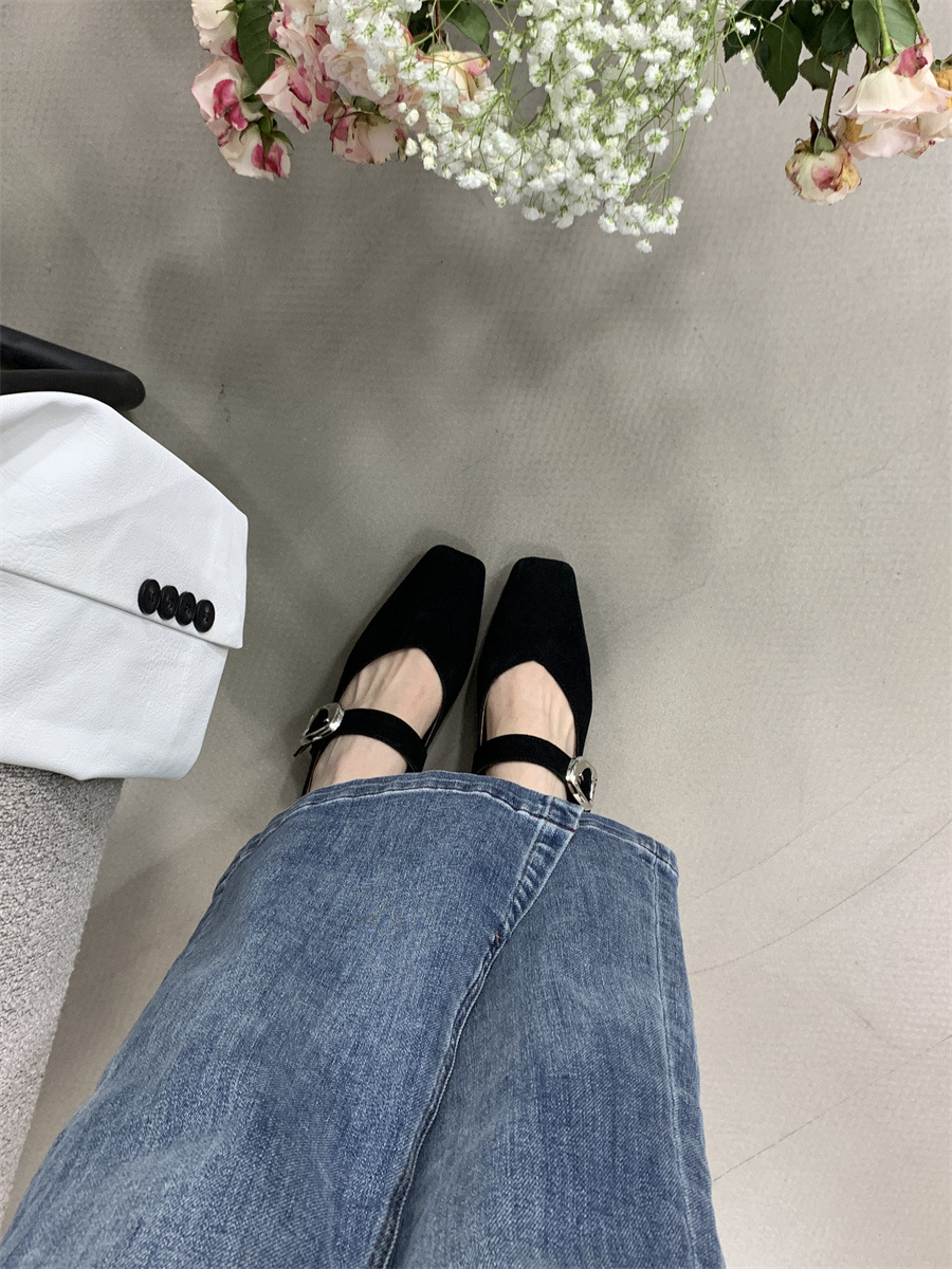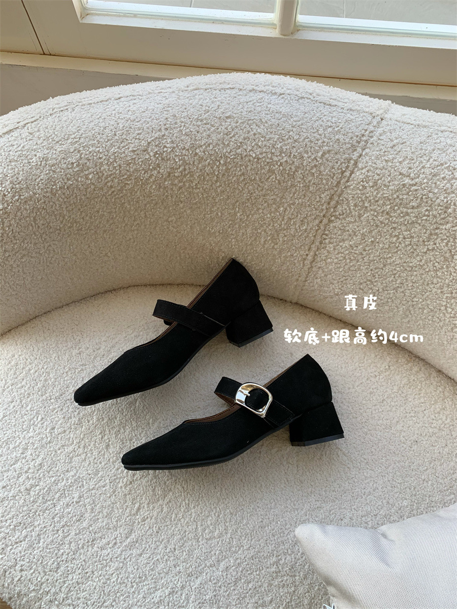 두꺼운 굽 신발 싱글 신발 여성 2025 새로운 봄 프랑스 스타일 원피스 여성 신발 버클 벨트 얕은 입 메리 제인 신발스토어 가기