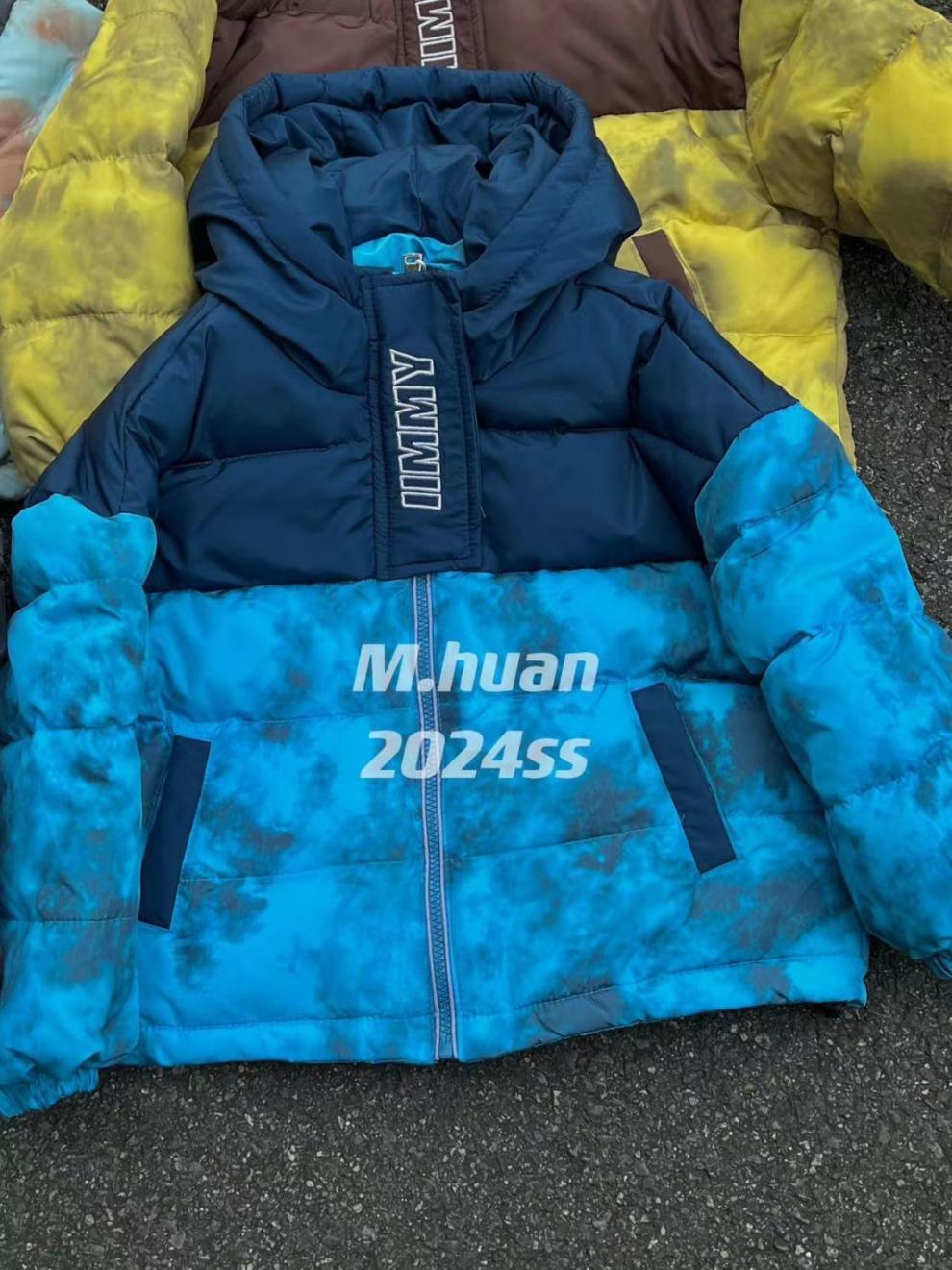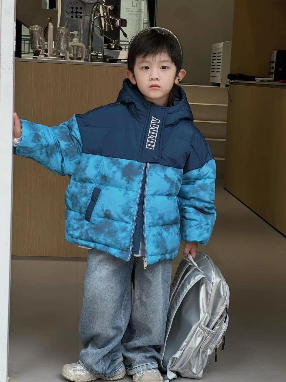 2024 겨울 새 어린이 짧은 다운 재킷 중 큰 어린이 따뜻한 타이-염료 옷 소년 소녀를위한 두꺼운 후드 자켓스토어 가기